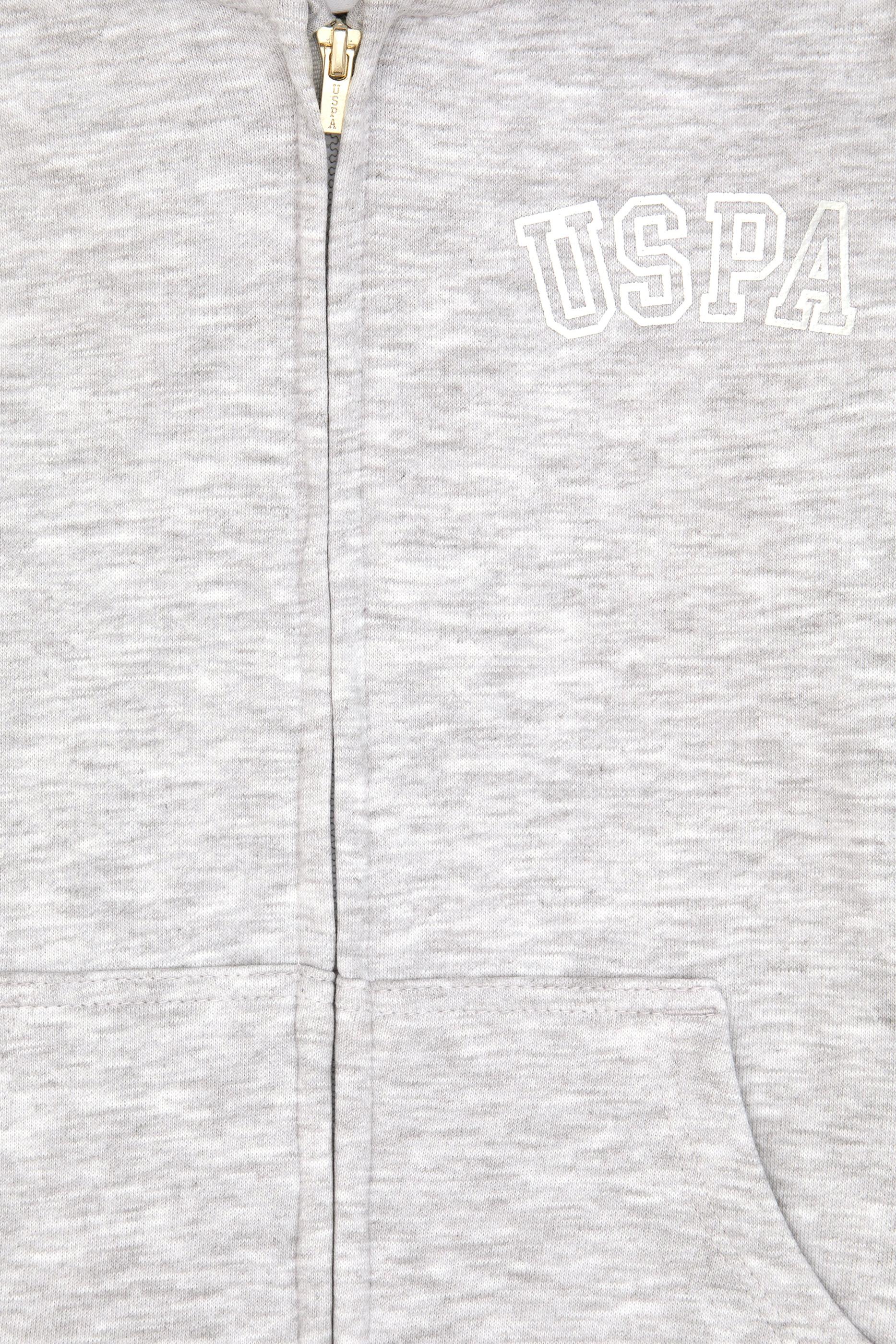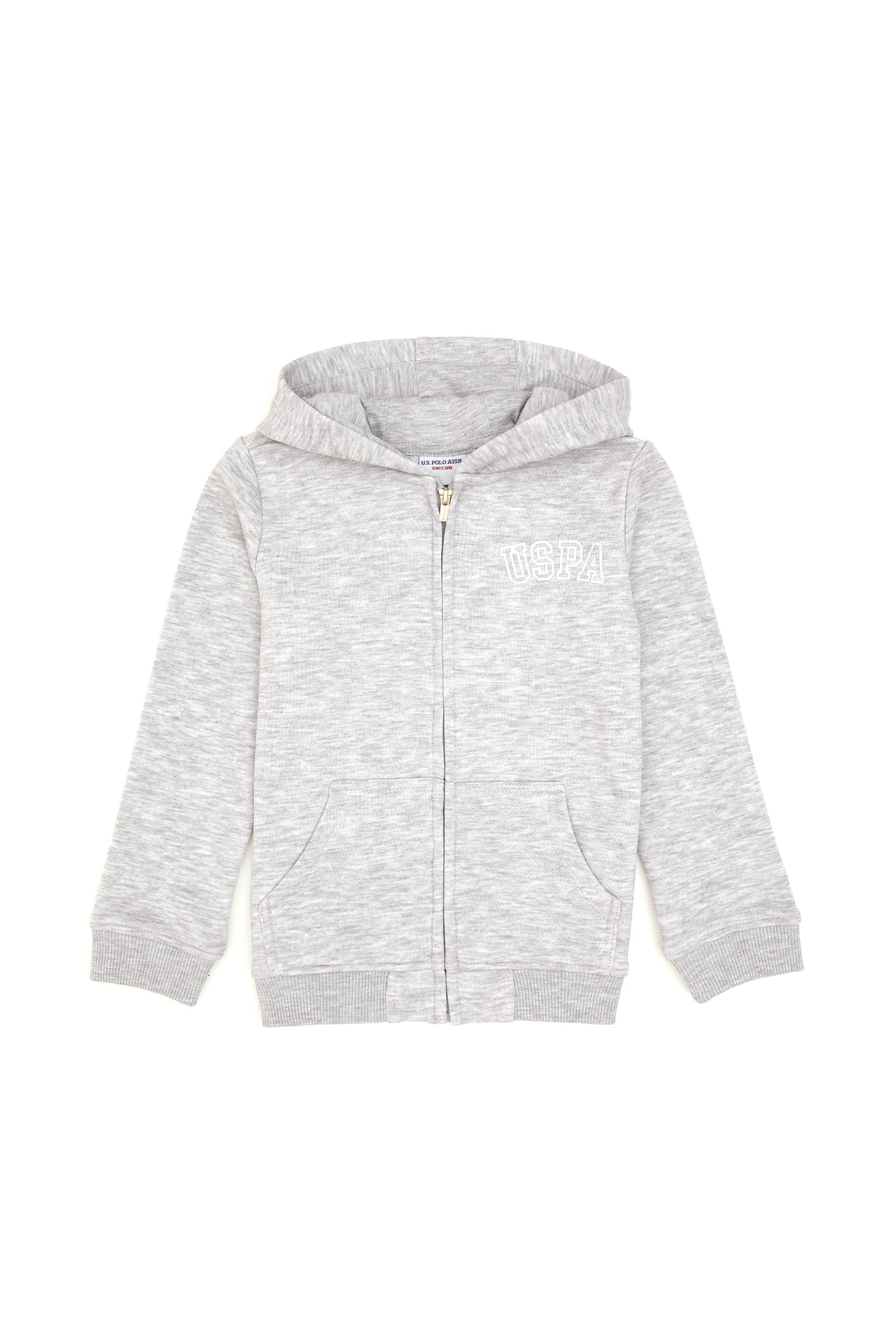 - Kız Çocuk Açık Gri Melanj Kapüşonlu Fermuarlı Basic Sweatshirt