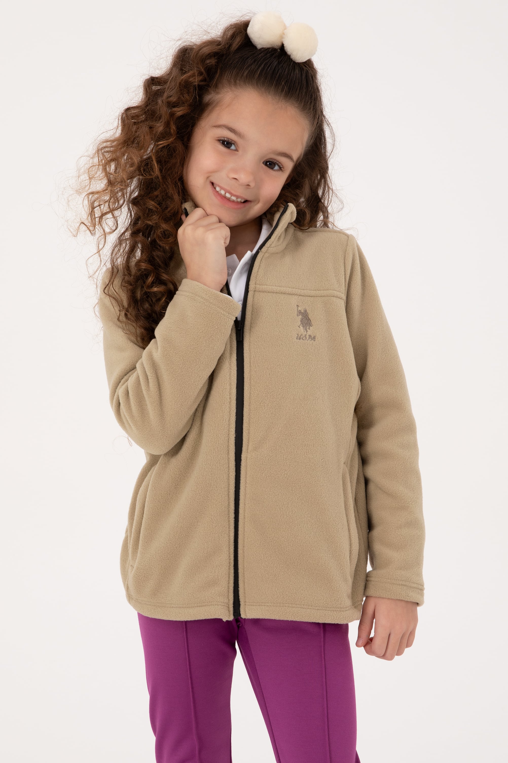 Kız Çocuk Açık Haki Fermuarlı Polor Sweatshirt