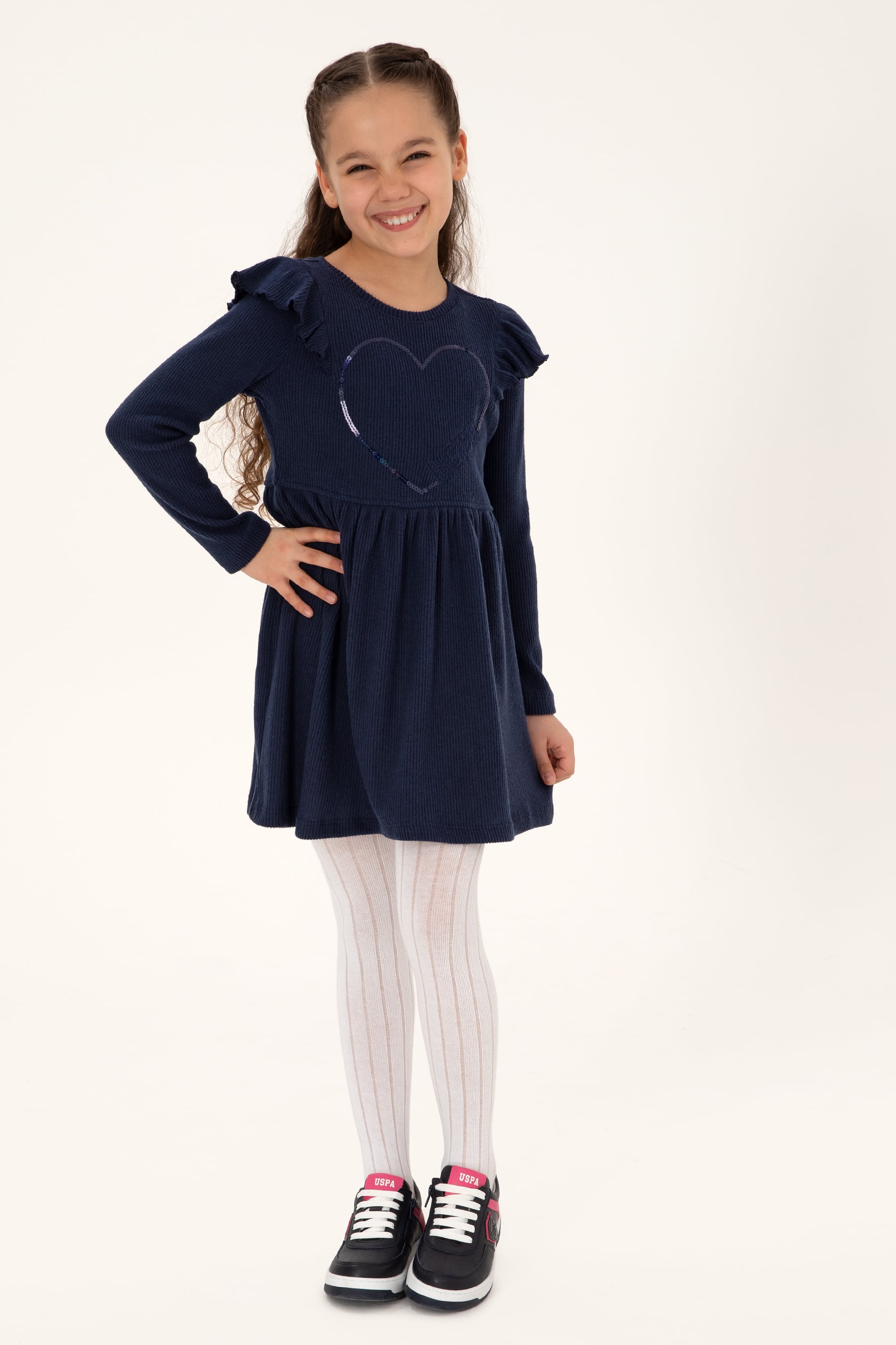 - Kız Çocuk Açık Lacivert Örme Elbise