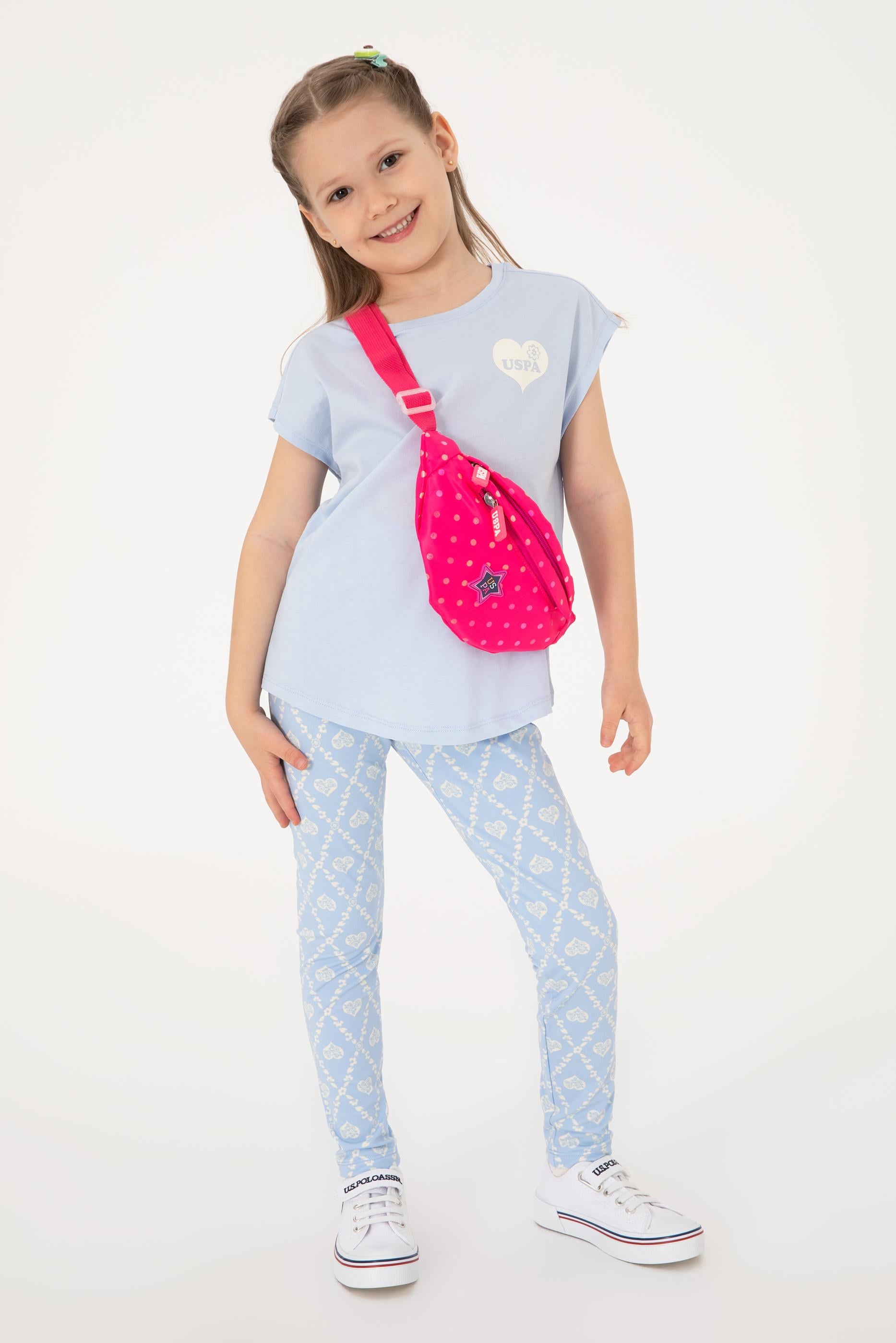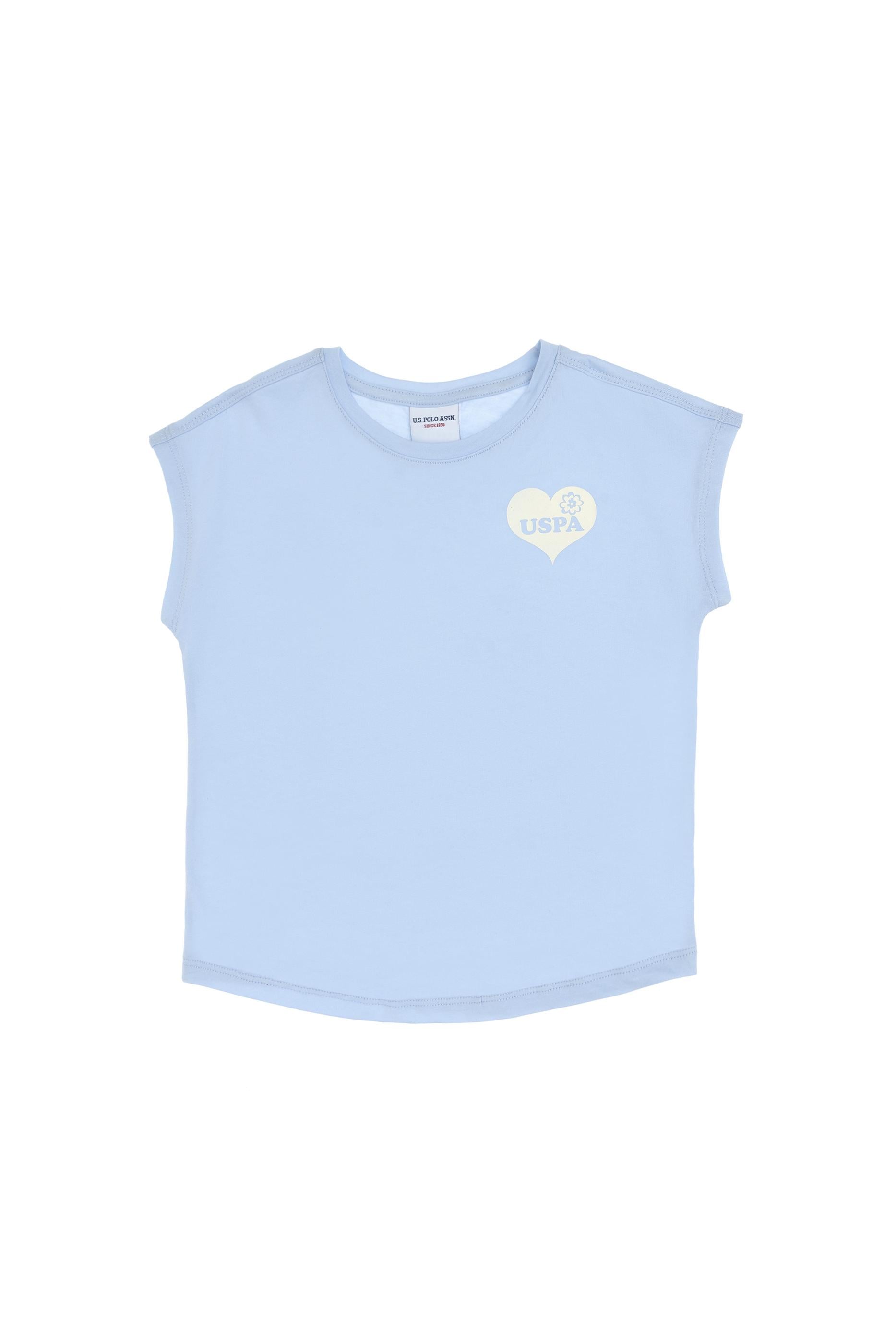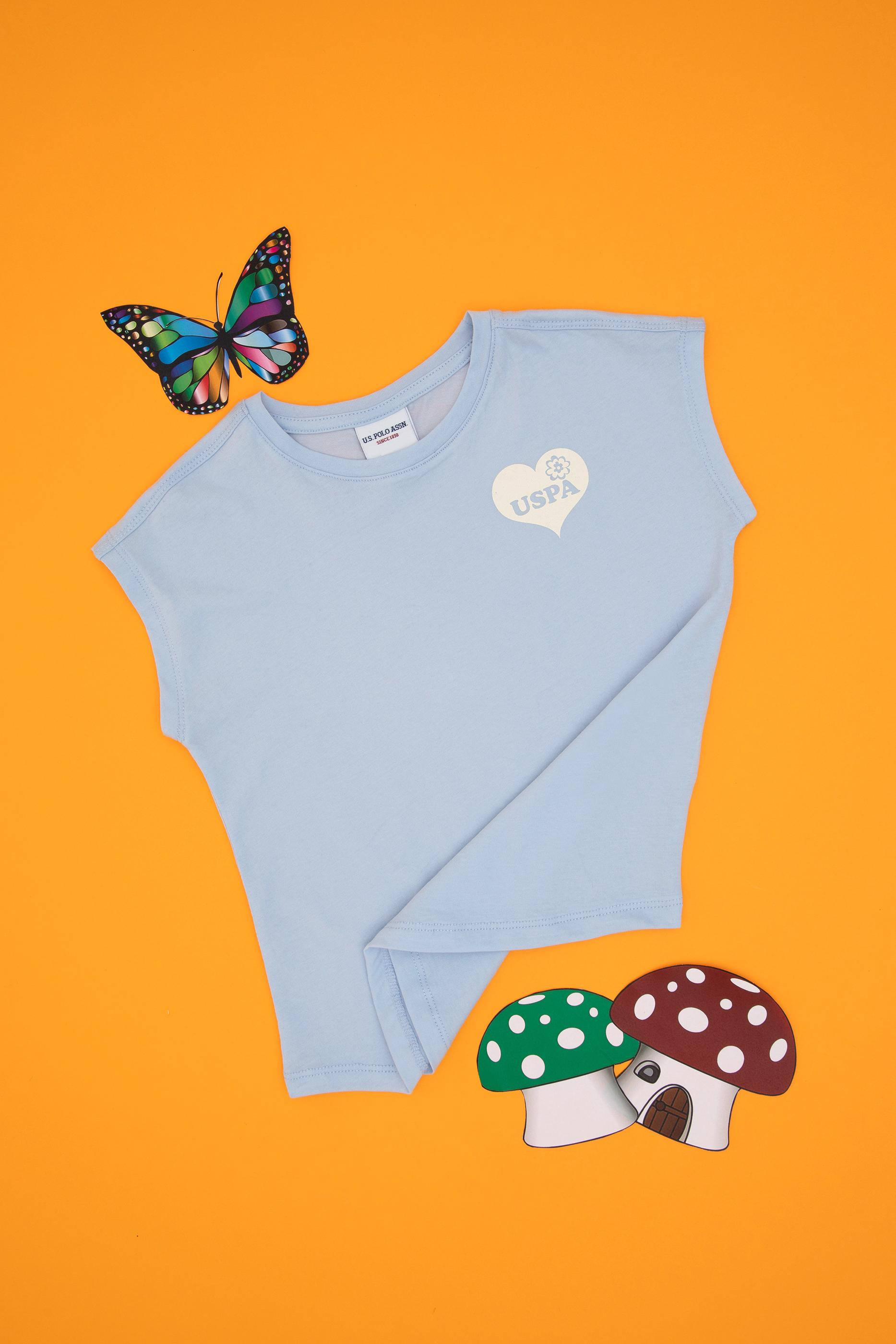 - Kız Çocuk Açık Mavi Bisiklet Yaka Pamuk Düz Tişört