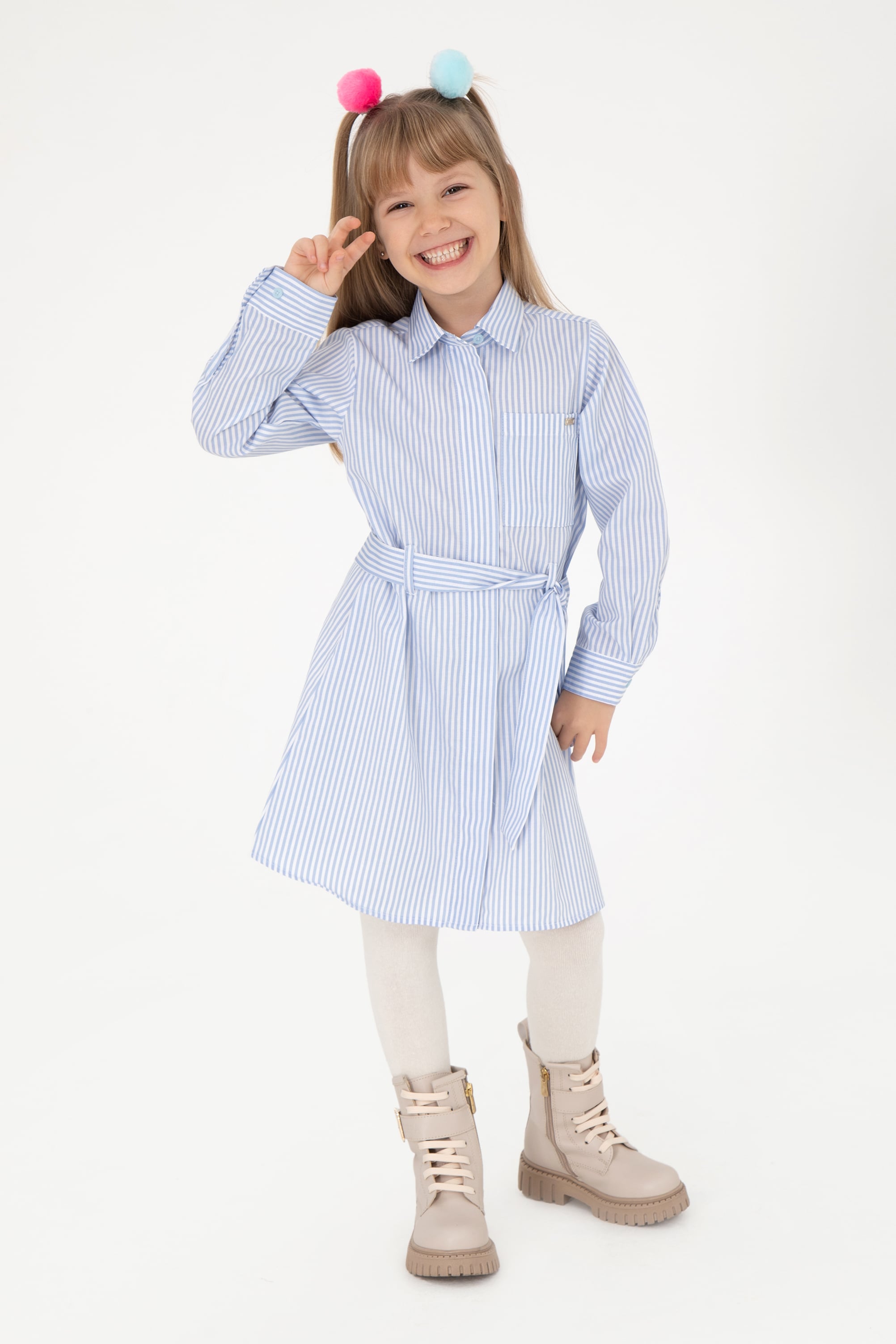 - Kız Çocuk Açık Mavi Dokuma Elbise