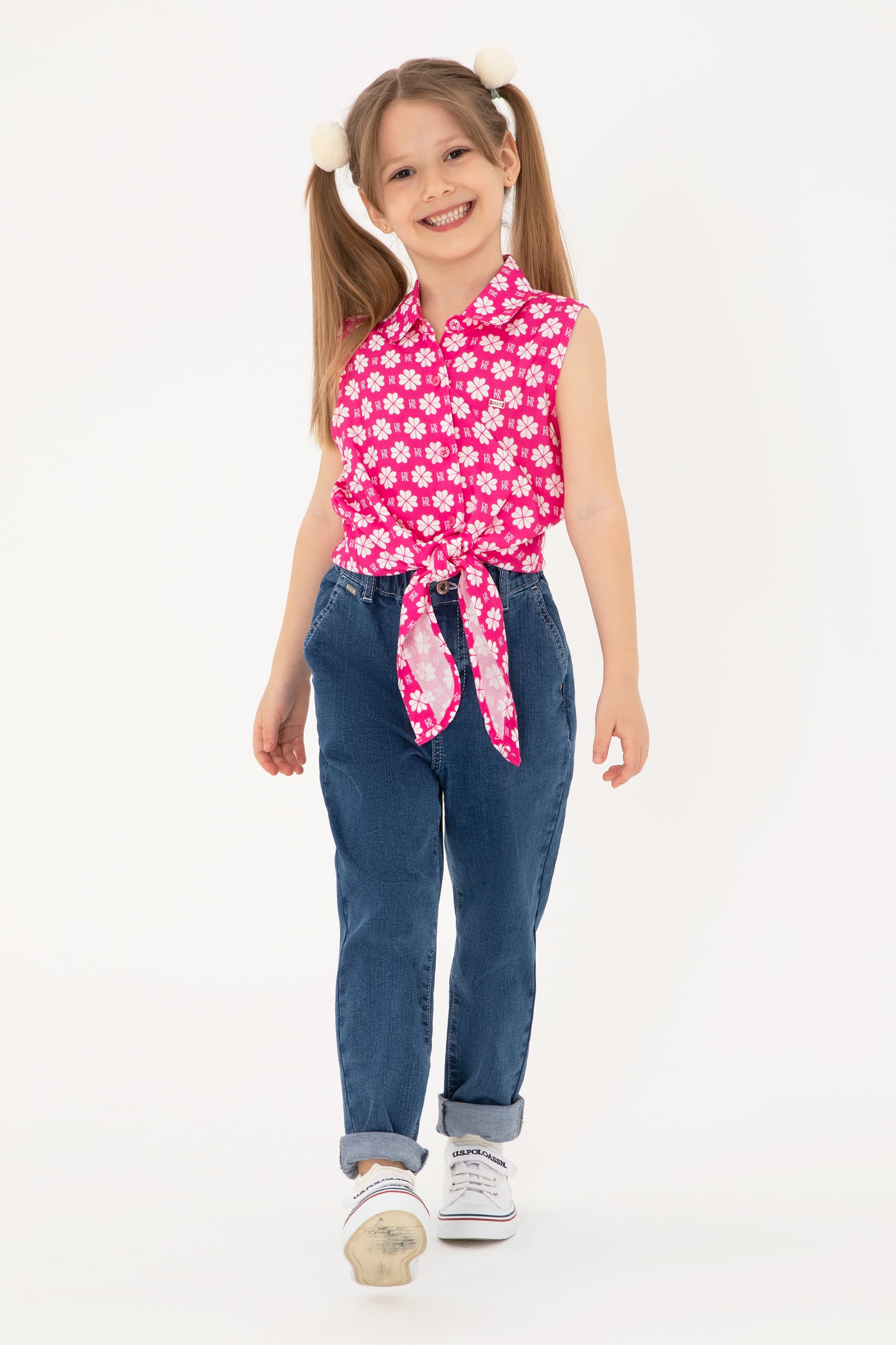 Kız Çocuk Açık Mavi Carrot Fit Jean Pantolon