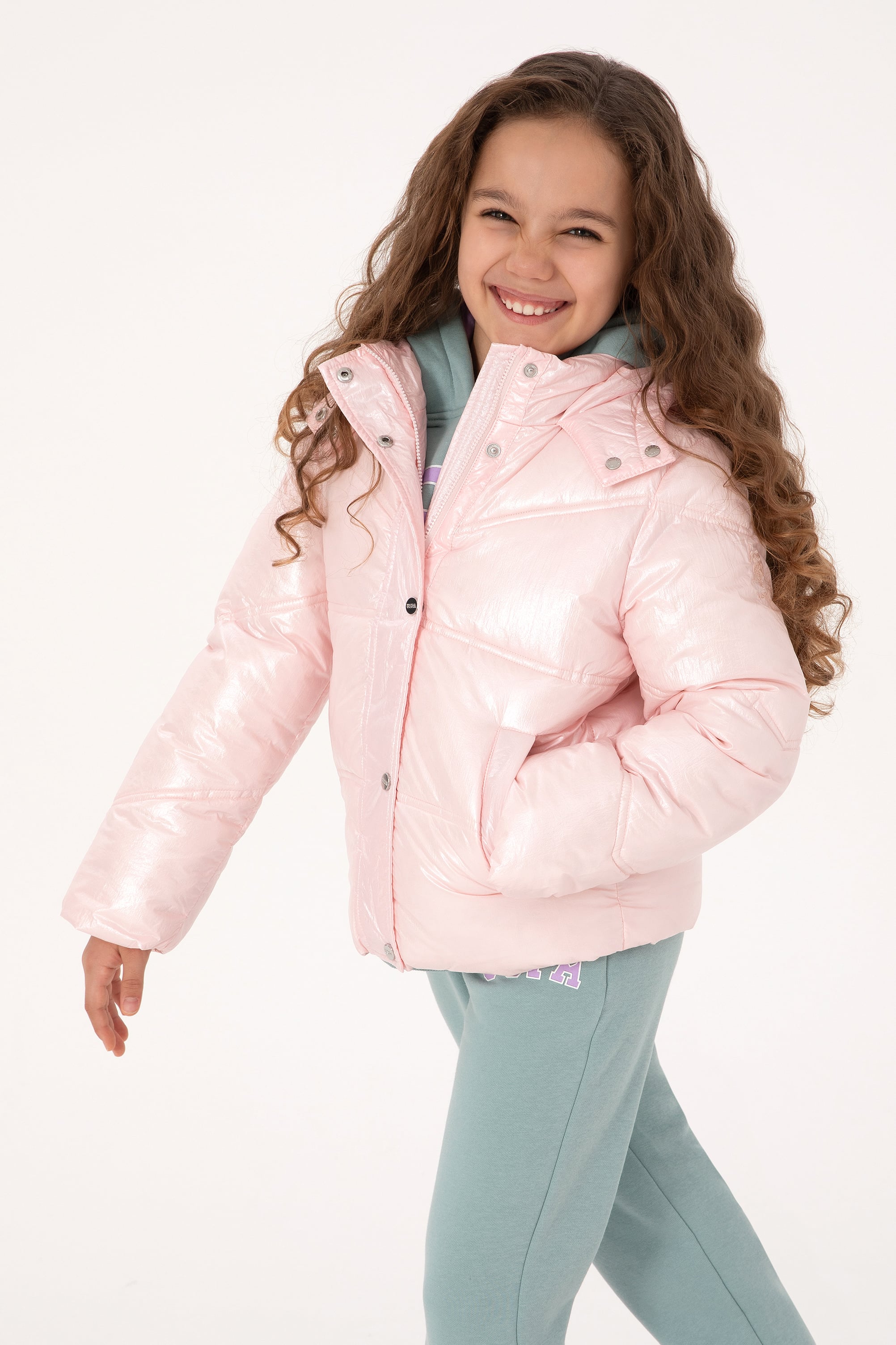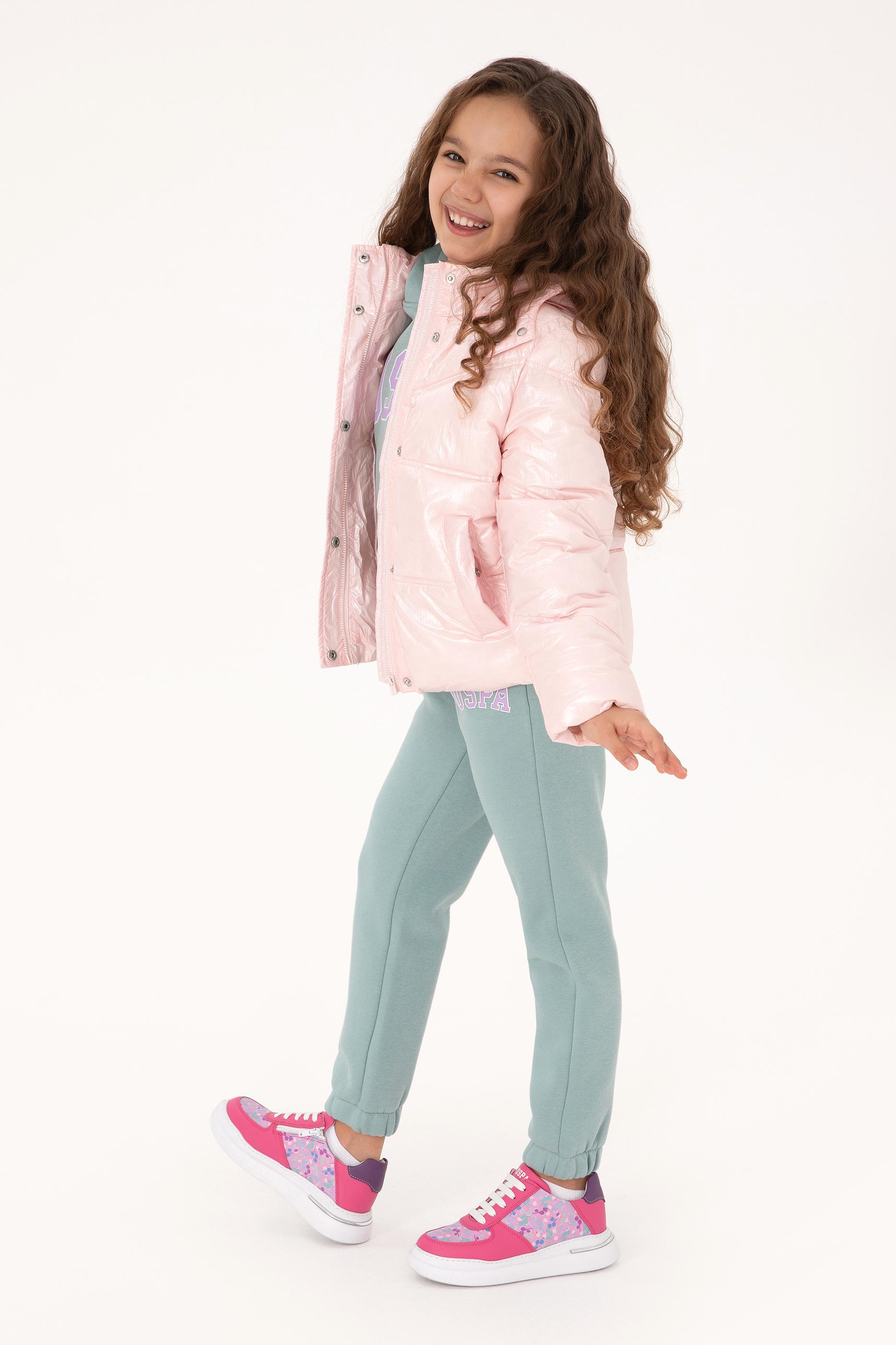 Kız Çocuk Açık Pembe Kapüşonlu Mont