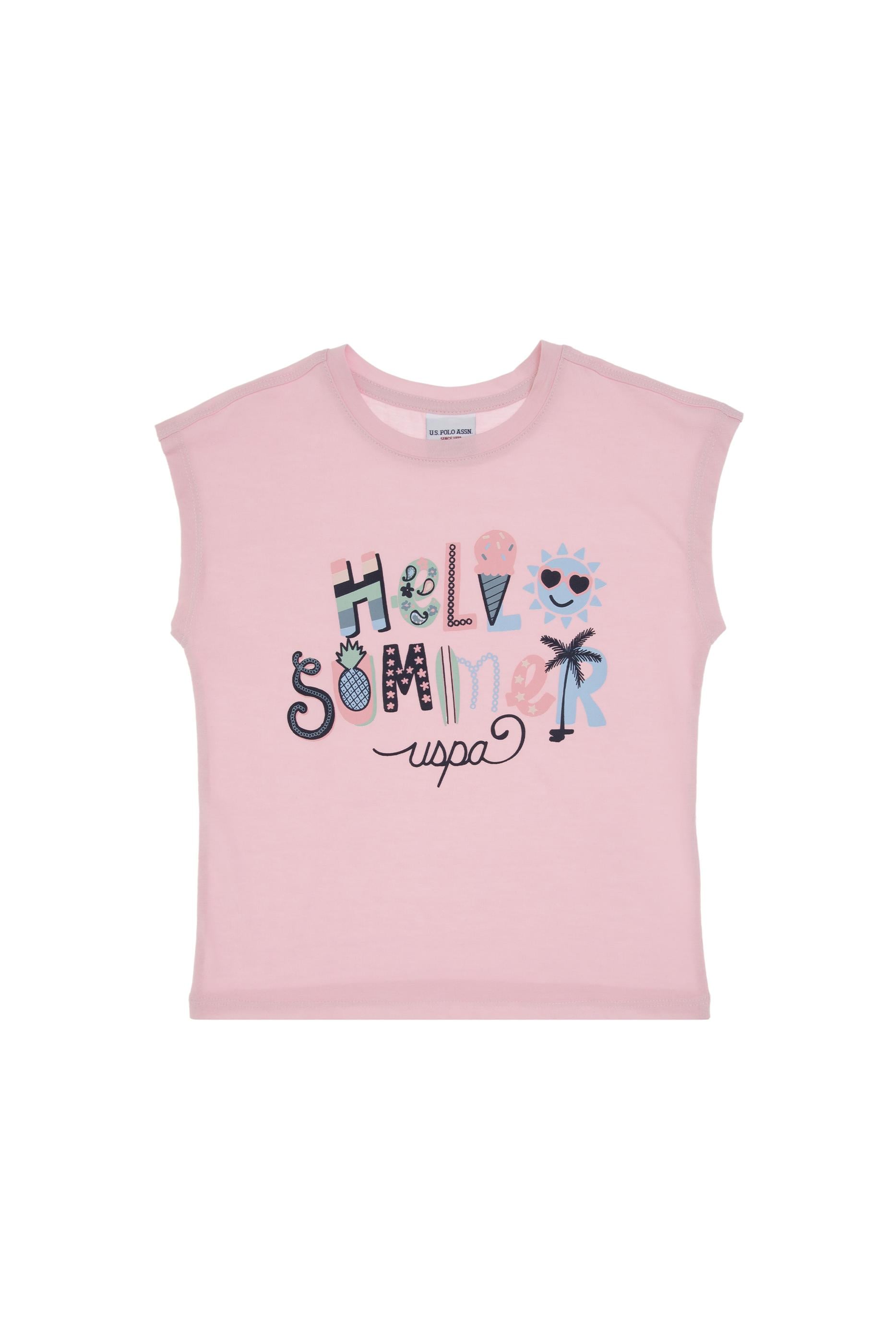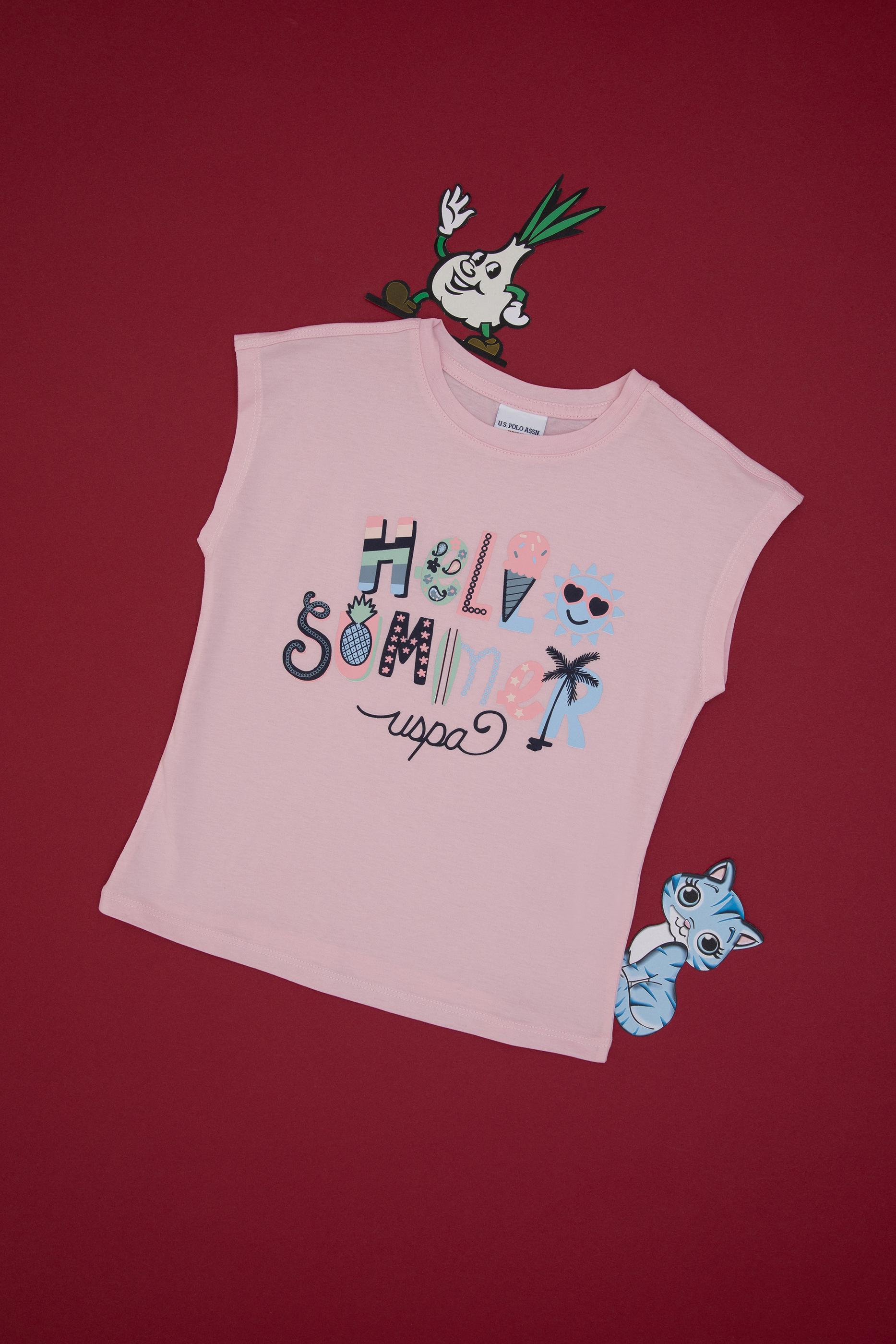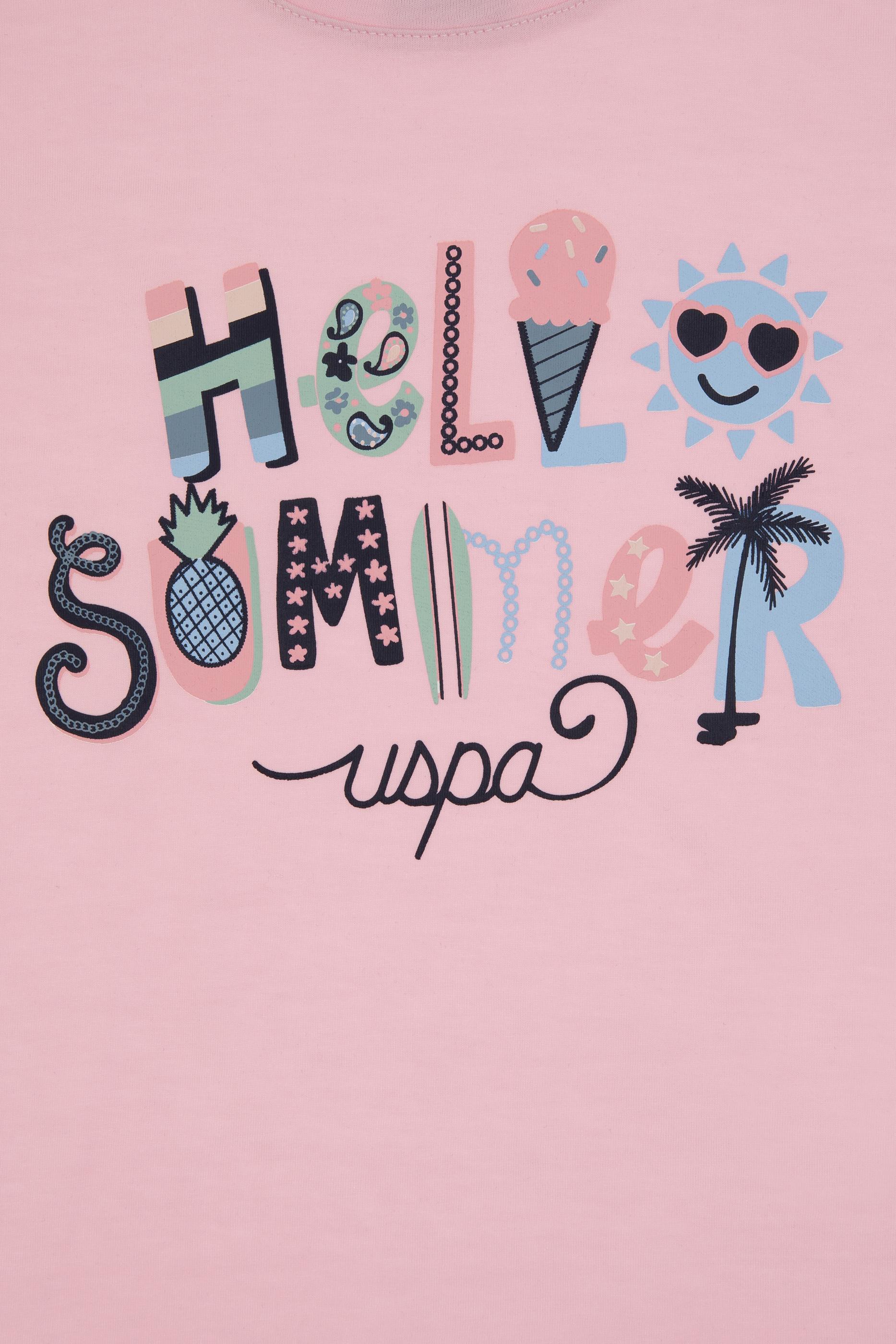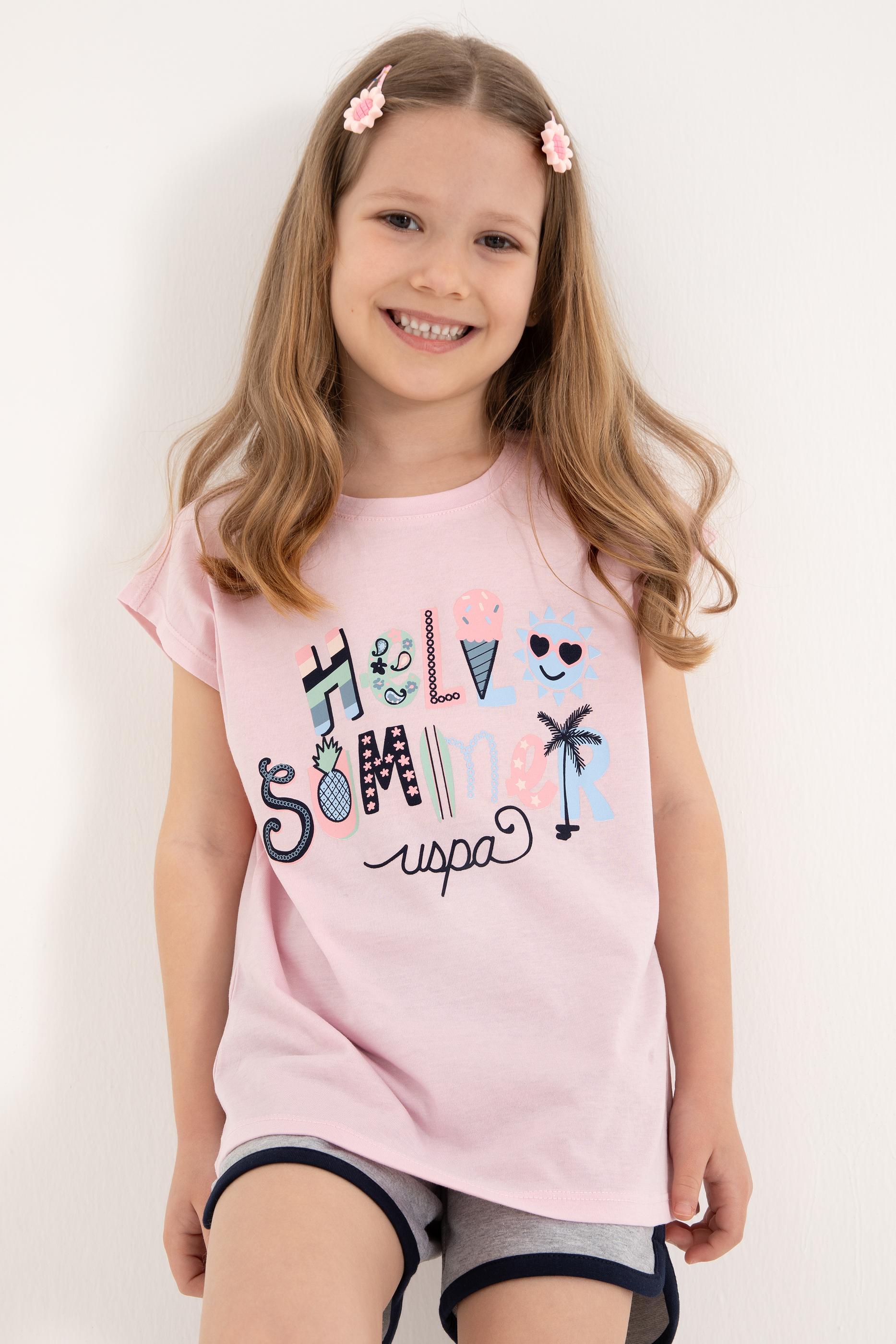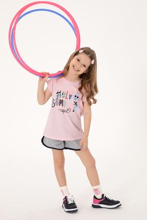 - Kız Çocuk Açık Pembe Bisiklet Yaka Baskılı Pamuk Tişört
