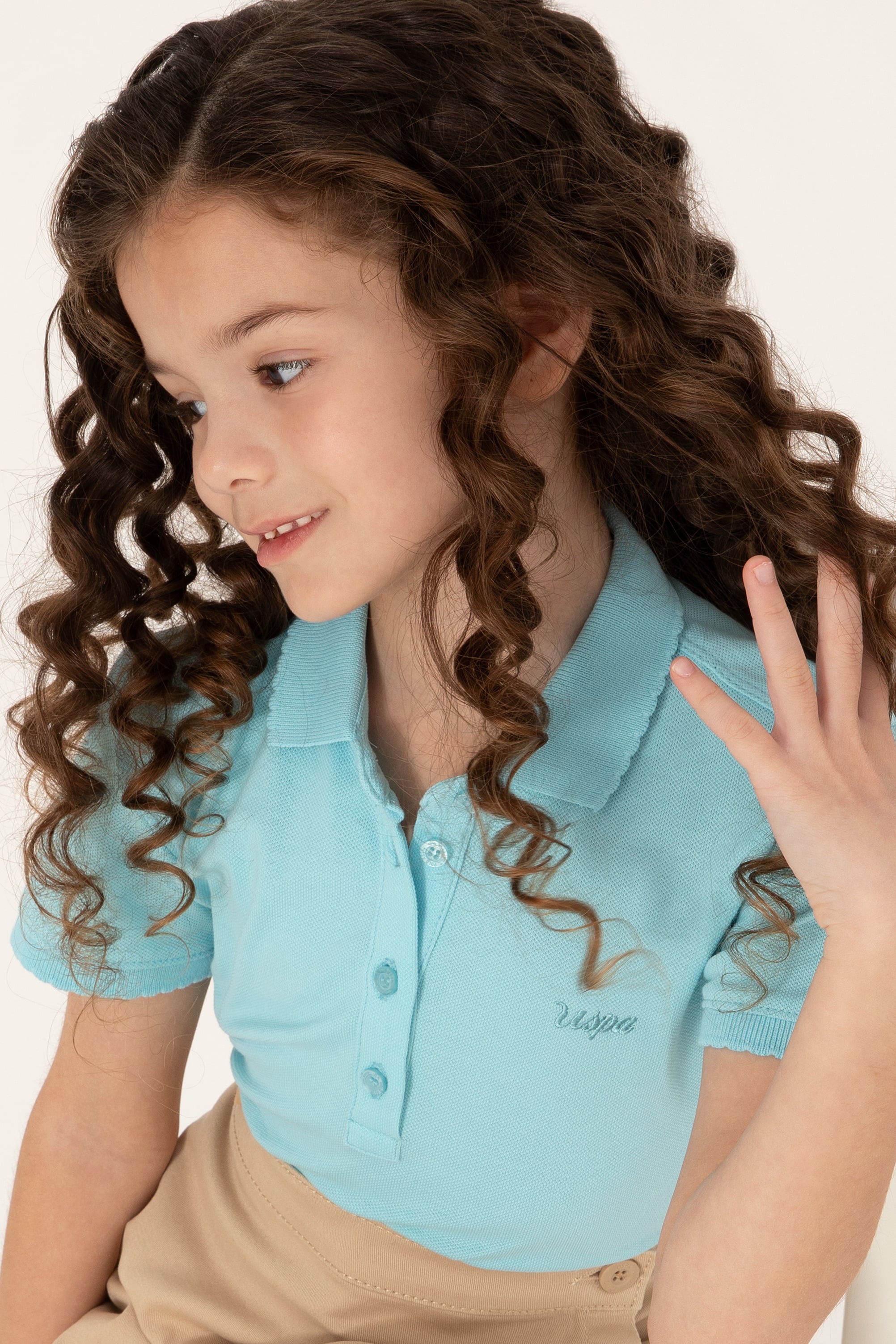 - Kız Çocuk Aqua Polo Yaka Basic Tişört