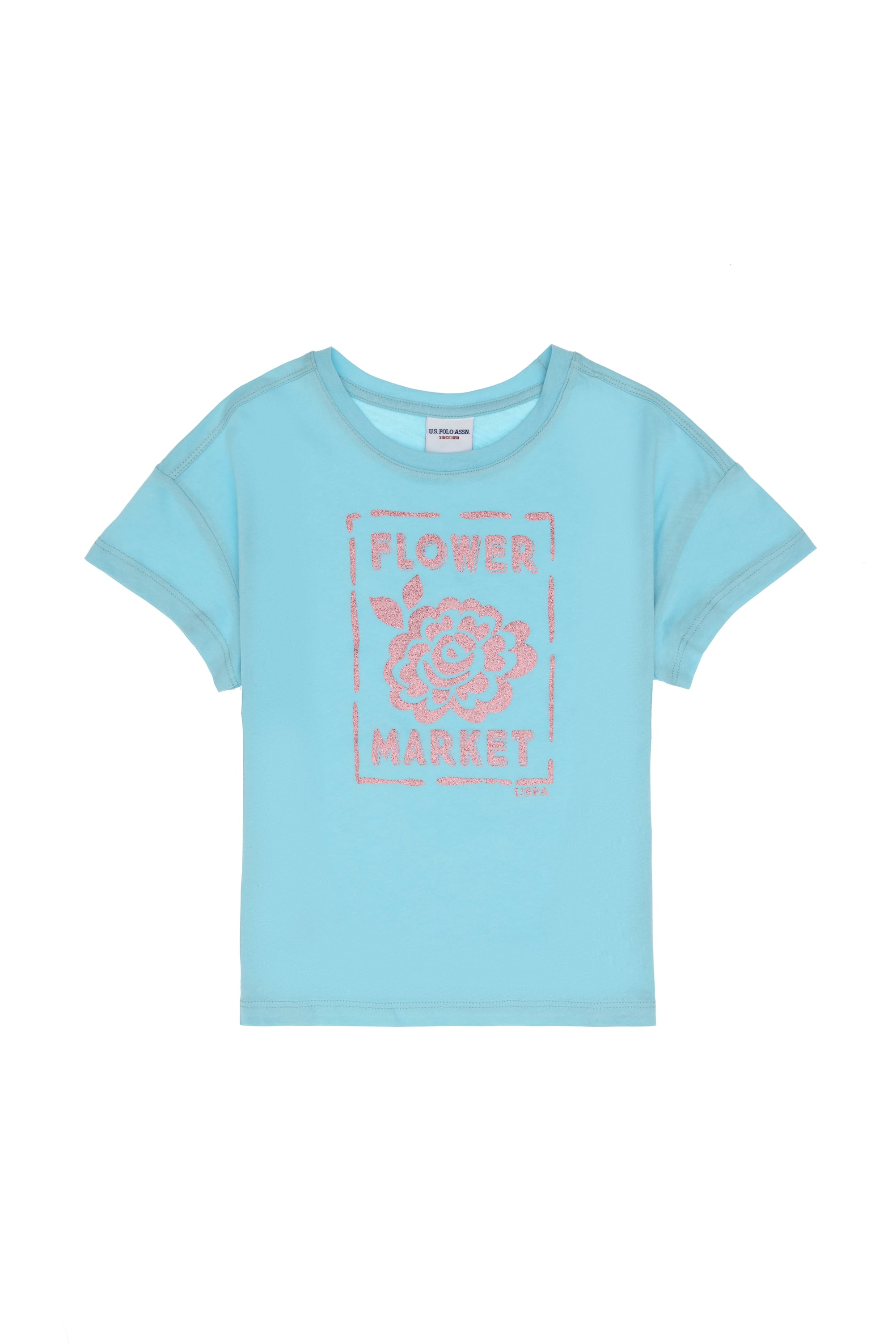 - Kız Çocuk Aqua Bisiklet Yaka Çiçek Baskılı Pamuk Tişört
