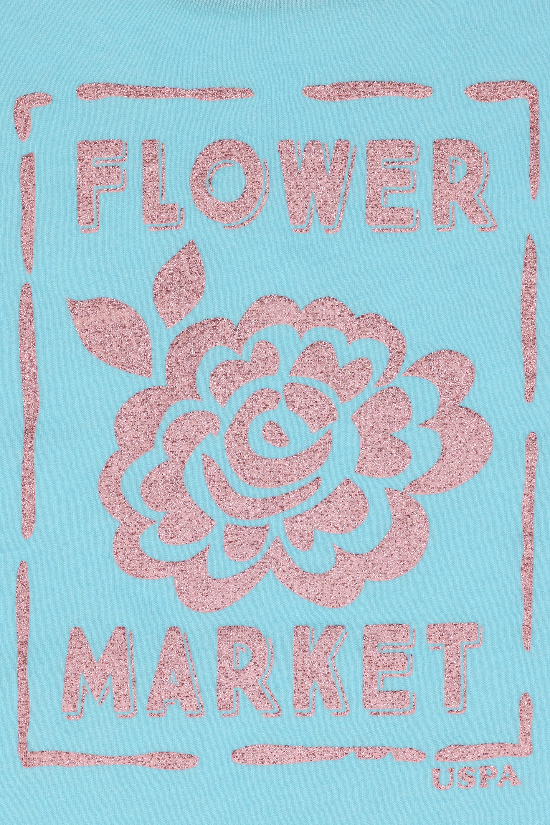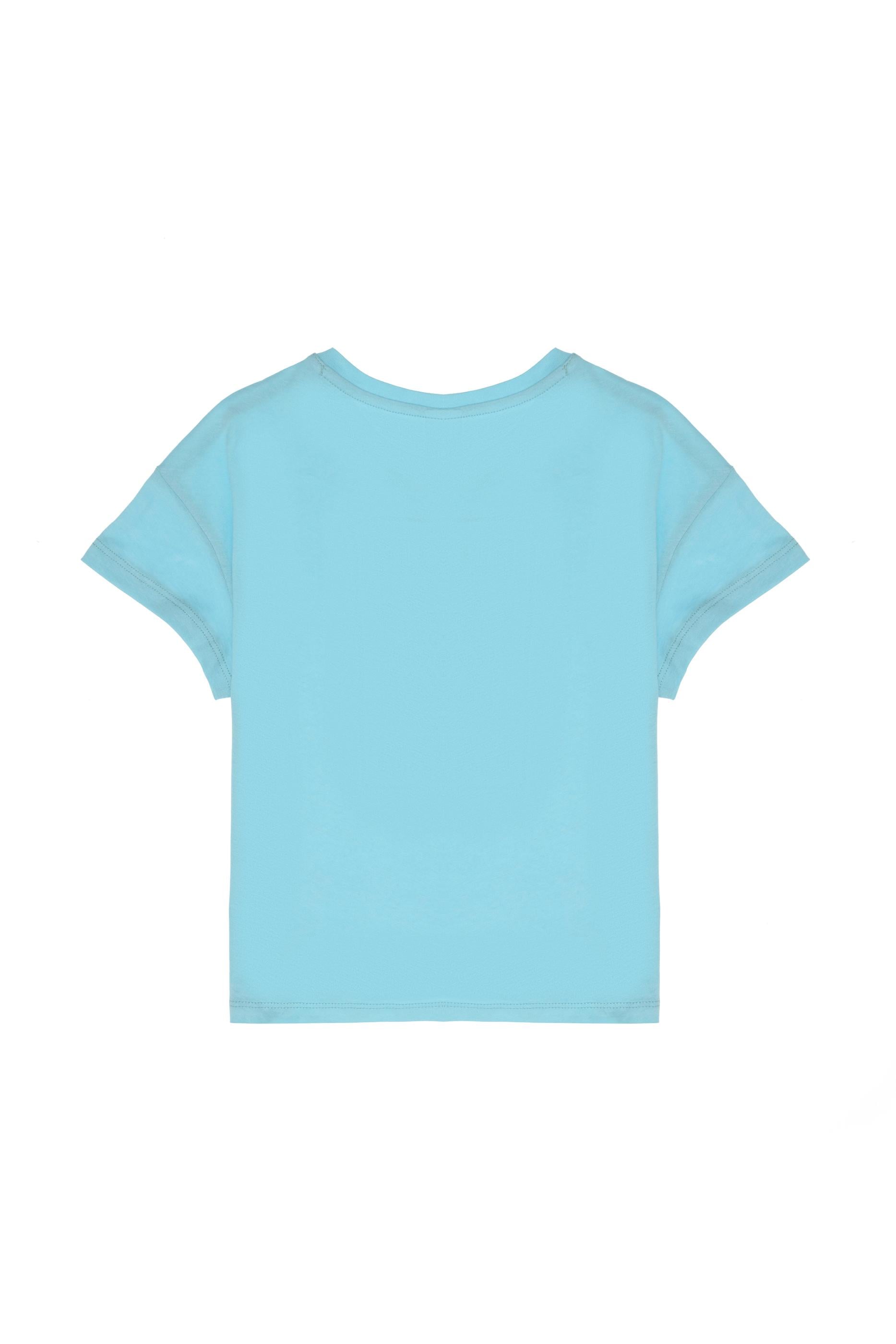 Kız Çocuk Aqua Bisiklet Yaka Çiçek Baskılı Pamuk Tişört