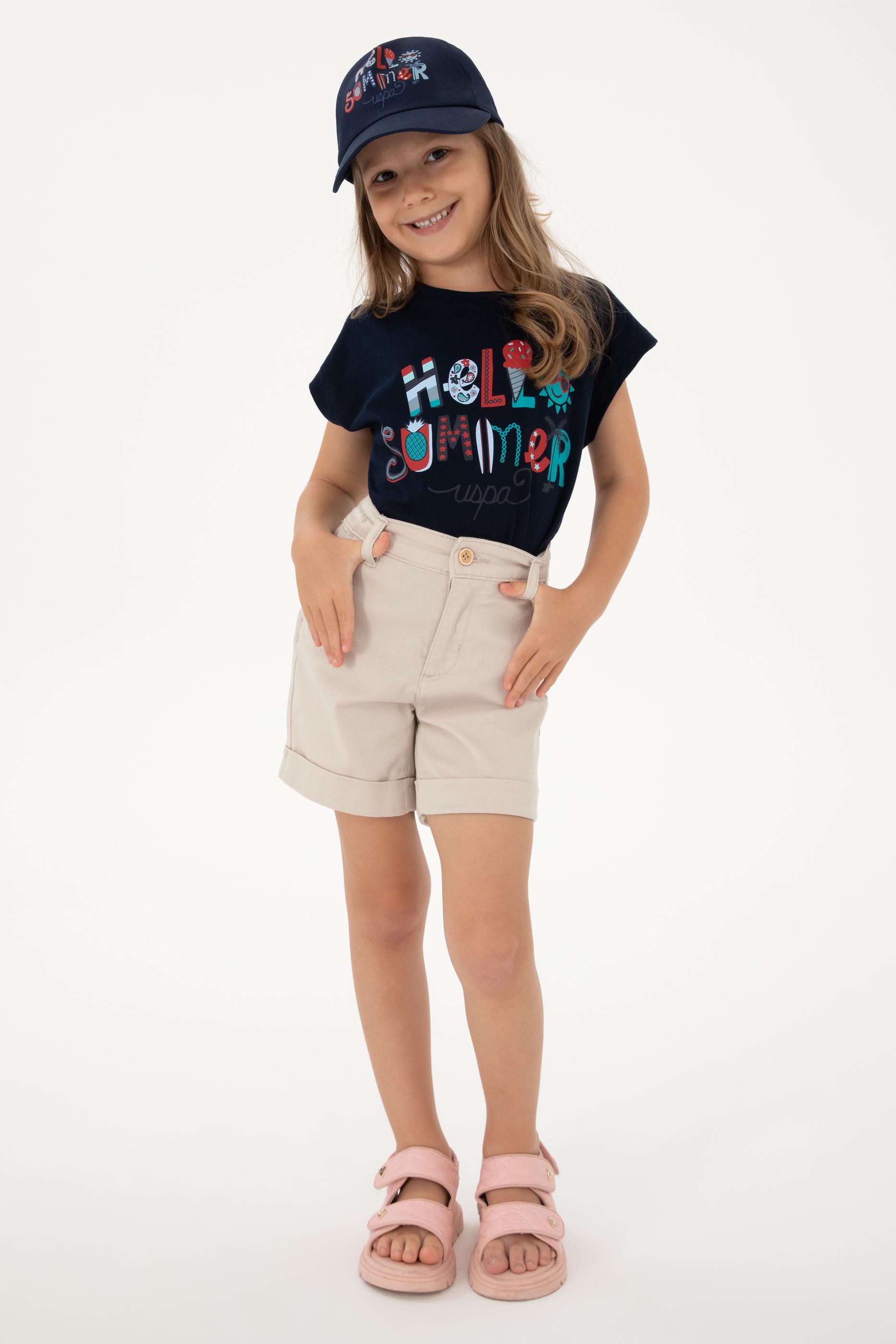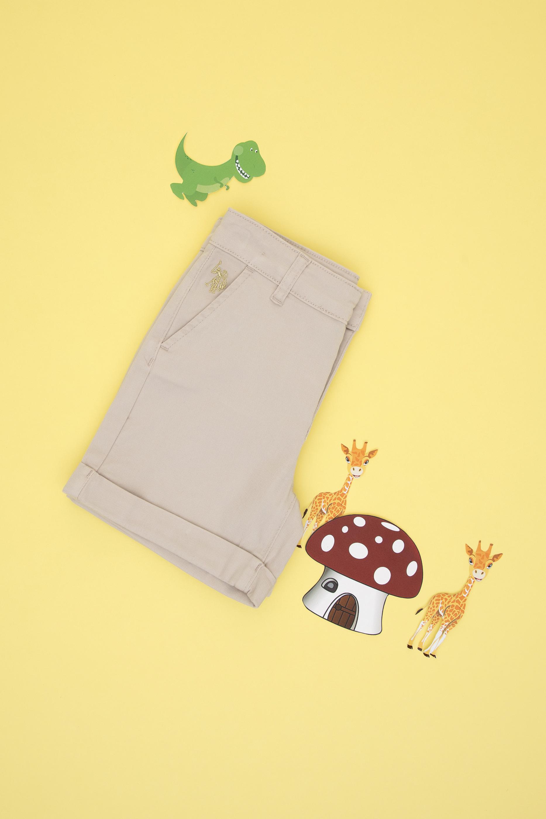 - Kız Çocuk Bej Cepli Dokuma Şort
