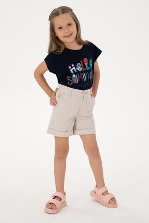 Kız Çocuk Bej Cepli Dokuma Şort