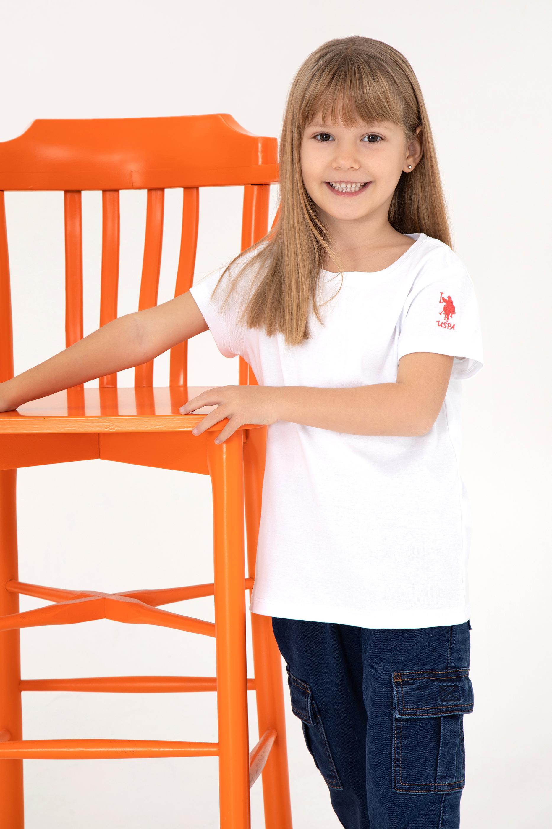 Kız Çocuk Beyaz Bisiklet Yaka Basic Tişört