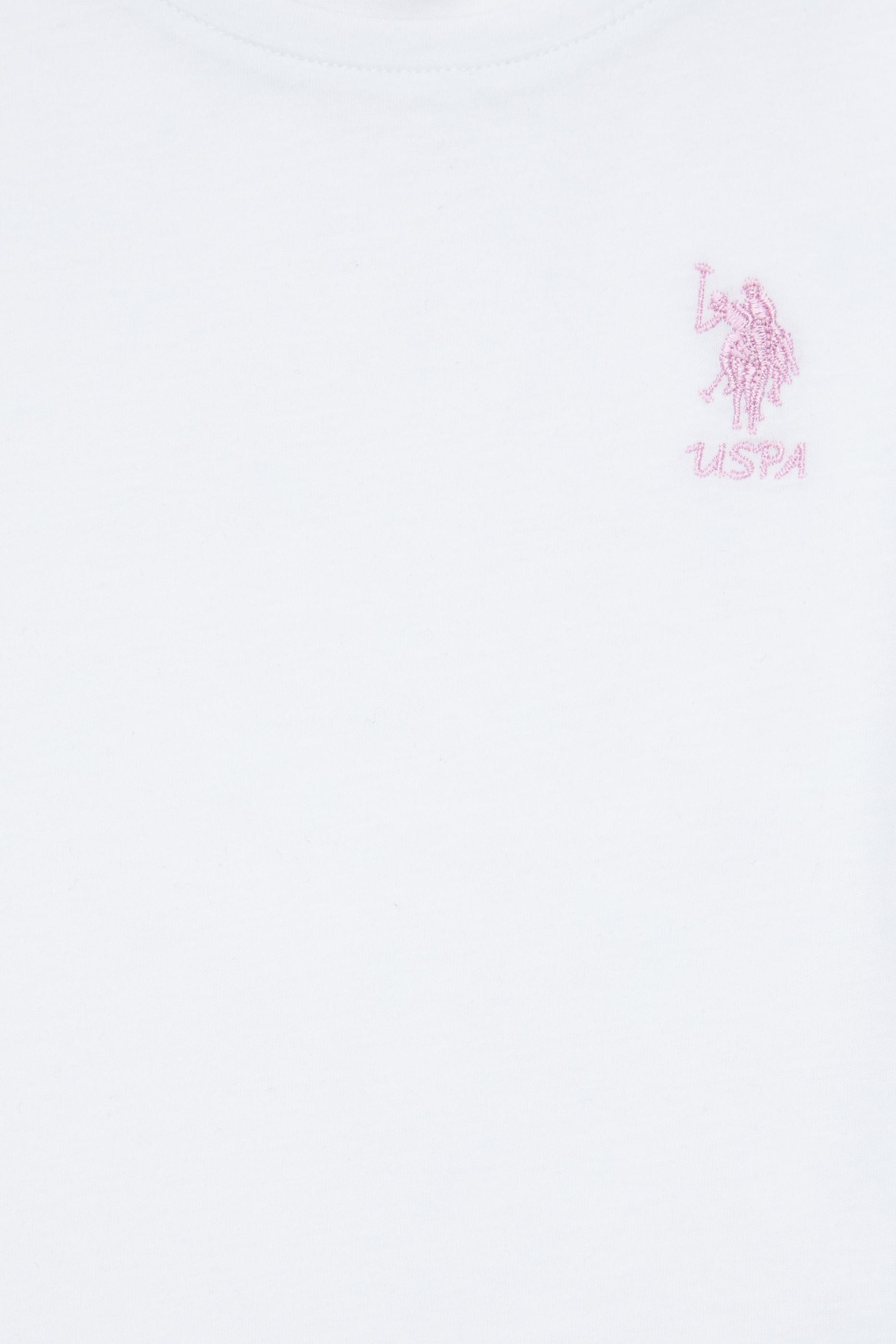 Kız Çocuk Beyaz Bisiklet Yaka Basic Tişört