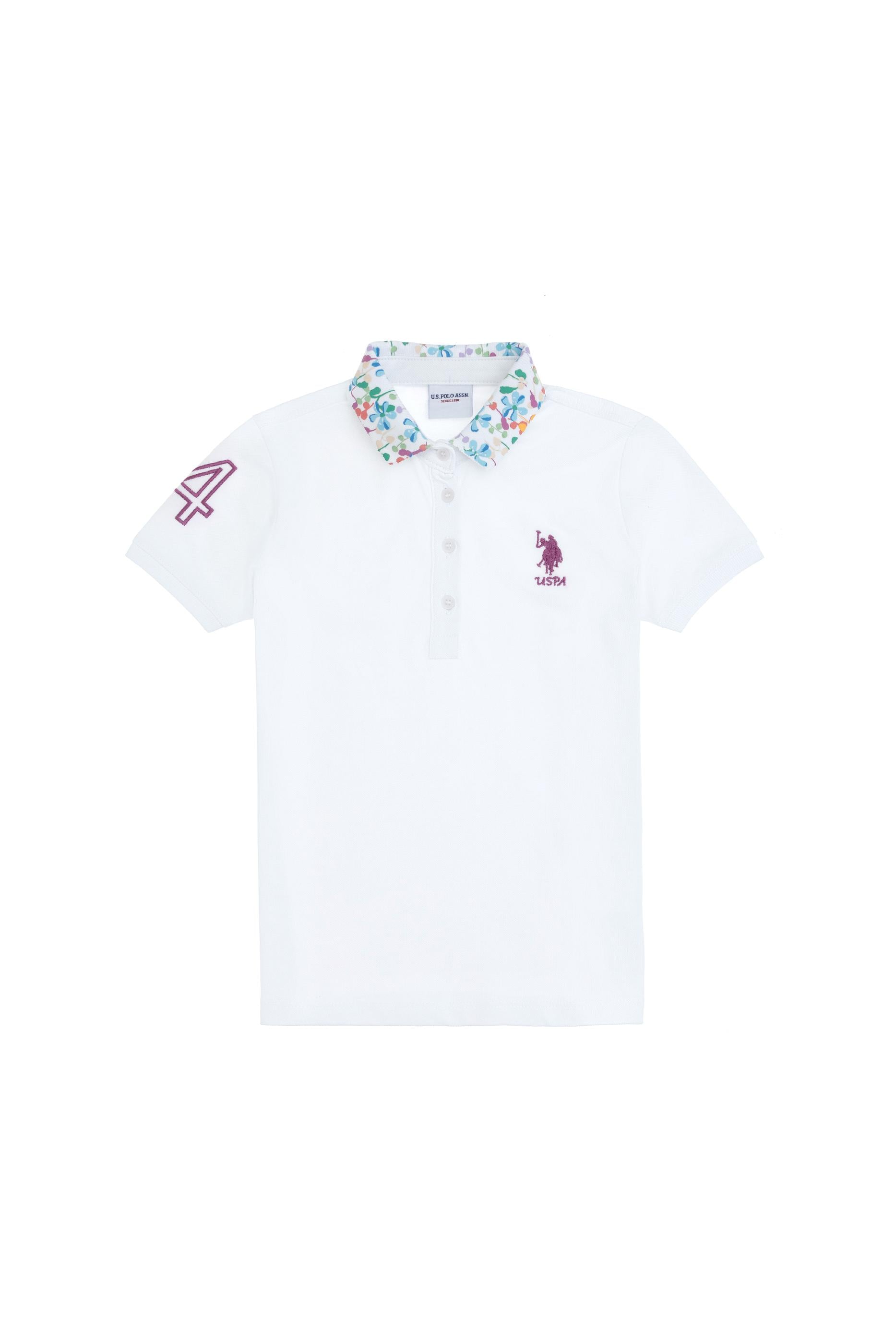 - Kız Çocuk Beyaz Polo Yaka Basic Tişört