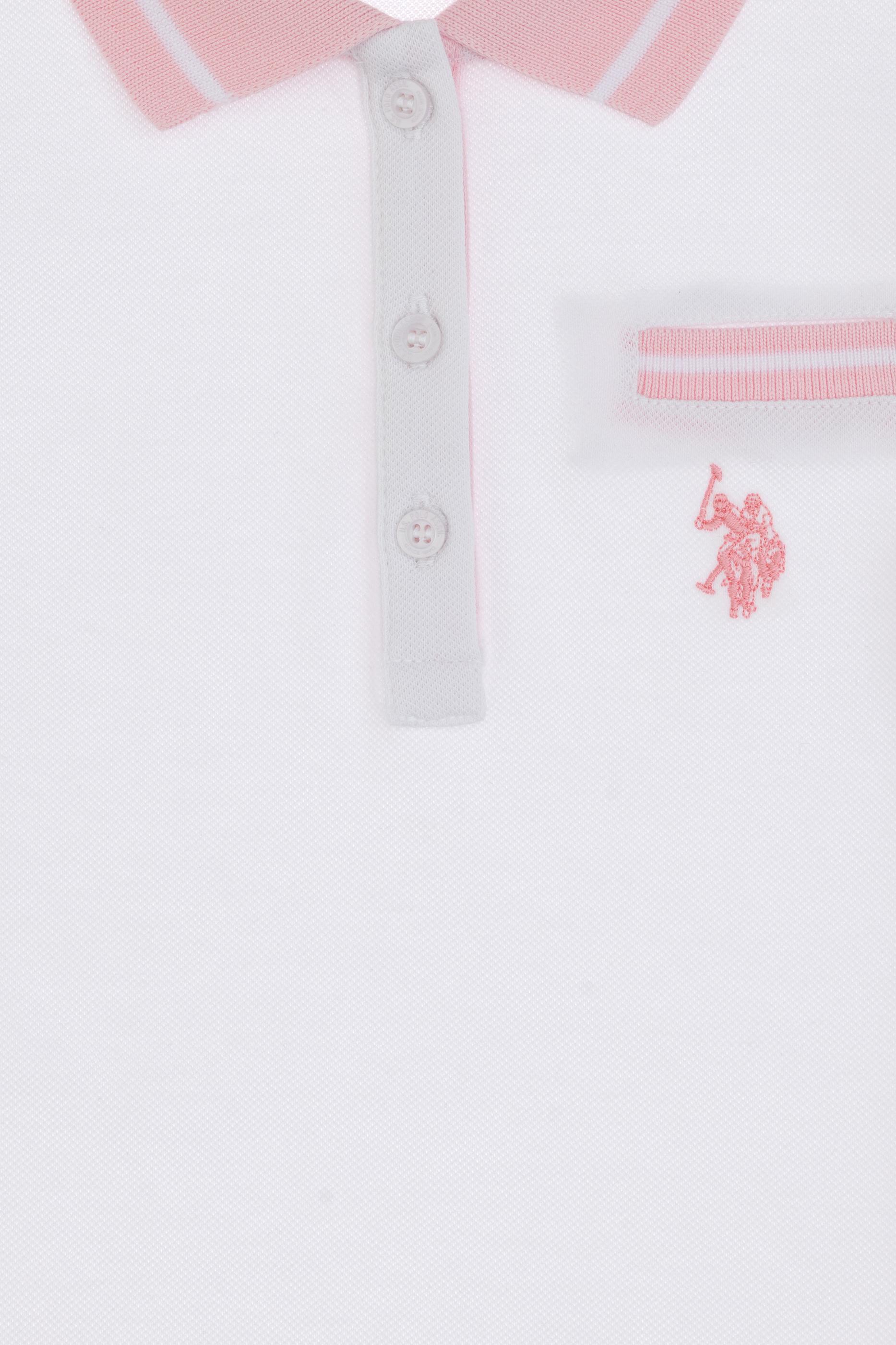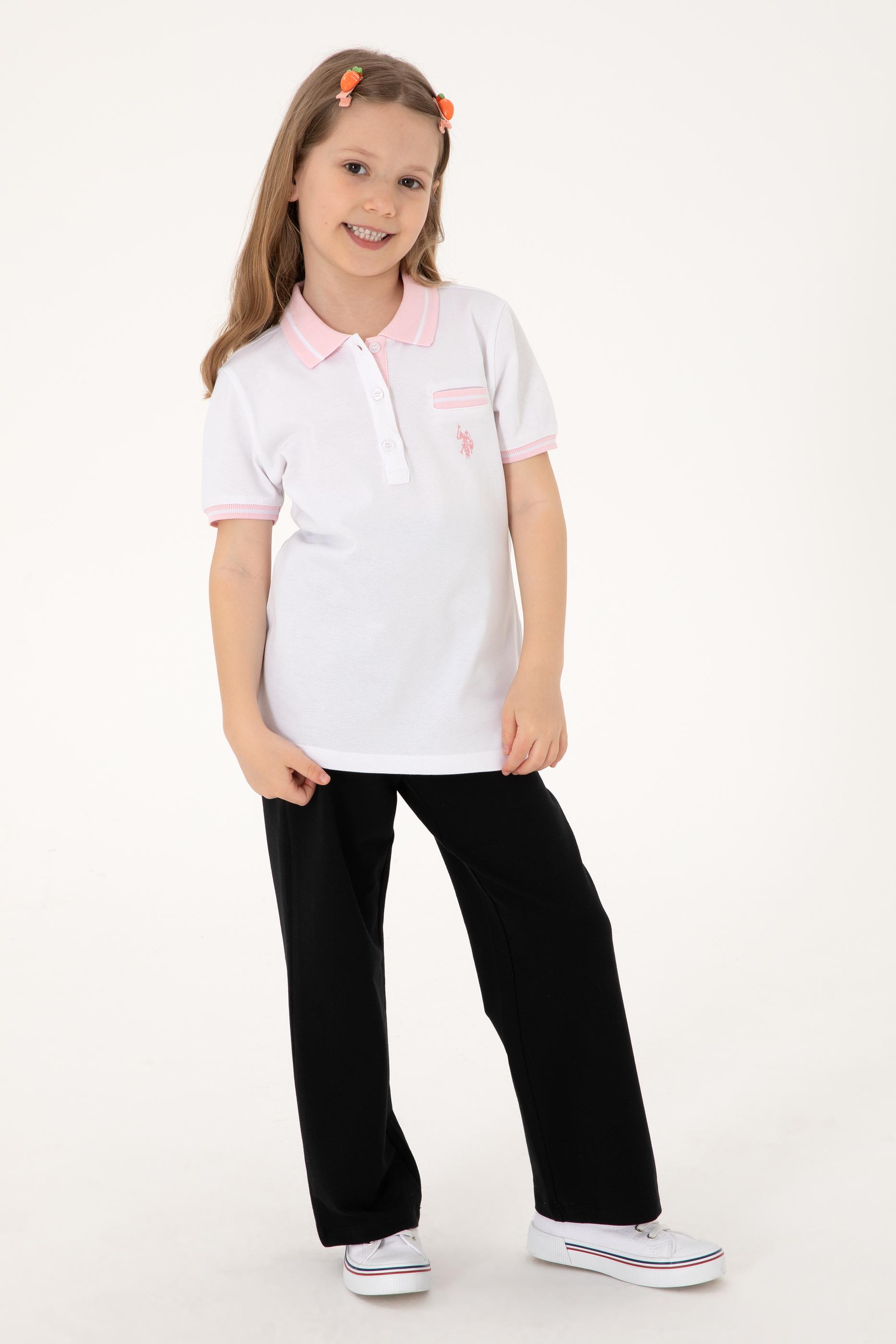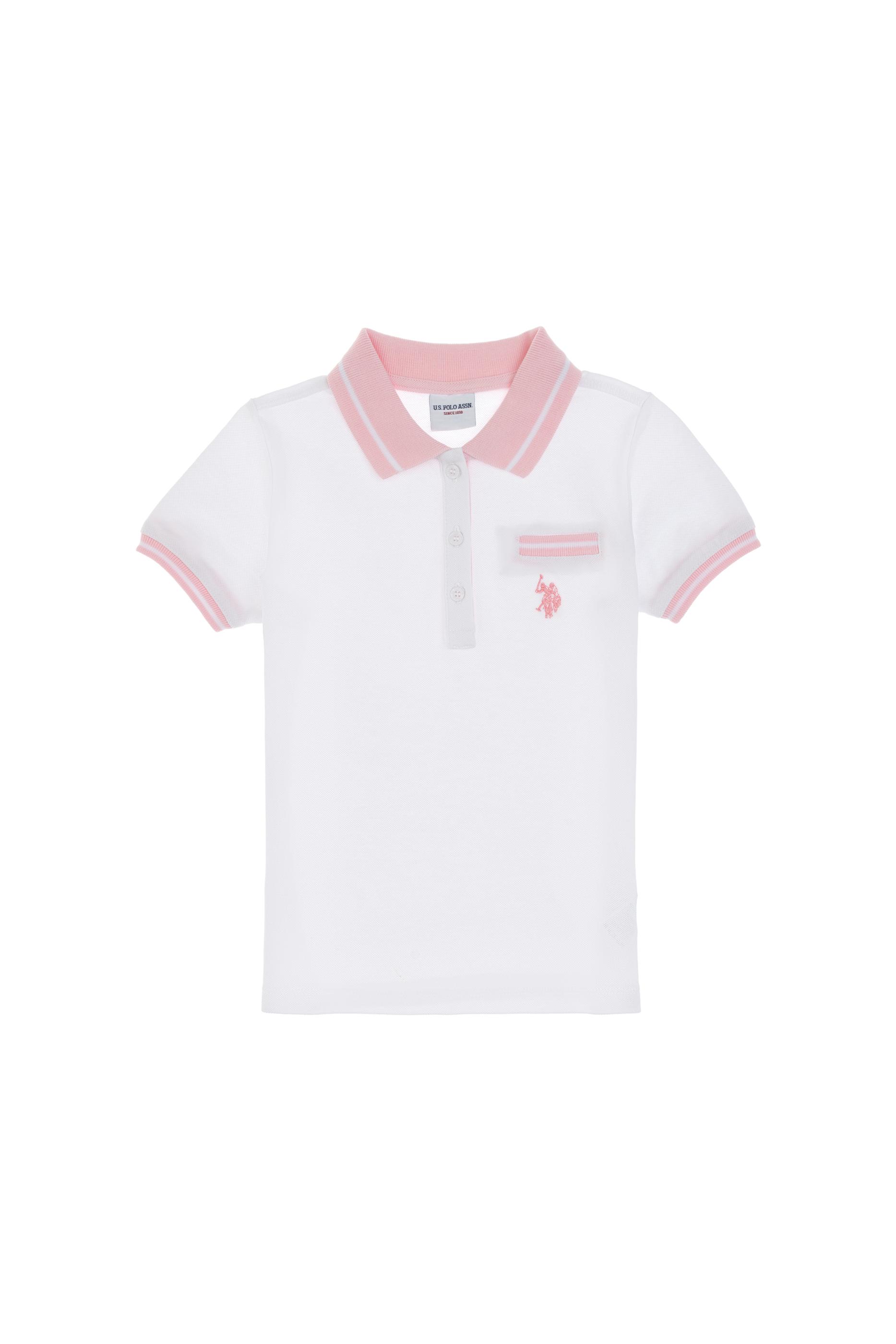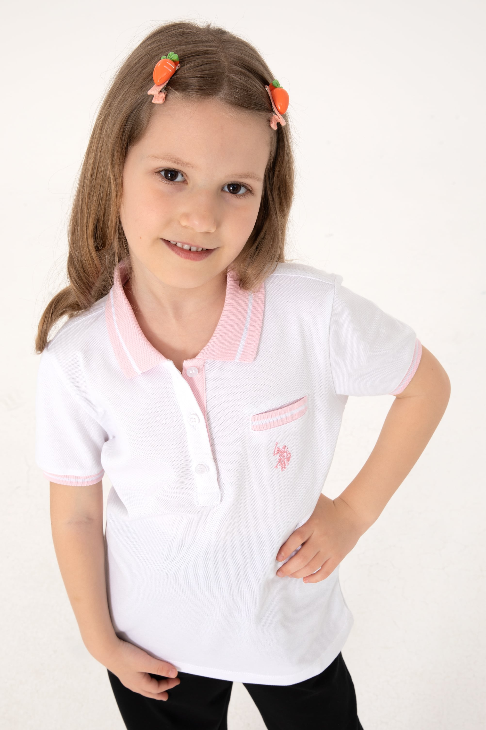 Kız Çocuk Beyaz Polo Yaka İşlevsiz Cepli Basic Tişört