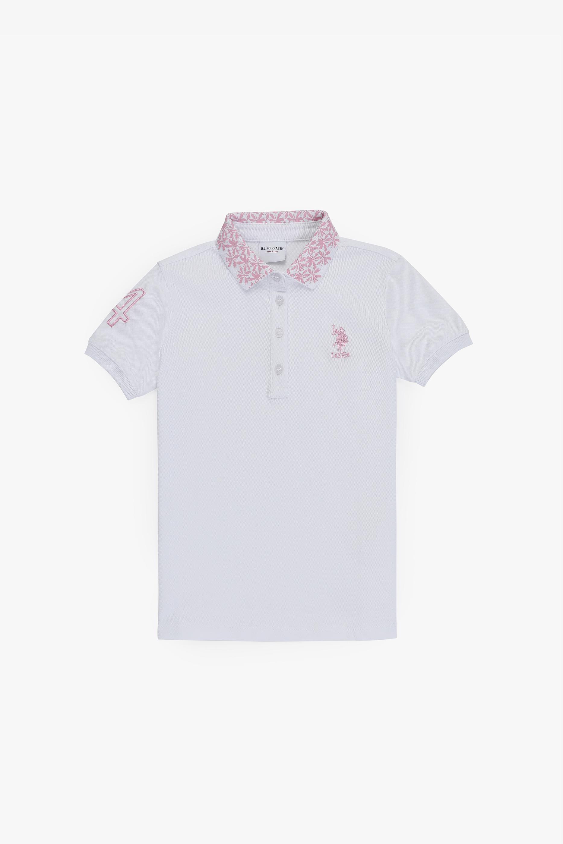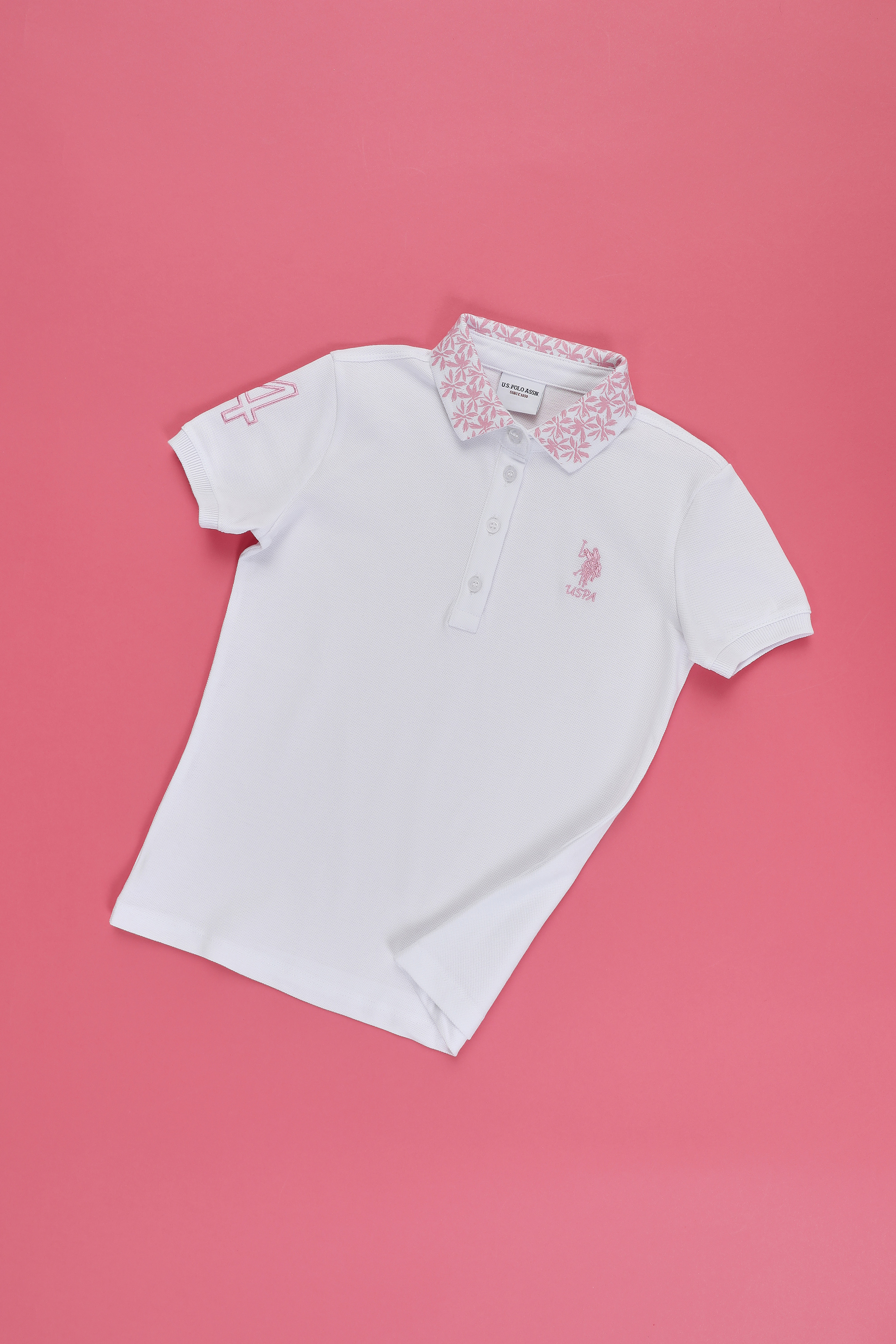 - Kız Çocuk Beyaz Polo Yaka Basic Tişört