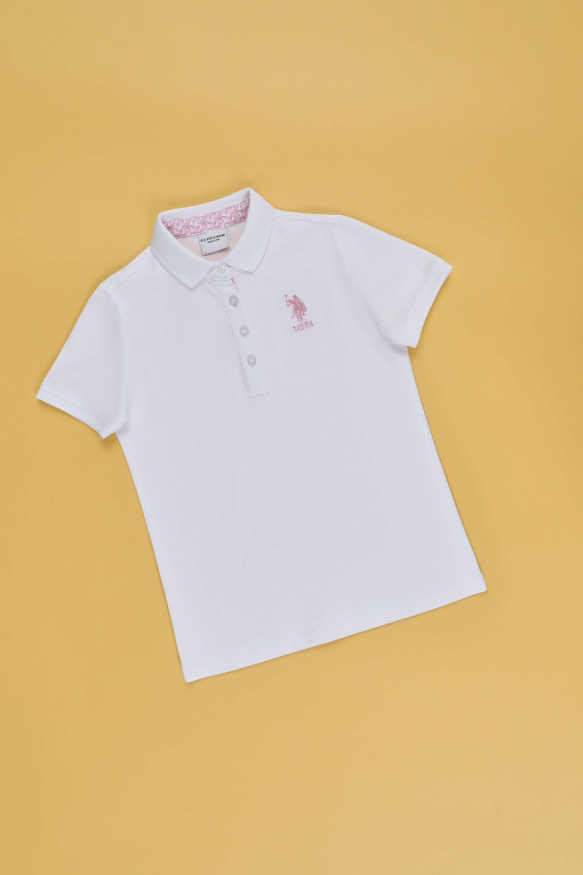- Kız Çocuk Beyaz Polo Yaka Basic Tişört