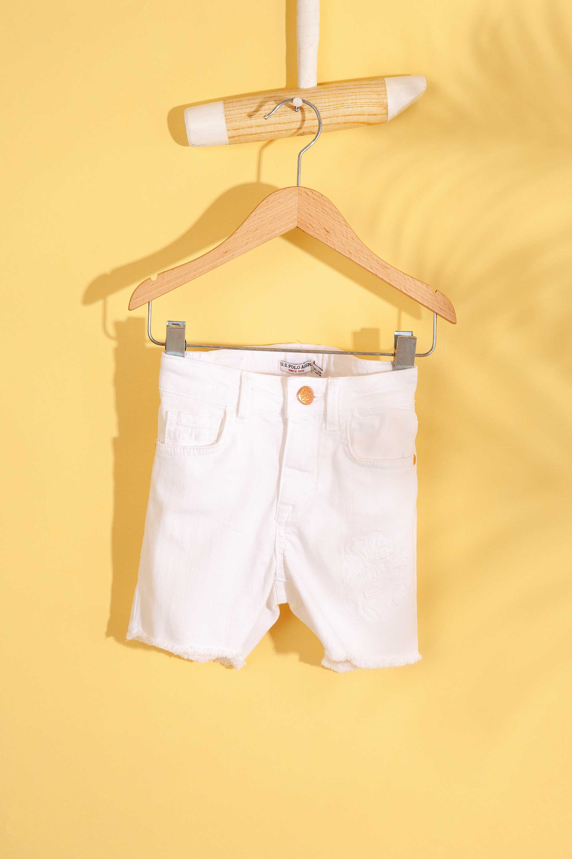 - Kız Çocuk Beyaz Dokuma Bermuda Capri