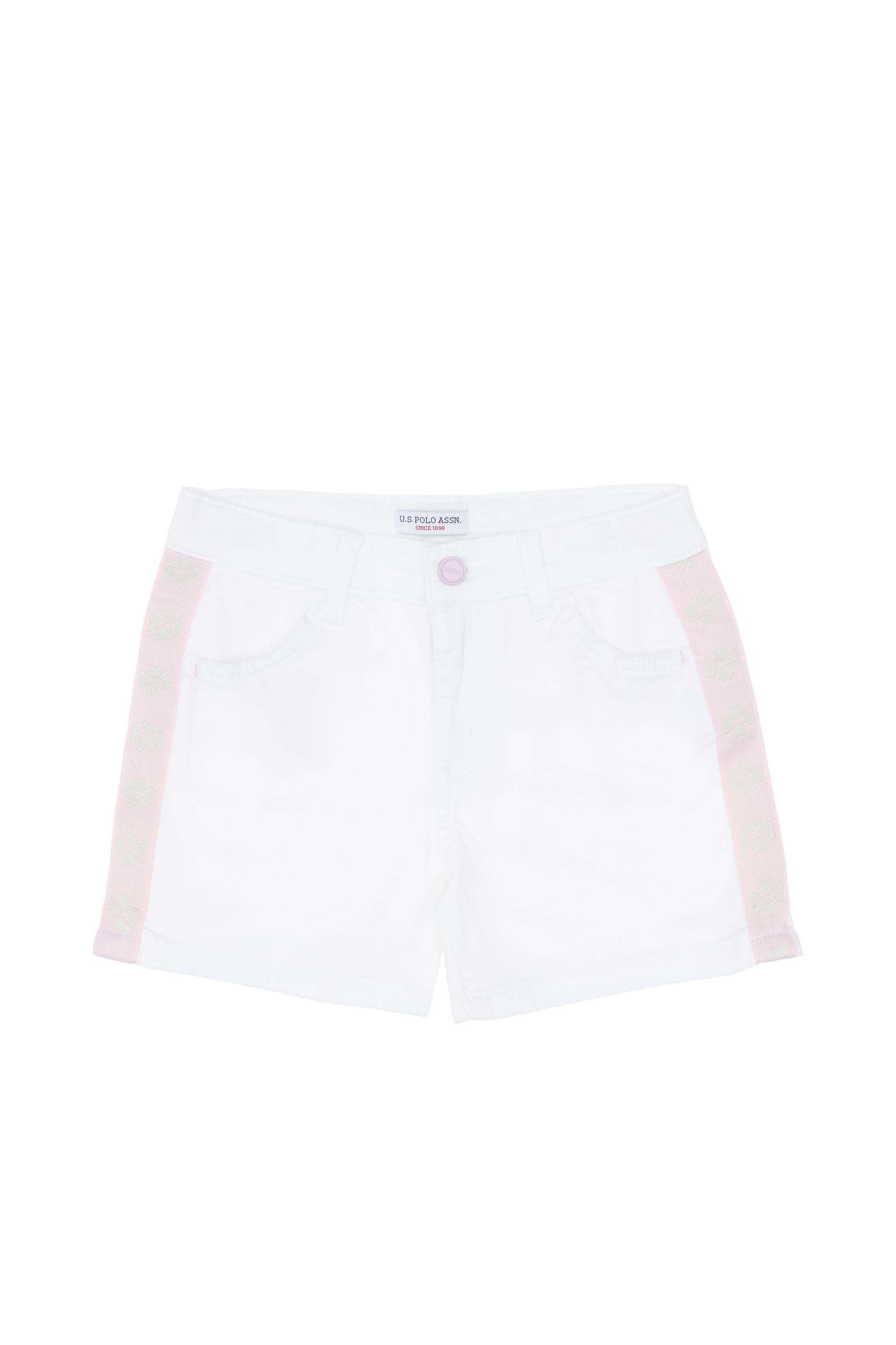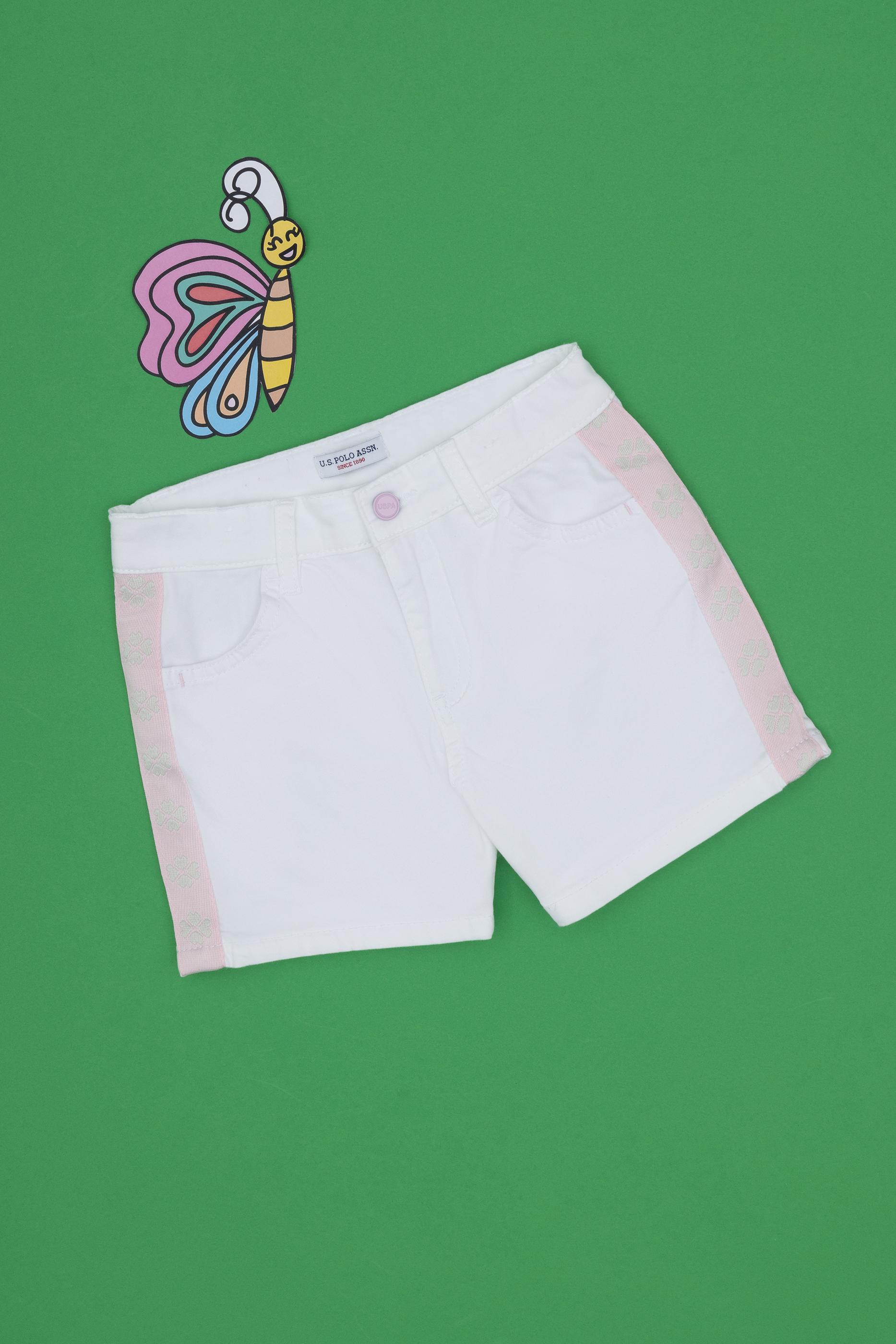 - Kız Çocuk Beyaz Biye Detaylı Dokuma Şort