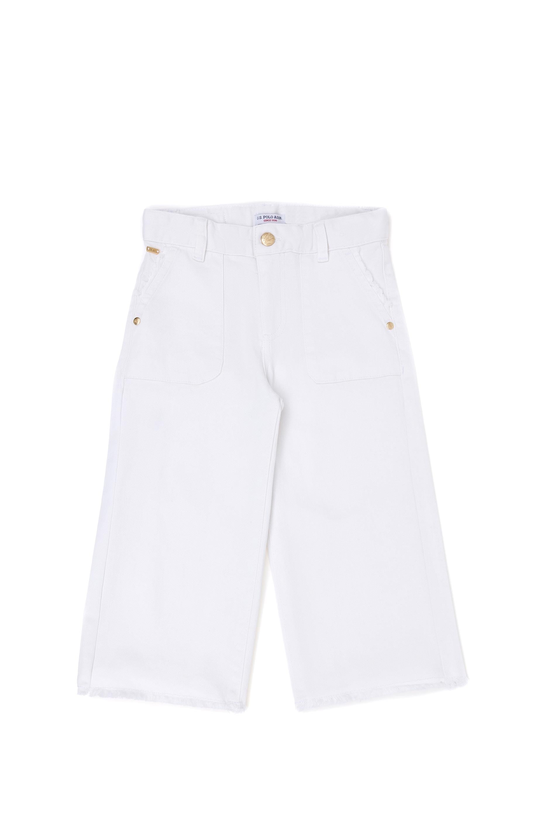 Kız Çocuk Beyaz Kanvas Pantolon