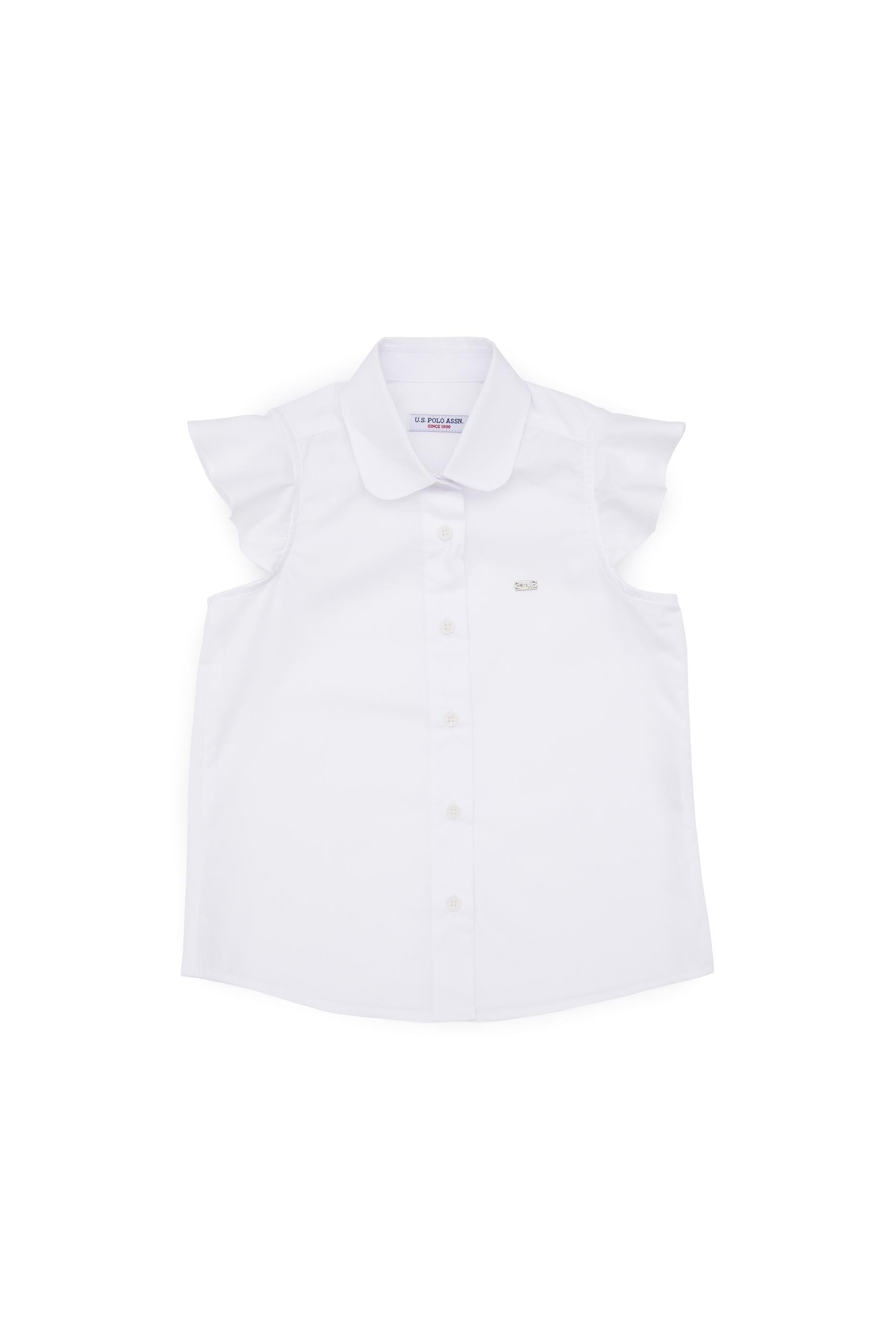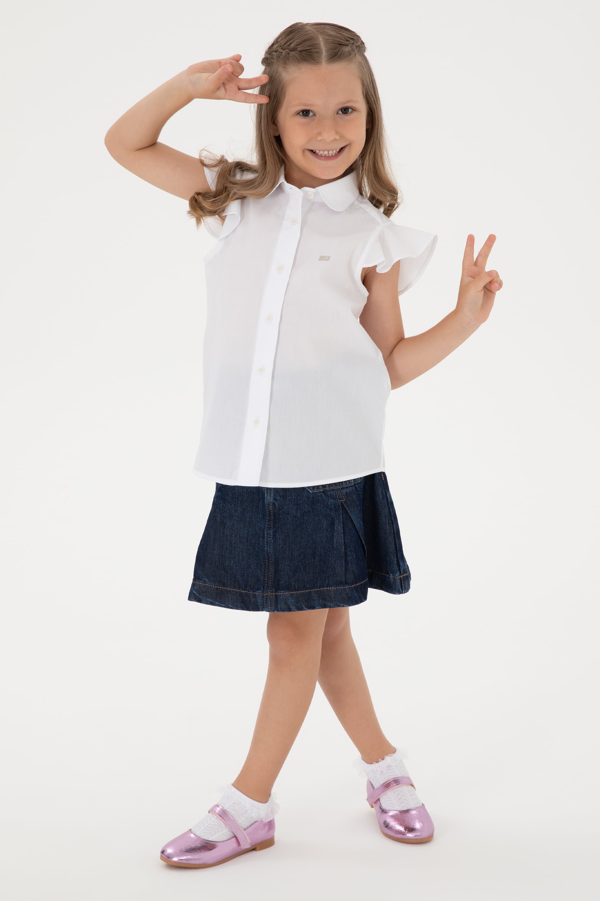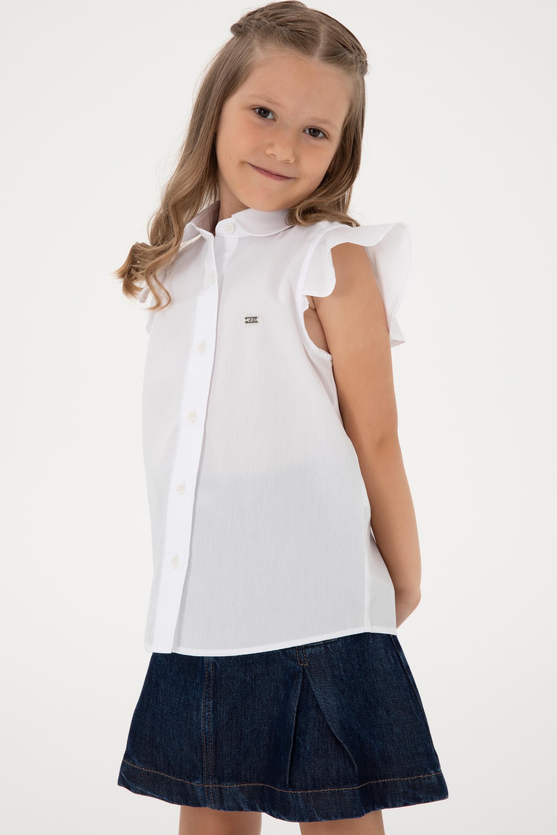 - Kız Çocuk Beyaz Fırfır Kol Detaylı Pamuk Gömlek