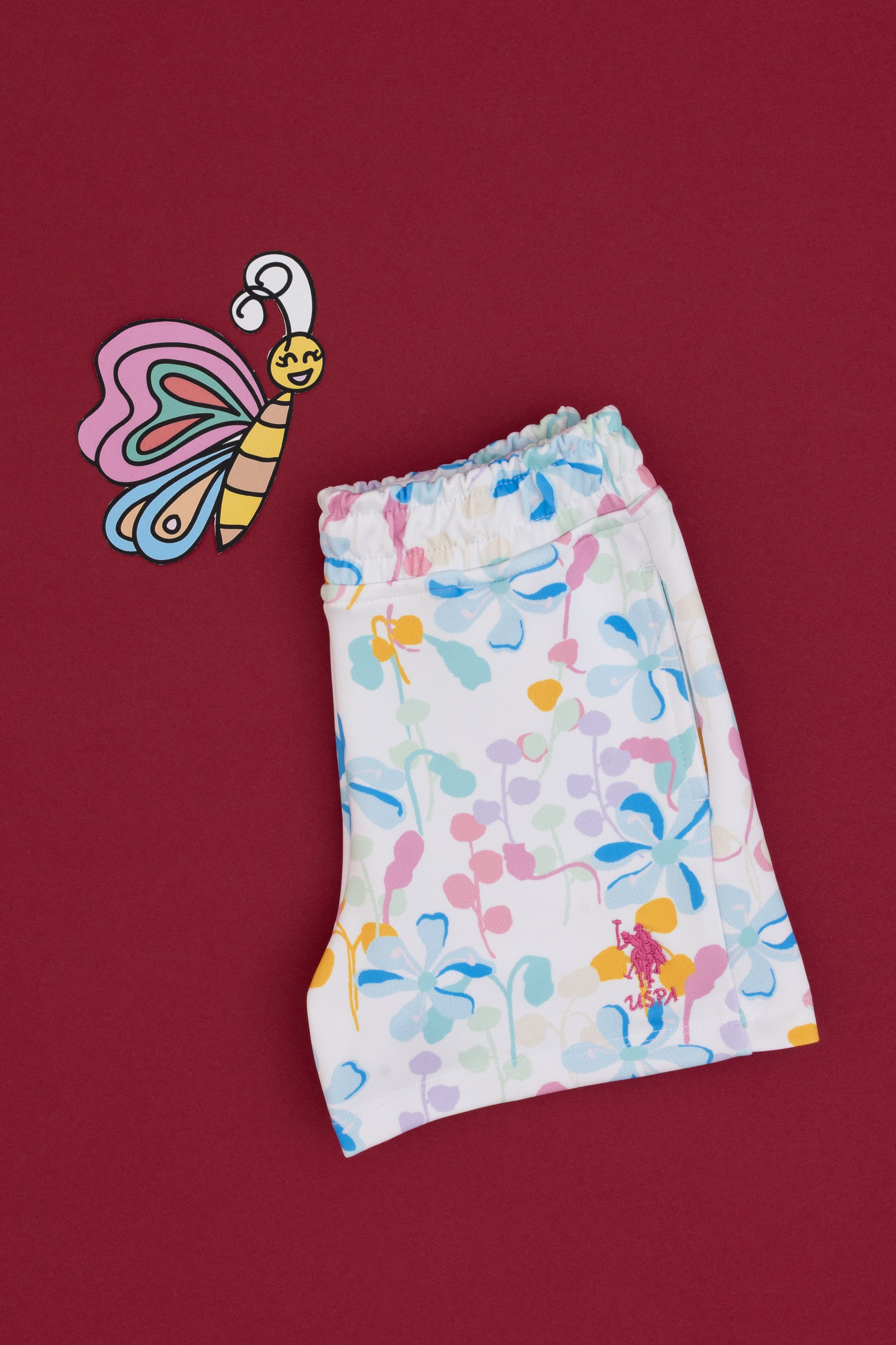 Kız Çocuk Beyaz Çiçek Desenli Relax Fit Örme Şort