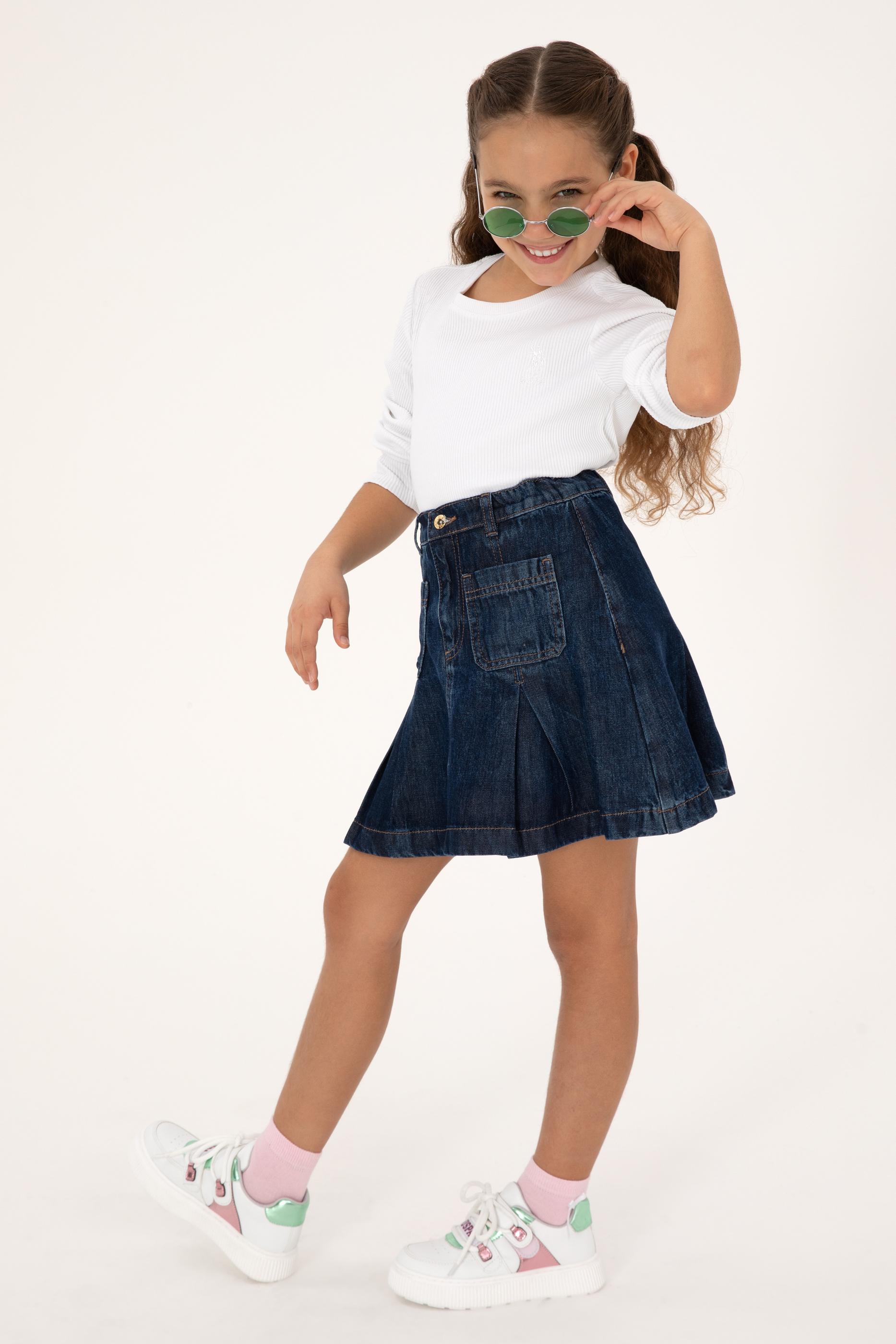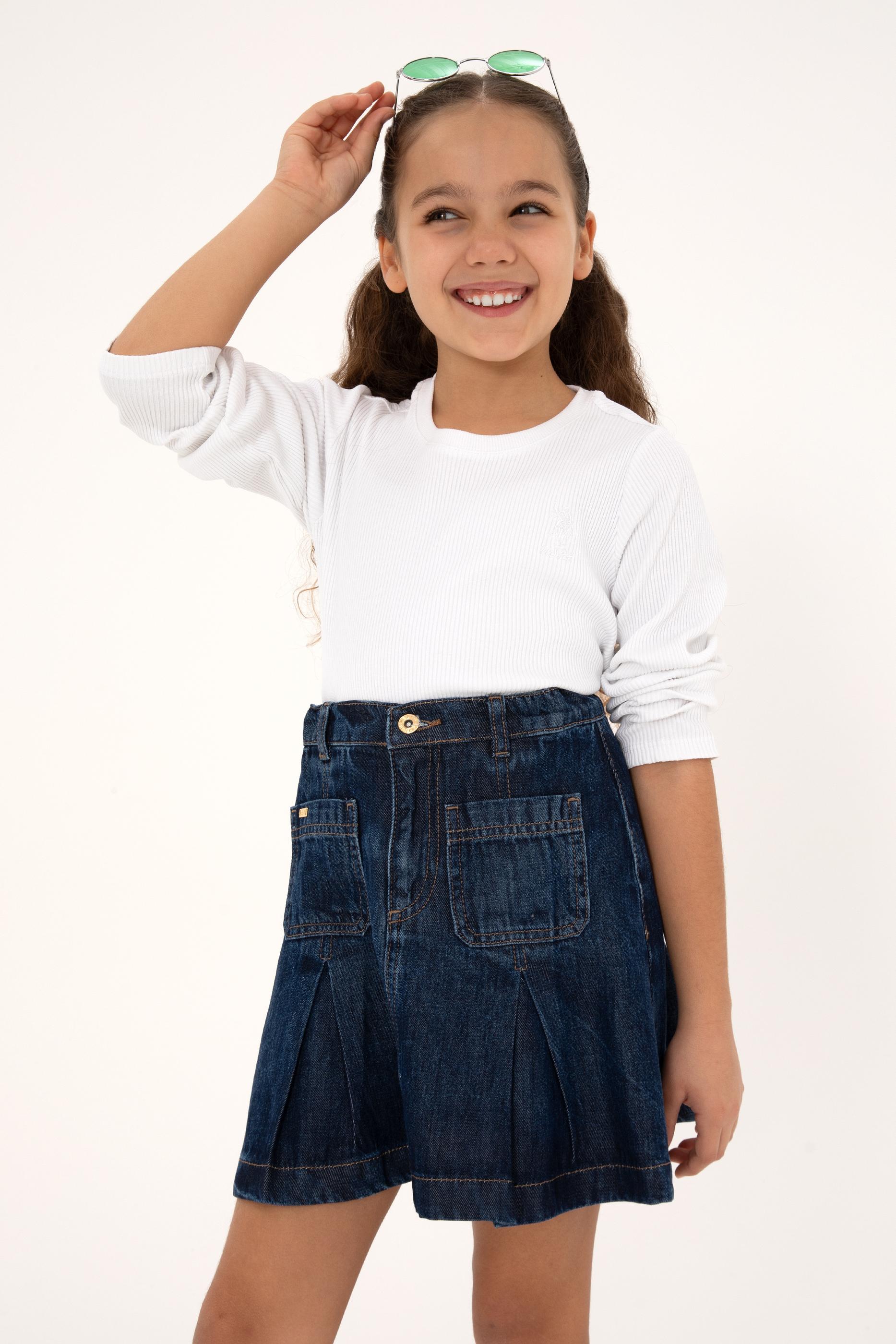 Kız Çocuk Beyaz Bisiklet Yaka Sweatshirt
