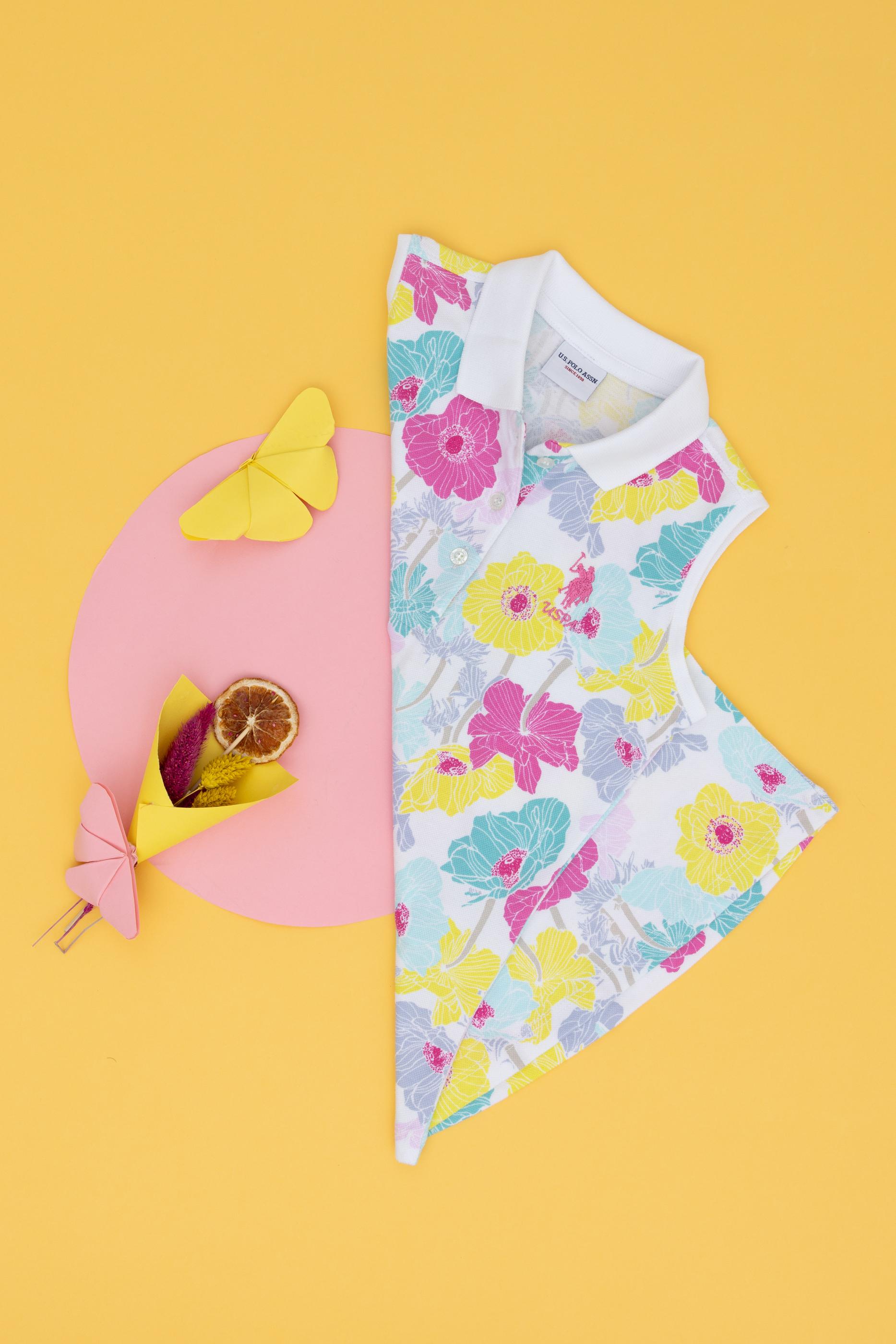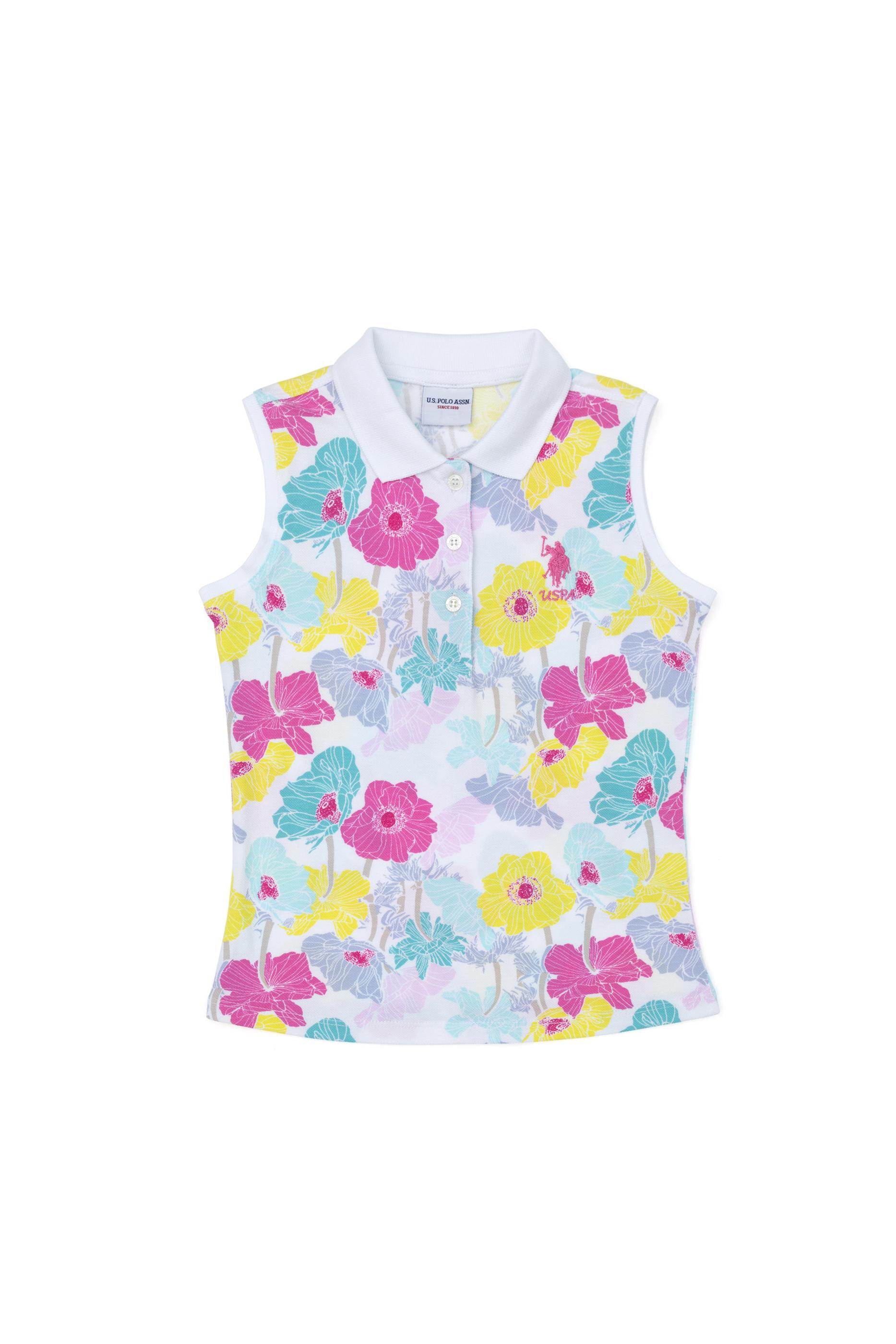 Kız Çocuk Beyaz Polo Yaka Kolsuz Tişört