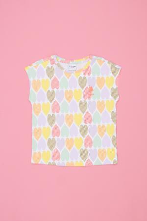 Tasarımındaki özel detaylarla önce çıkan bu kız çocuk tişörtü sadece çocuğunuzu değil, arkadaşlarını da büyüleyecek renkli kalplerden oluşan bir baskıya sahiptir. Sadece online mağazada satışa sunulan bisiklet yaka tişört, %95 pamuk ile %5 elastan karışımından oluşur. Çocuk giyiminde ilk akla gelen ürünlerden olan kız çocuk tişört modelleri çocukların tarzlarına renk katmaları için harika bir seçenektir. Standart kalıbı ile vücuda rahatça giyilebilir.