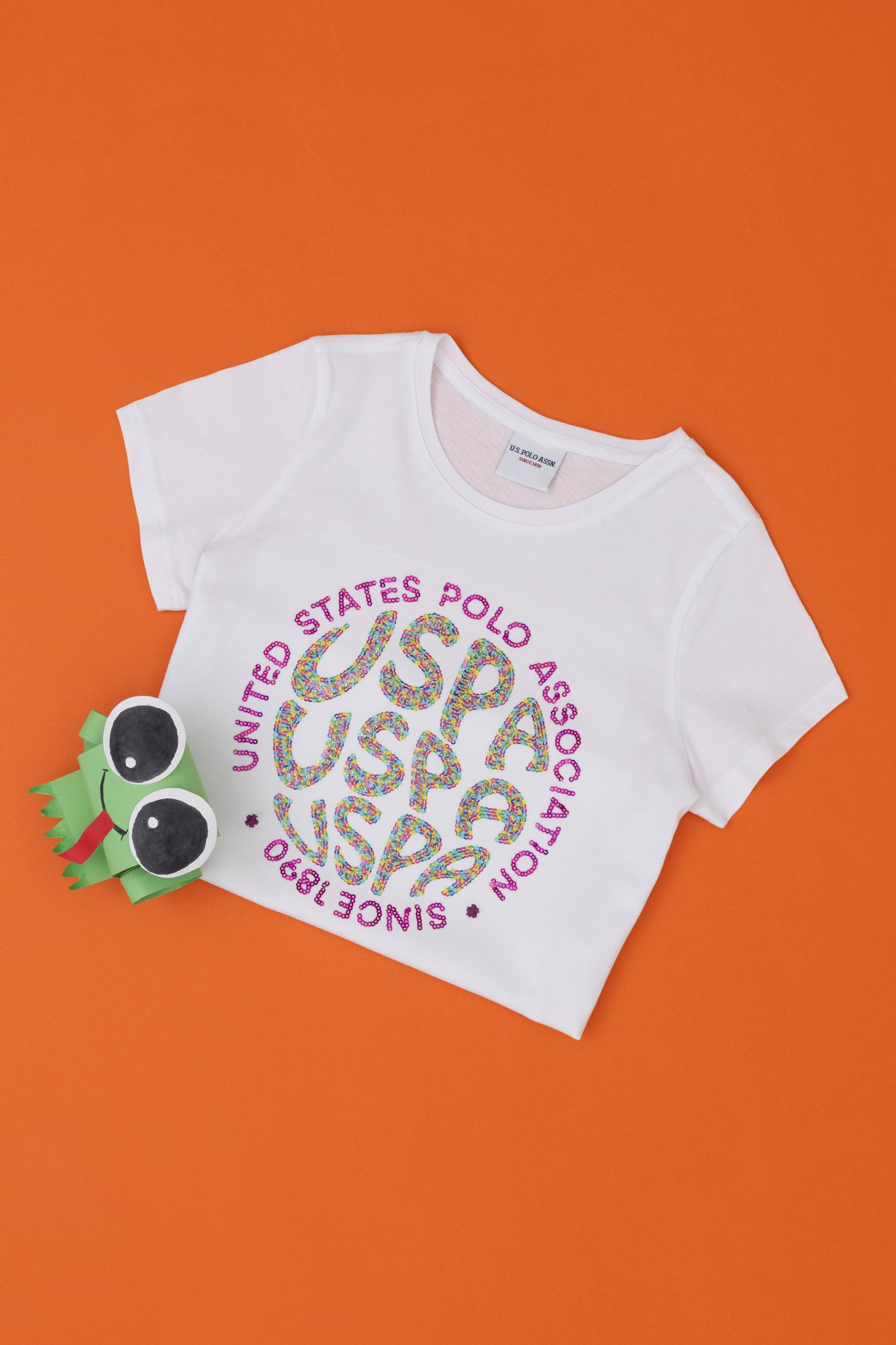- Kız Çocuk Beyaz Bisiklet Yaka Tişört