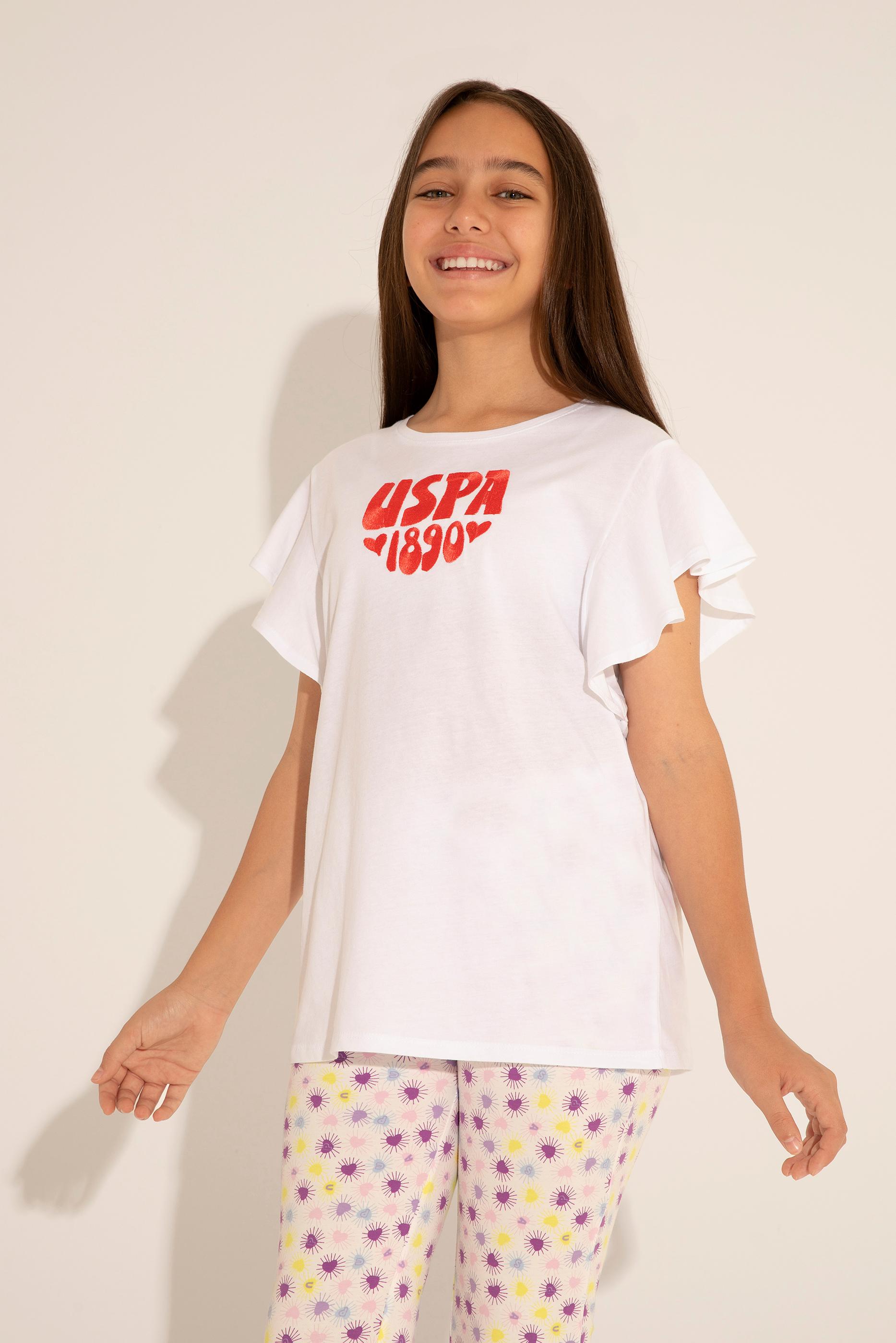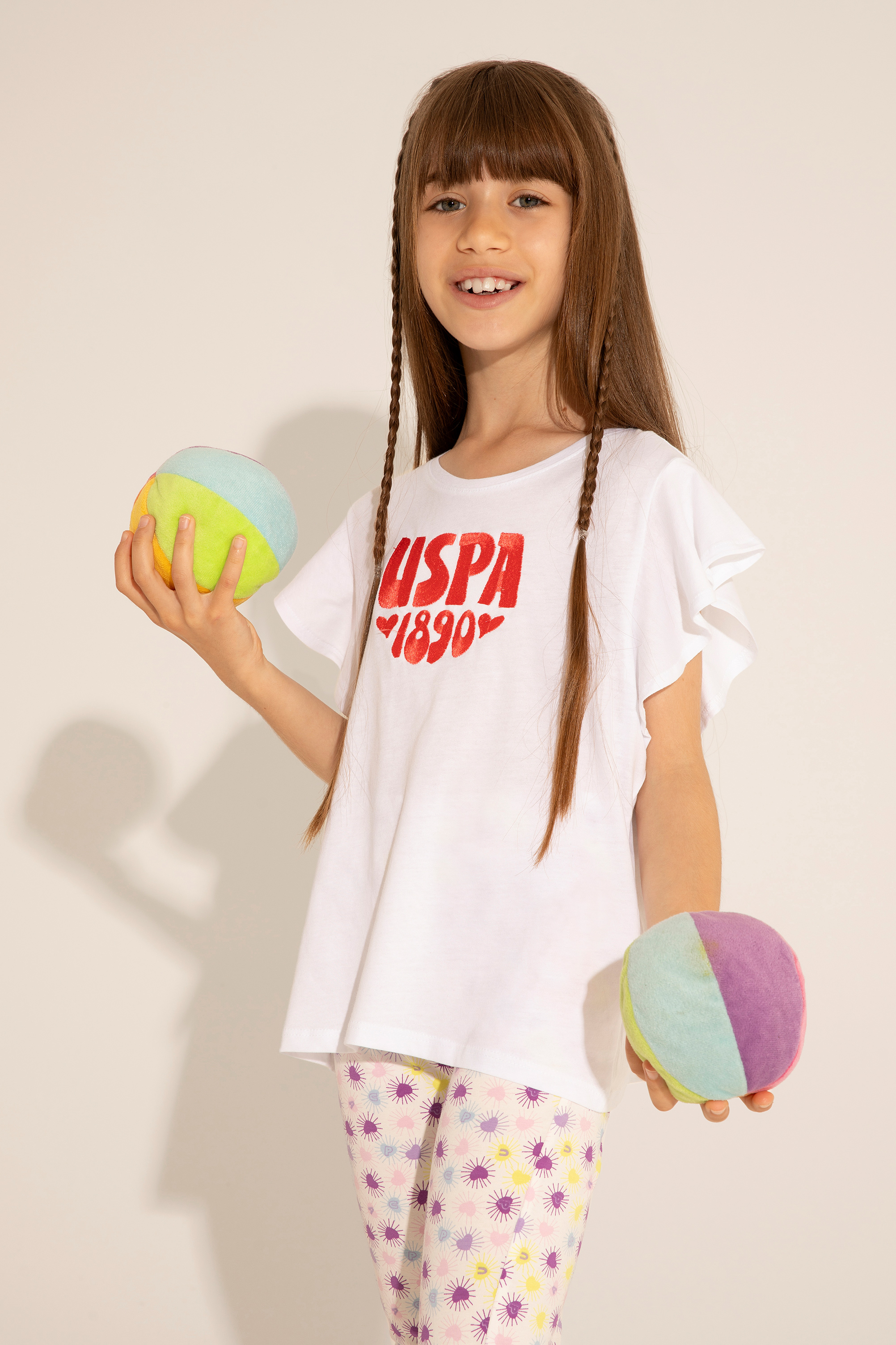 Beyazın saflığını ve sadeliğini yansıtan bisiklet yaka tişört, kız çocukları için hem şık hem de rahat bir seçenek sunmaktadır. Yumuşak pamuklu kumaşı, gün boyu konfor sağlayarak cilt dostu bir dokunuş sunmaktadır. Üzerindeki kırmızı USPA 1890 baskısı, tişörte dinamik bir hava katarken, enerjik bir görünüm sağlamaktadır. Kol kısmındaki hafif volan detayları, tişörte şık bir dokunuş ekleyerek sıradanlıktan uzak, sevimli bir tasarım oluşturmaktadır. Regular fit kesimi vücuda rahatça otururken, çocukların hareket özgürlüğünü kısıtlamadan keyifli bir giyim deneyimi sunmaktadır.