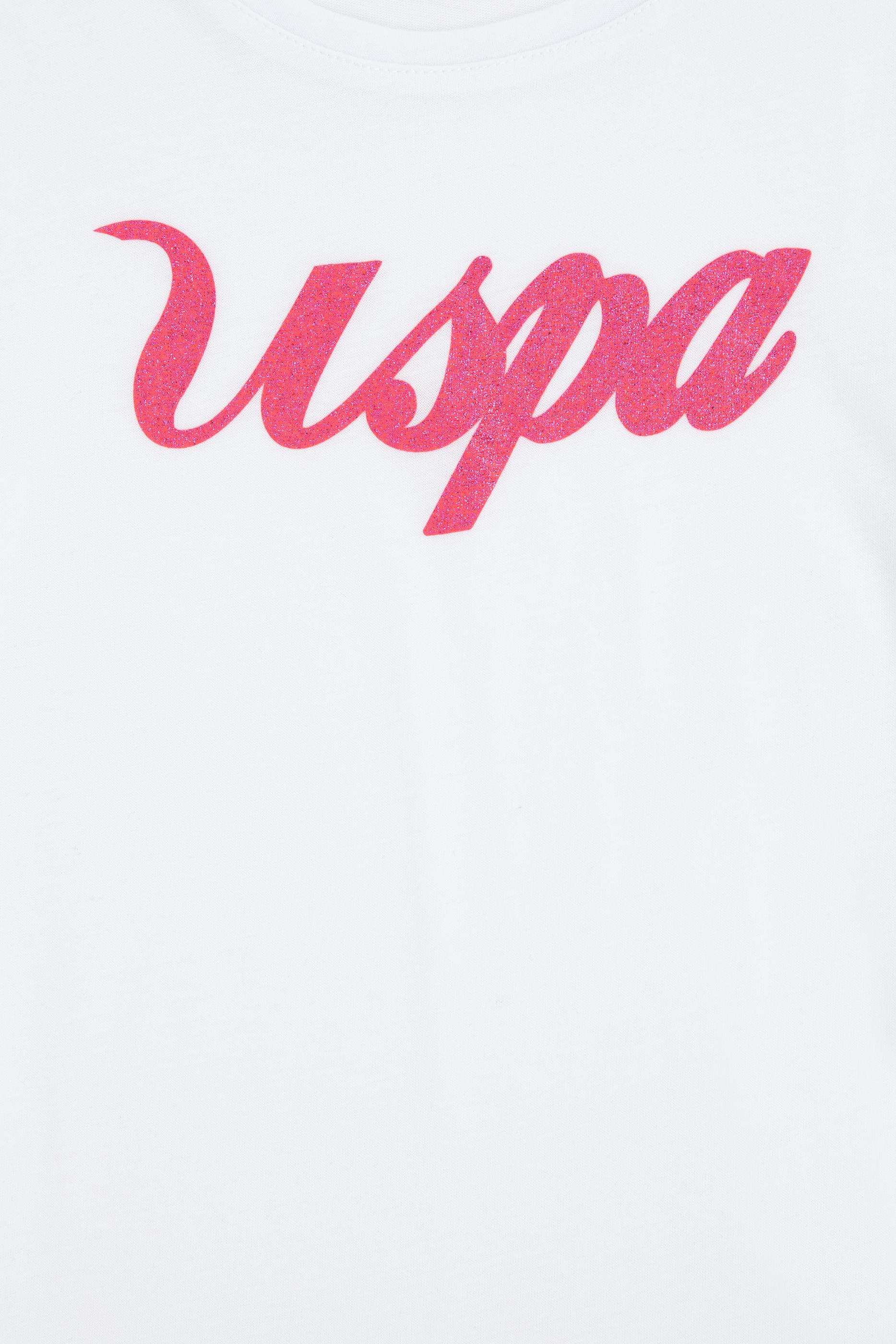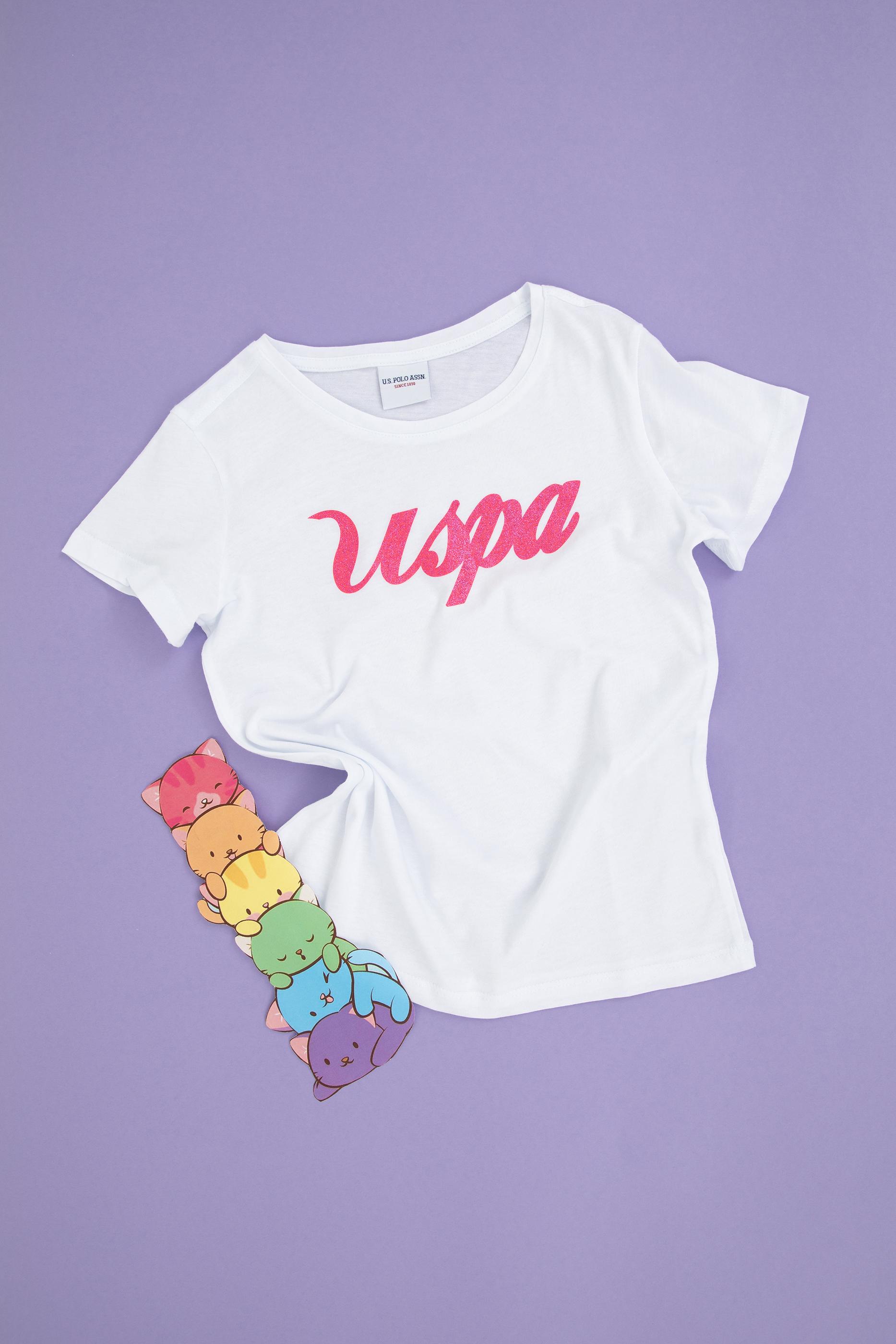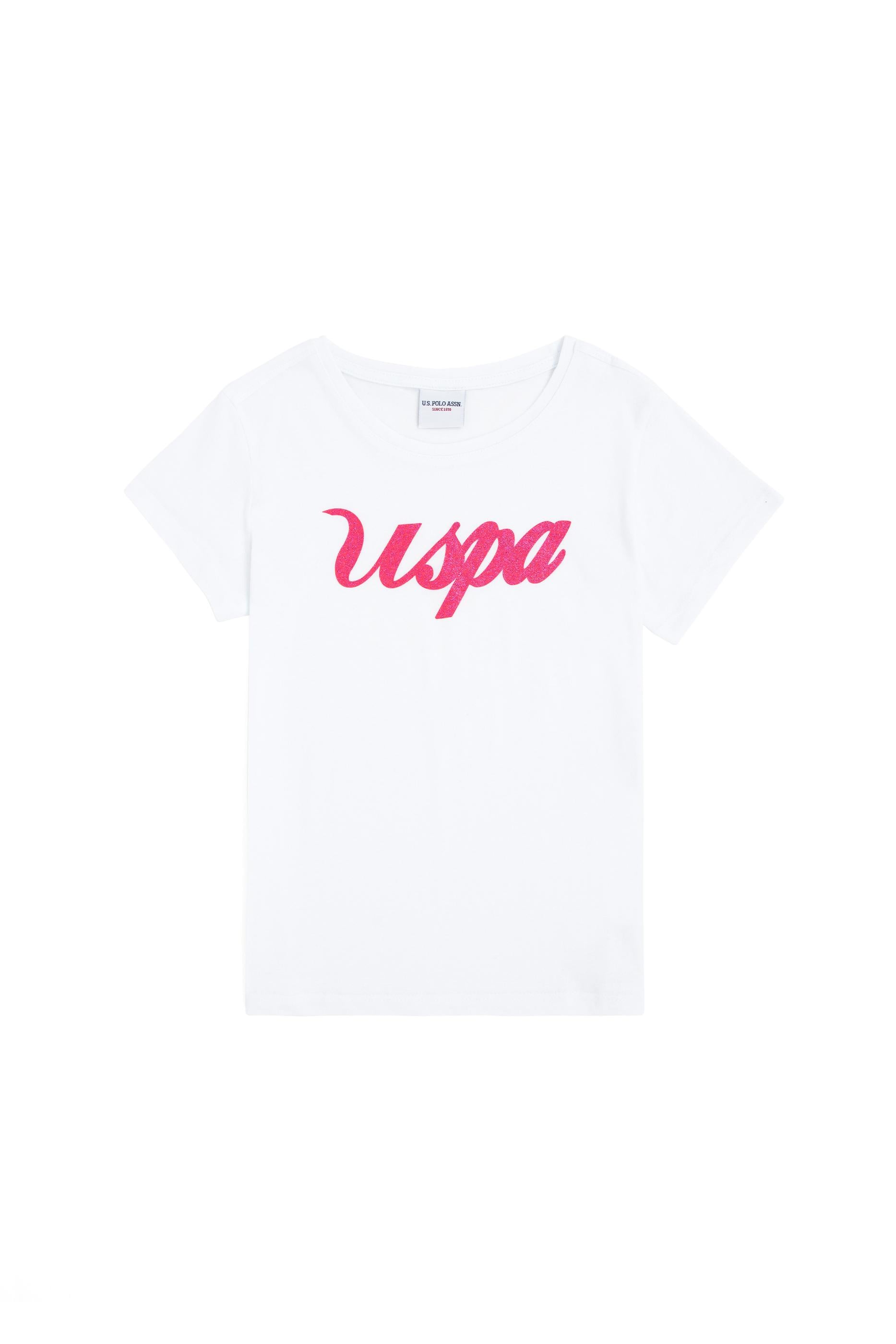 - Kız Çocuk Beyaz Bisiklet Yaka Tişört