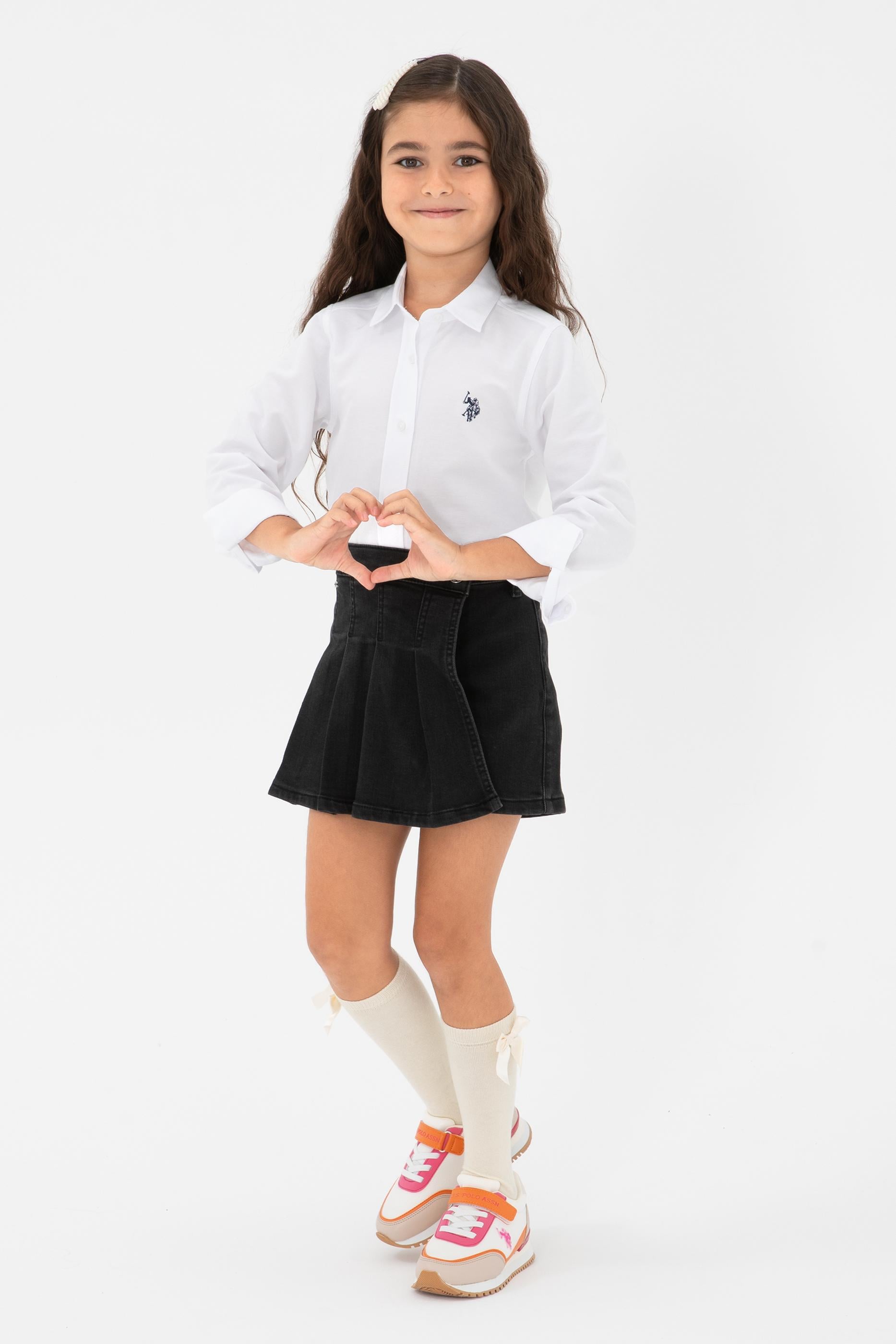 - Kız Çocuk Beyaz Uzun Kollu Basic Gömlek