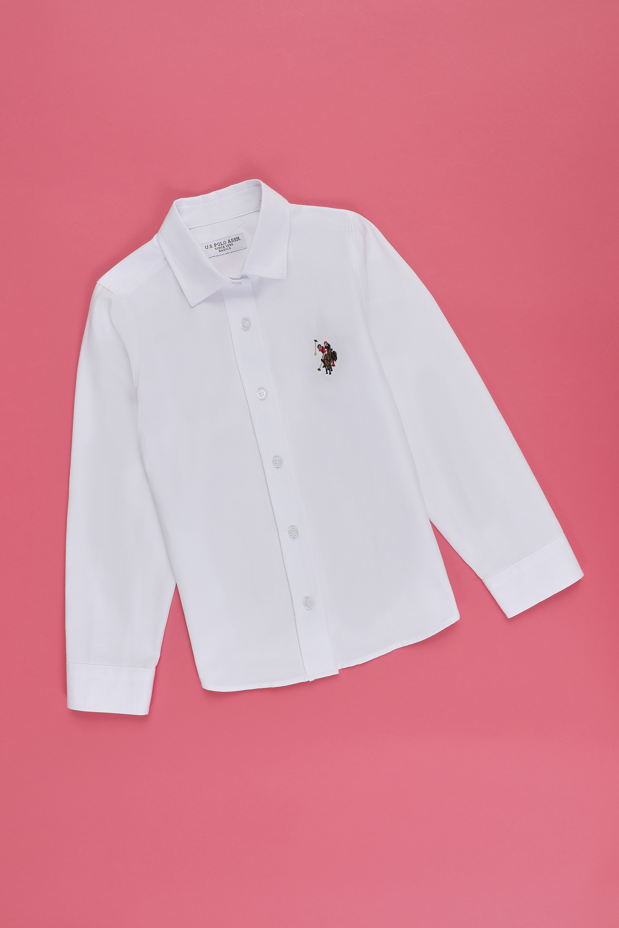 - Kız Çocuk Beyaz Uzun Kollu Basic Gömlek