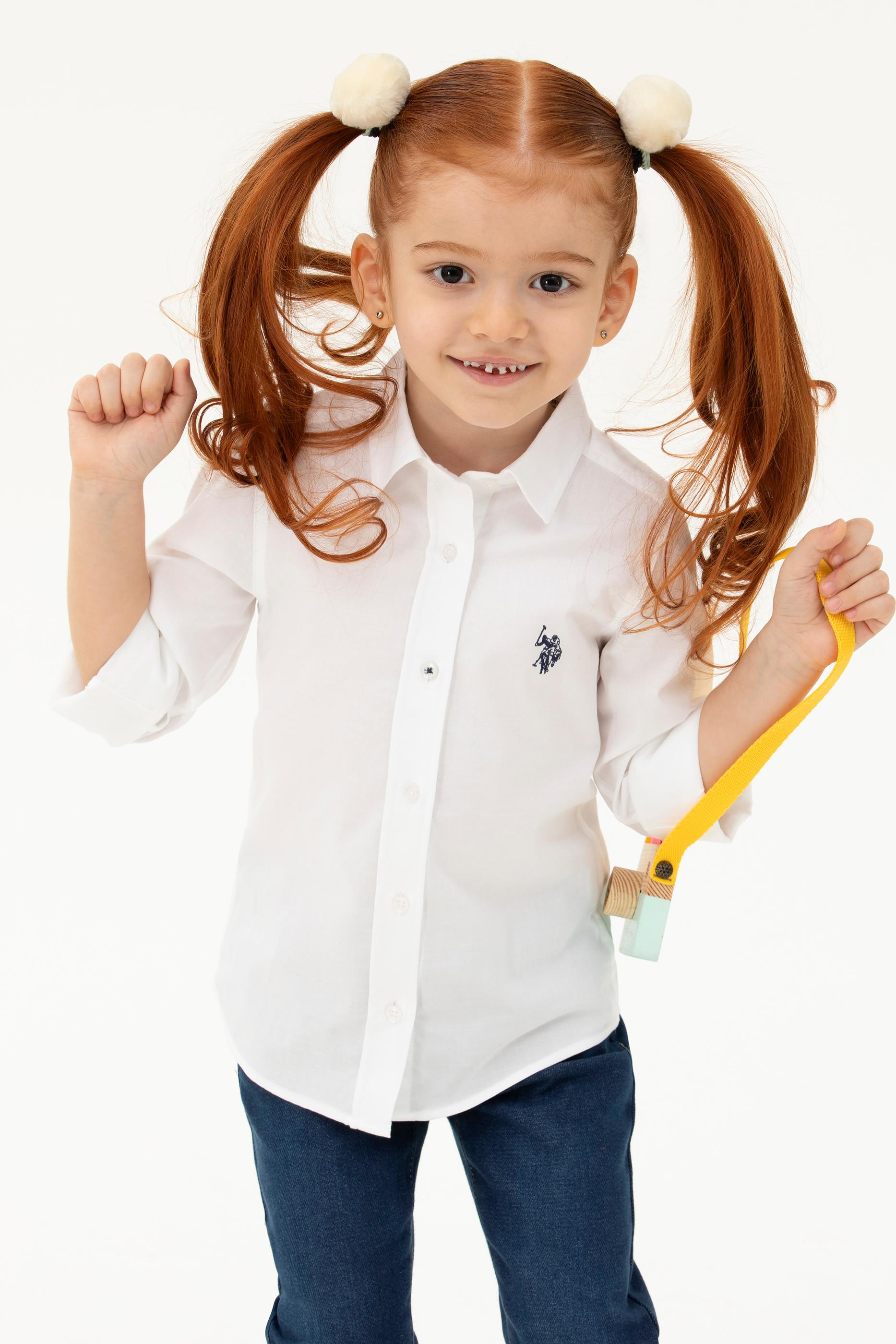 - Kız Çocuk Beyaz Uzun Kollu Gömlek