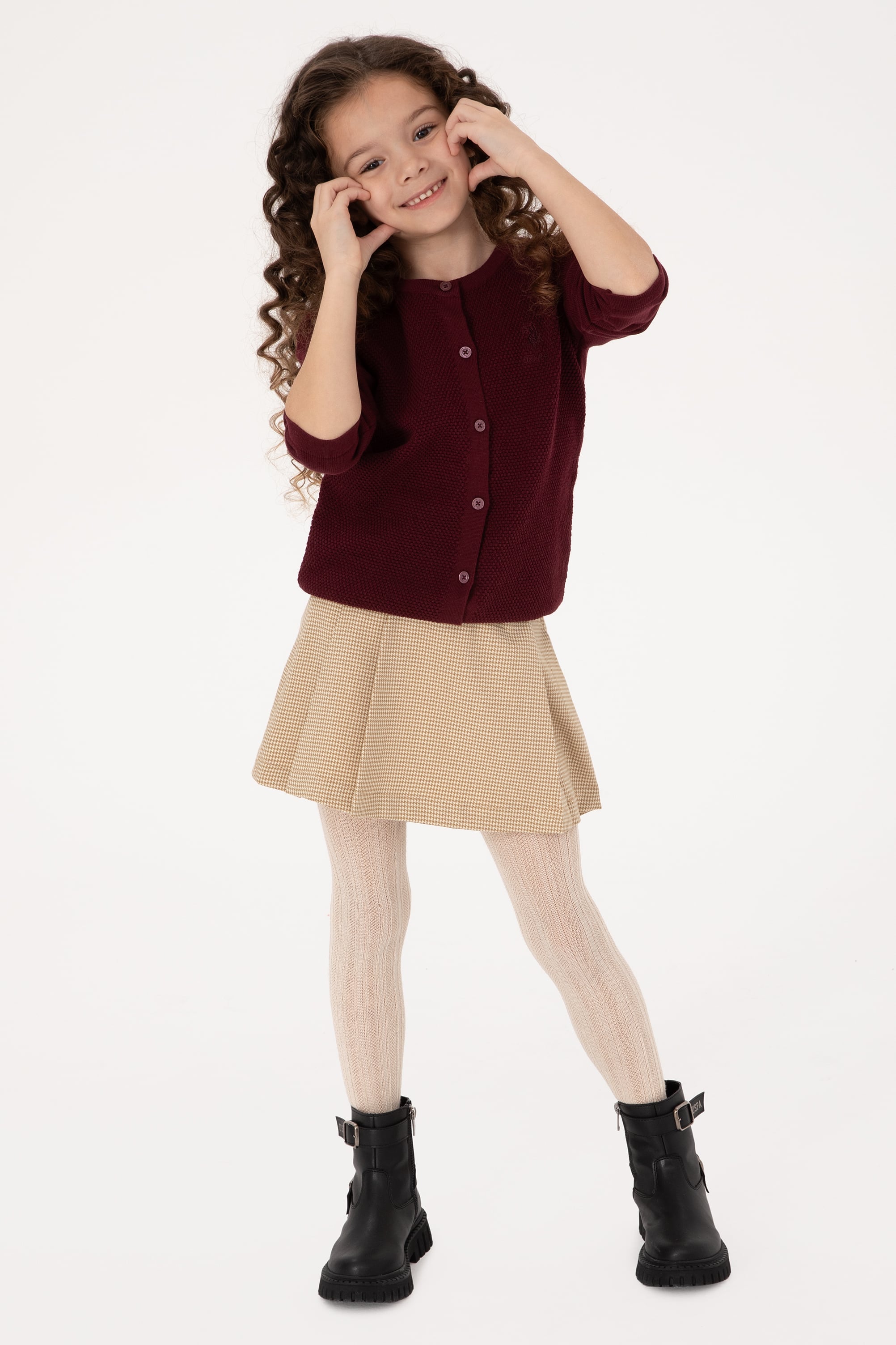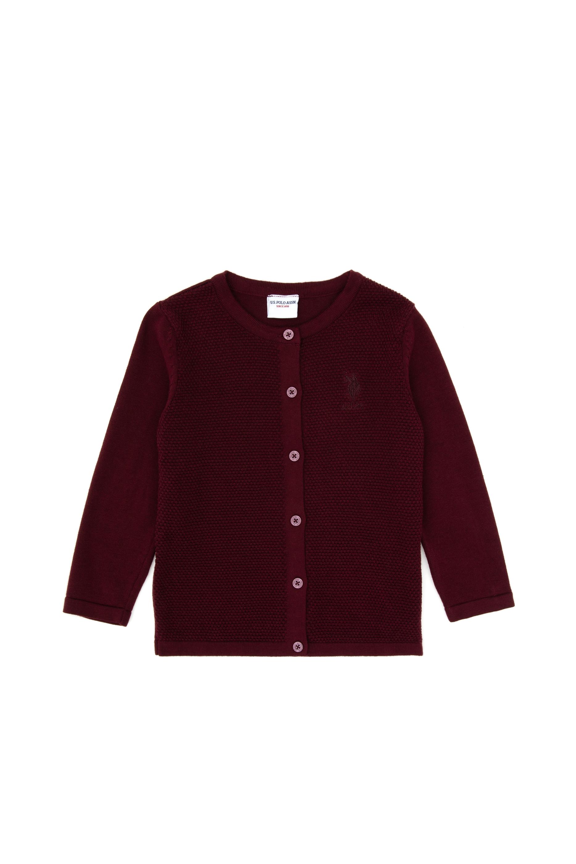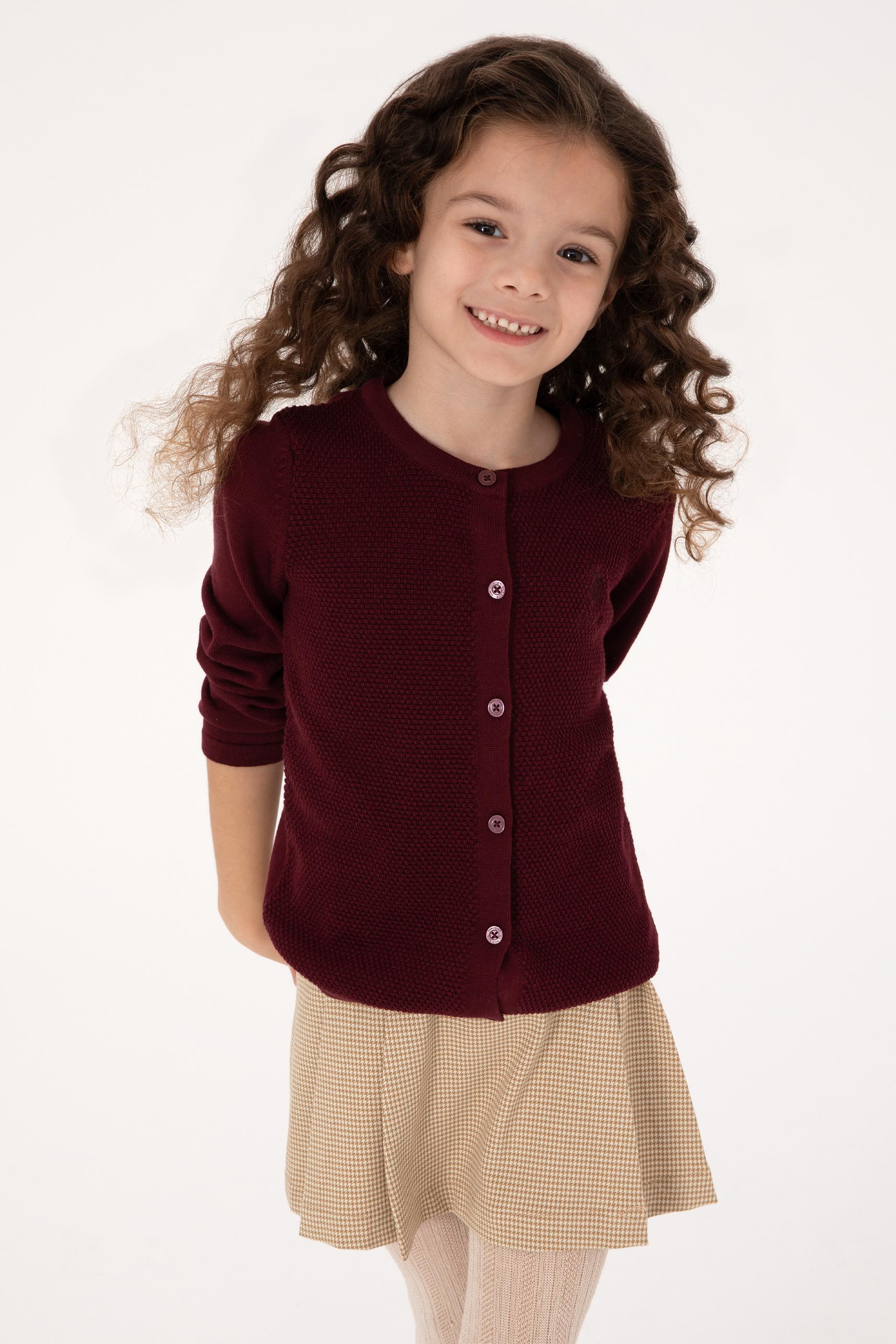 Kız Çocuk Bordo Düğmeli Bisiklet Yaka Triko Hırka