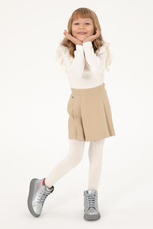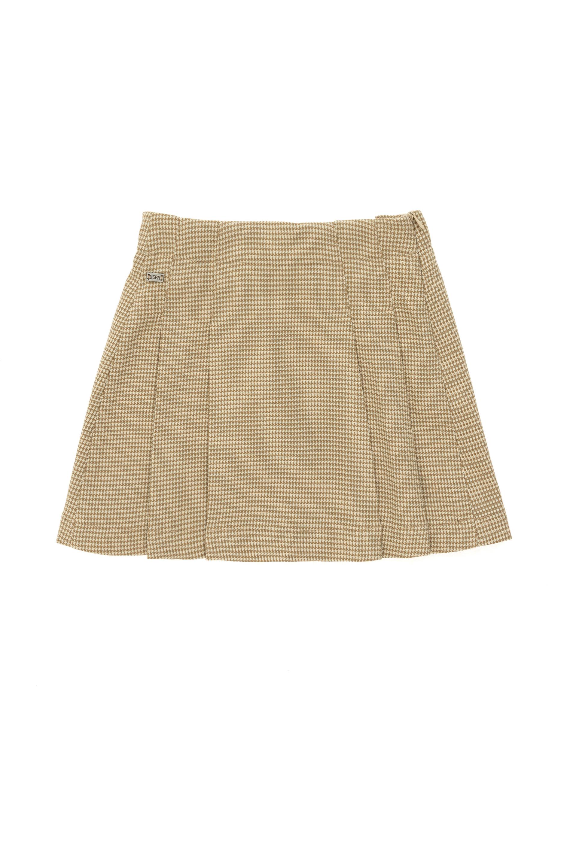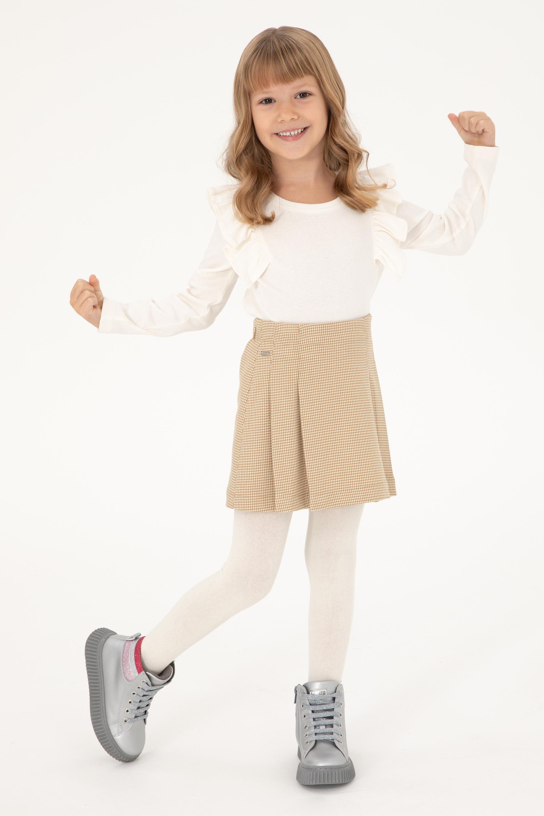 Kız Çocuk Camel Pötikare Pileli Dokuma Etek