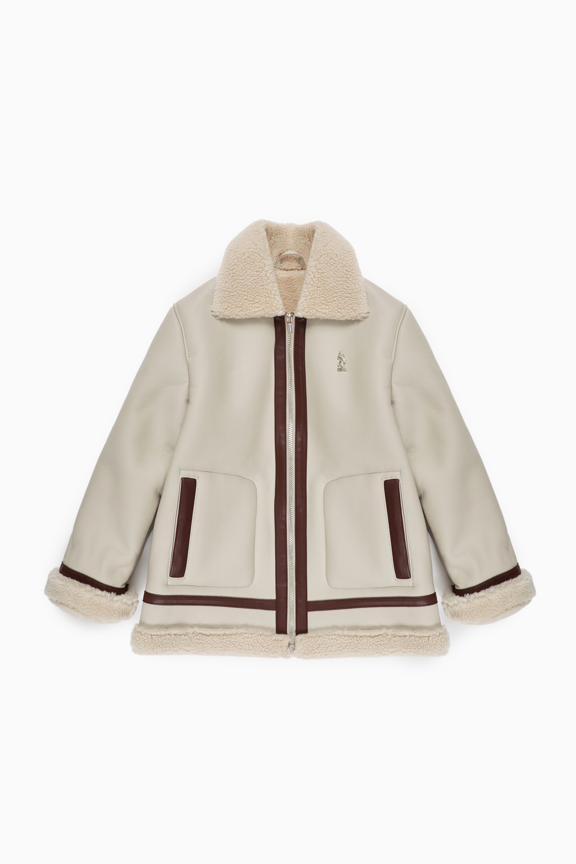 Kız Çocuk Ekru Deri Ceket