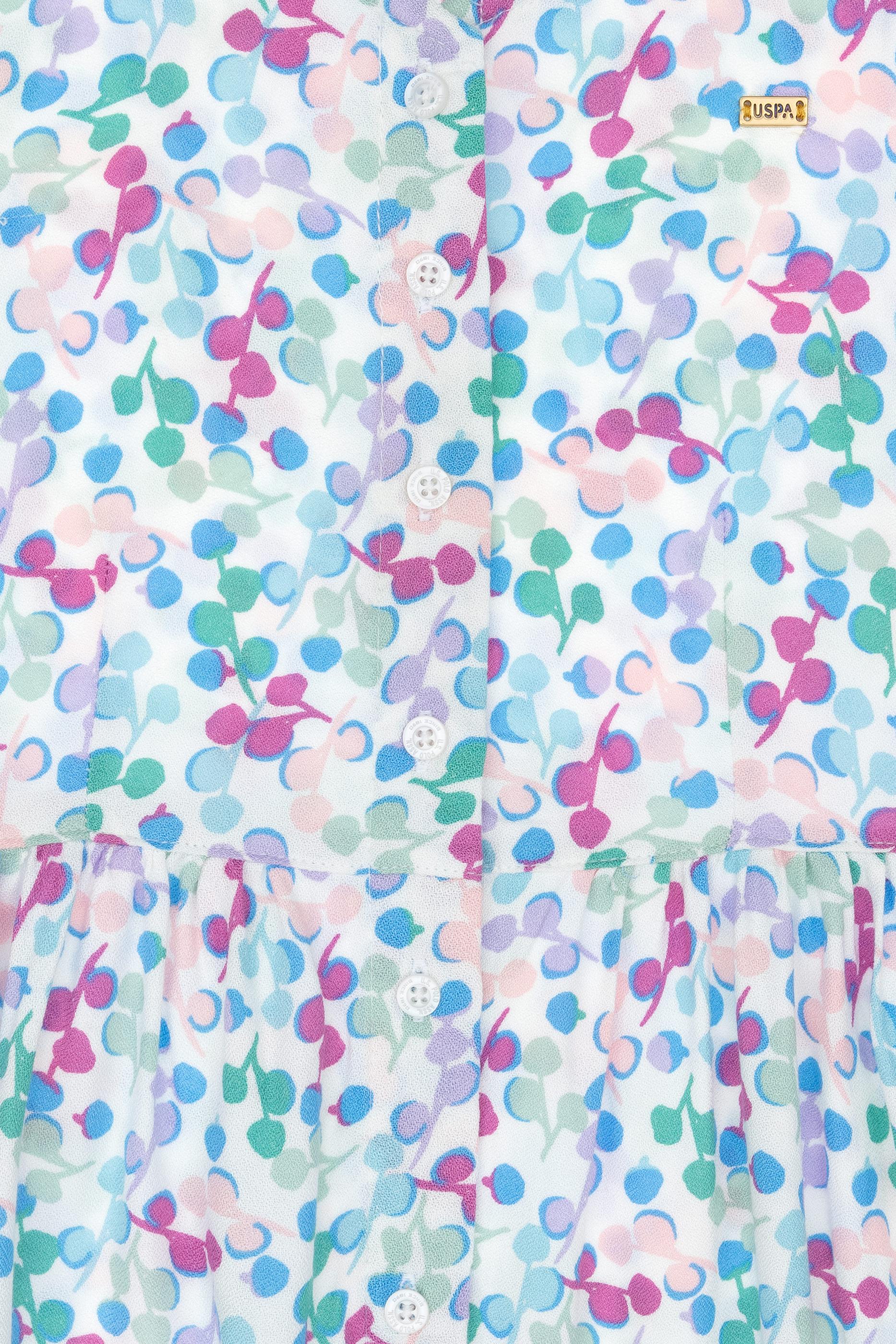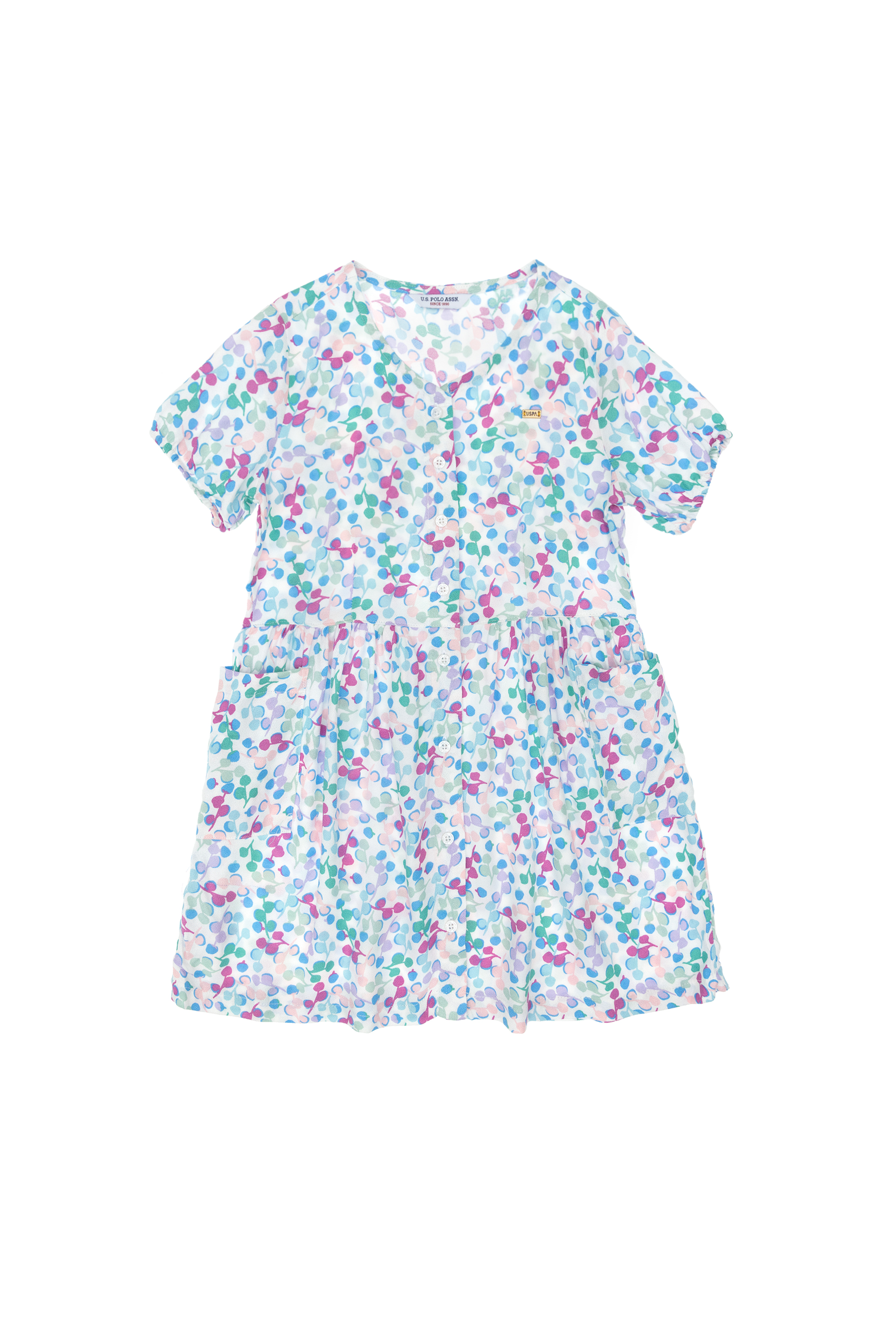 Kız Çocuk Mint Desenli Krep Kumaş Dokuma Elbise