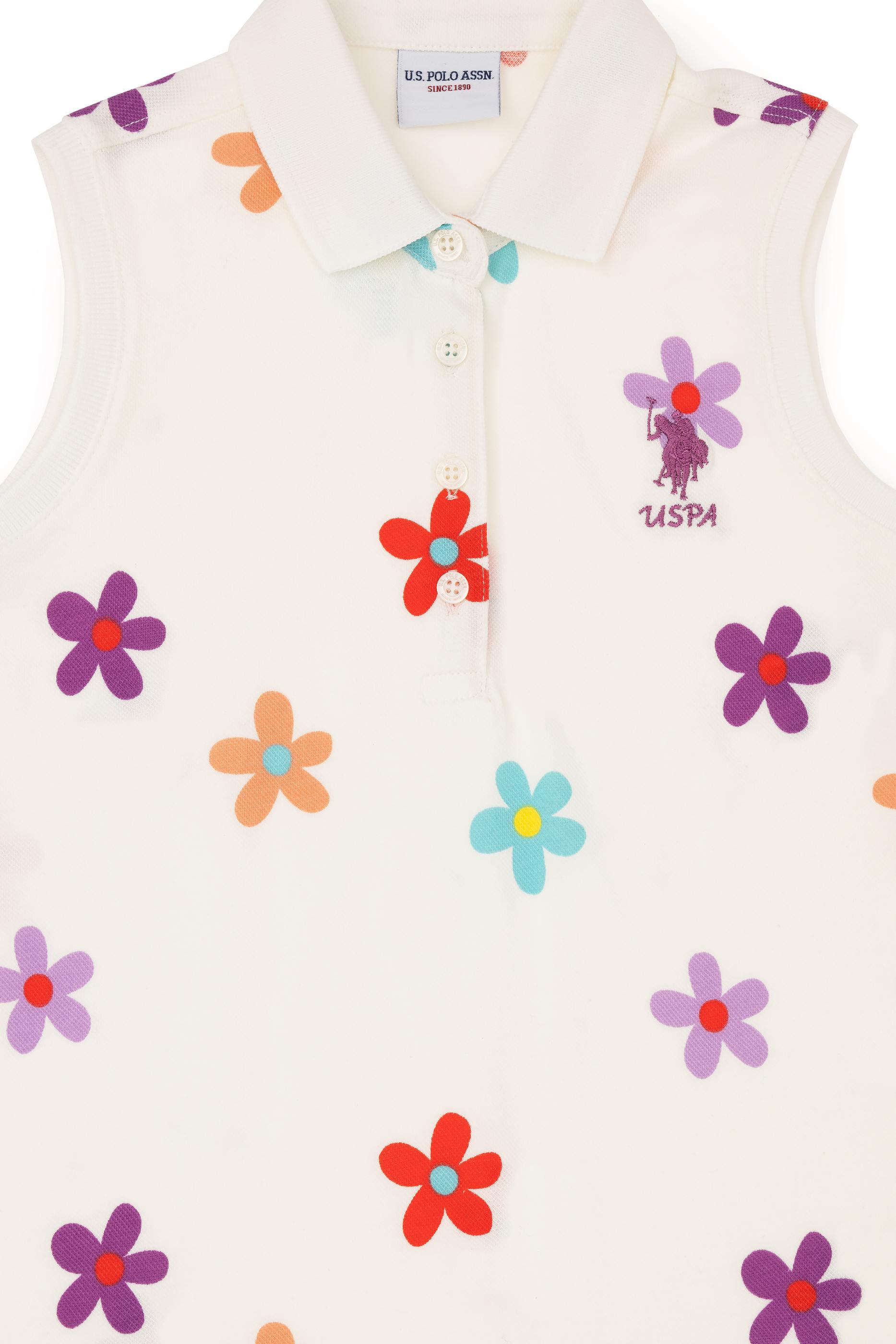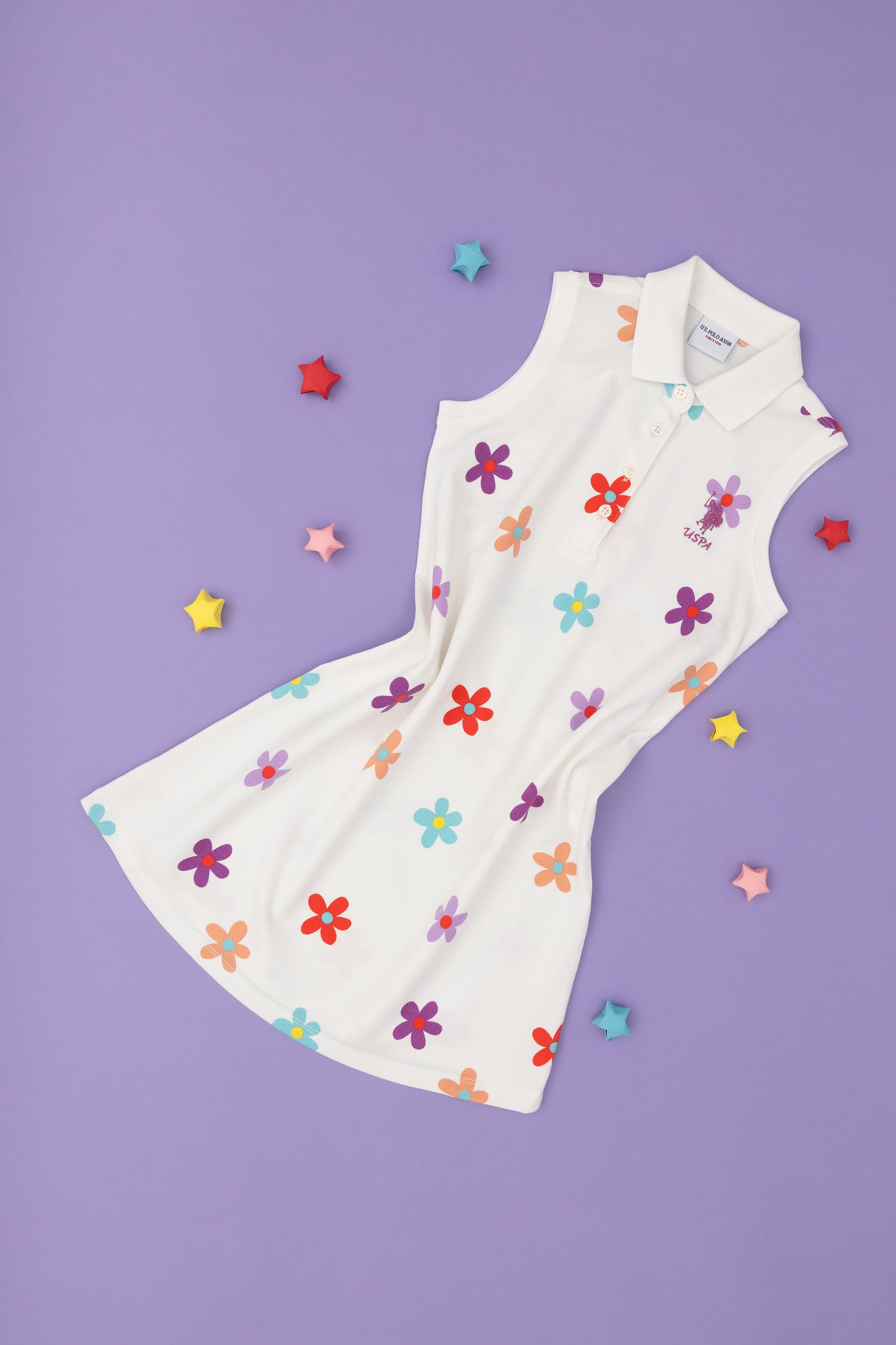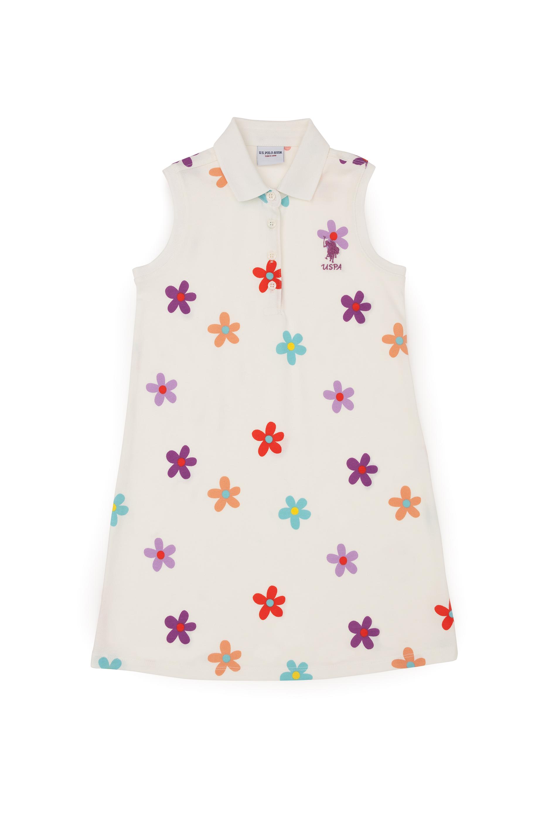 Kız Çocuk Ekru Polo Yaka Örme Elbise