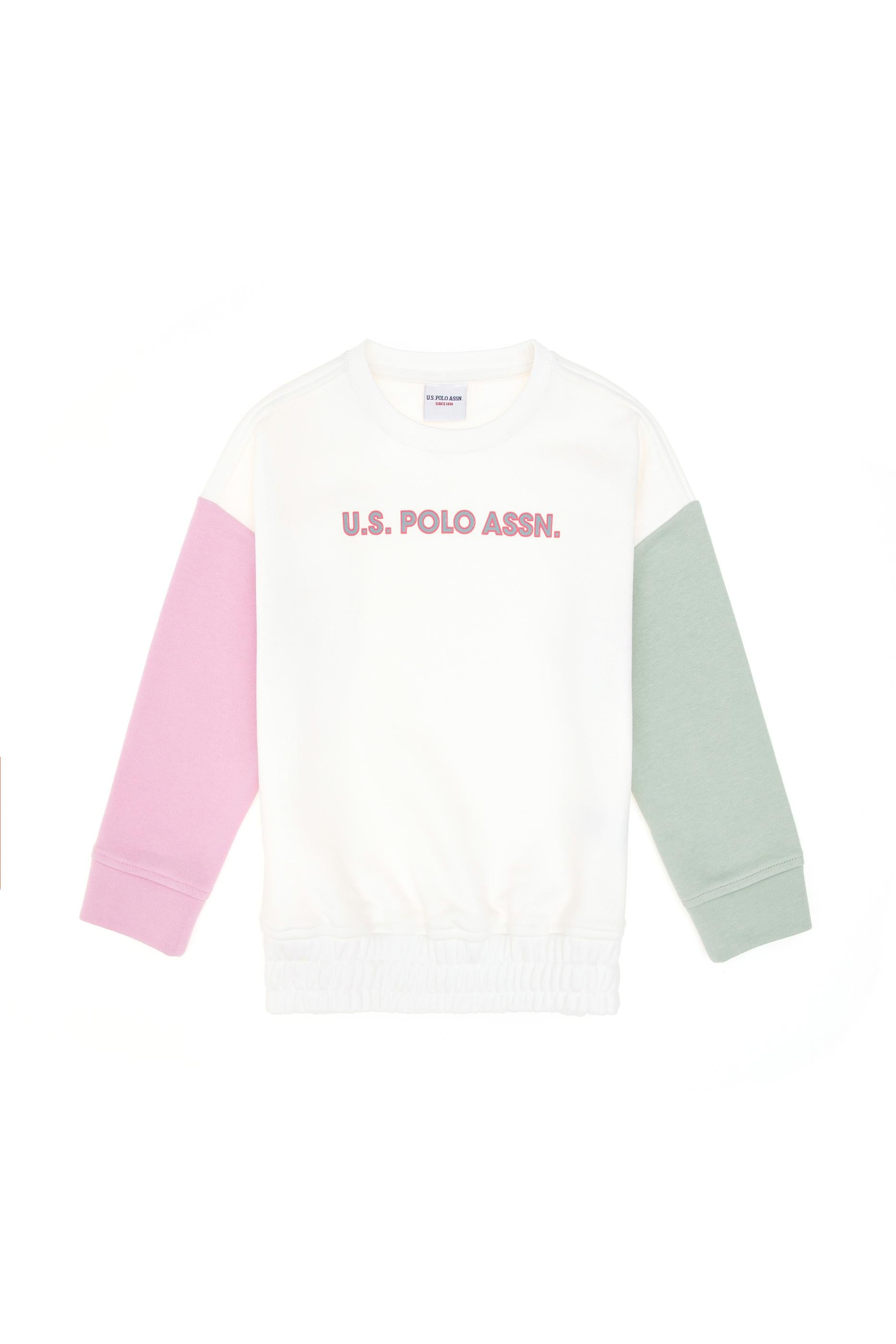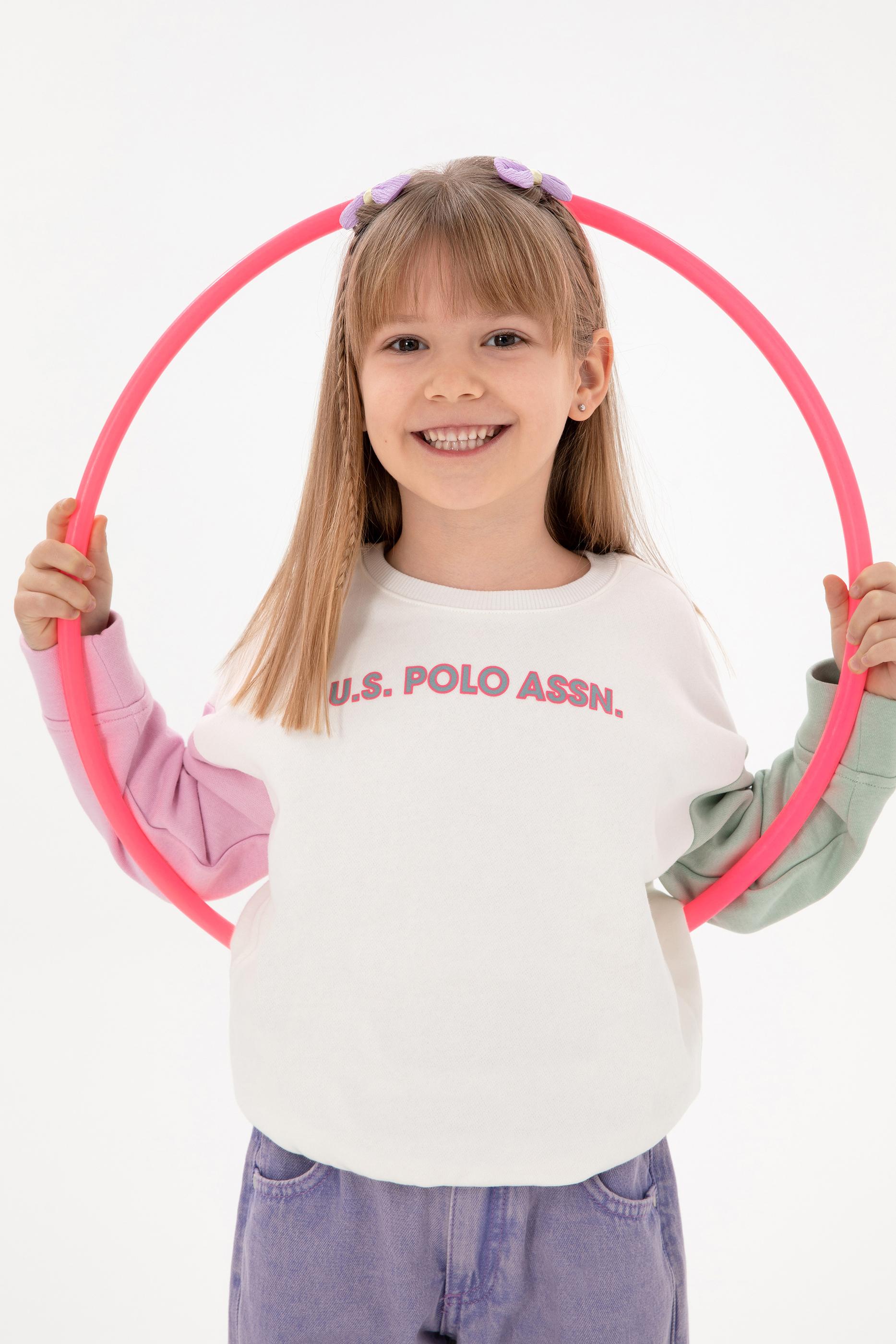 Kız Çocuk Ekru Bisiklet Yaka Şardonlu Sweatshirt - 50296369028