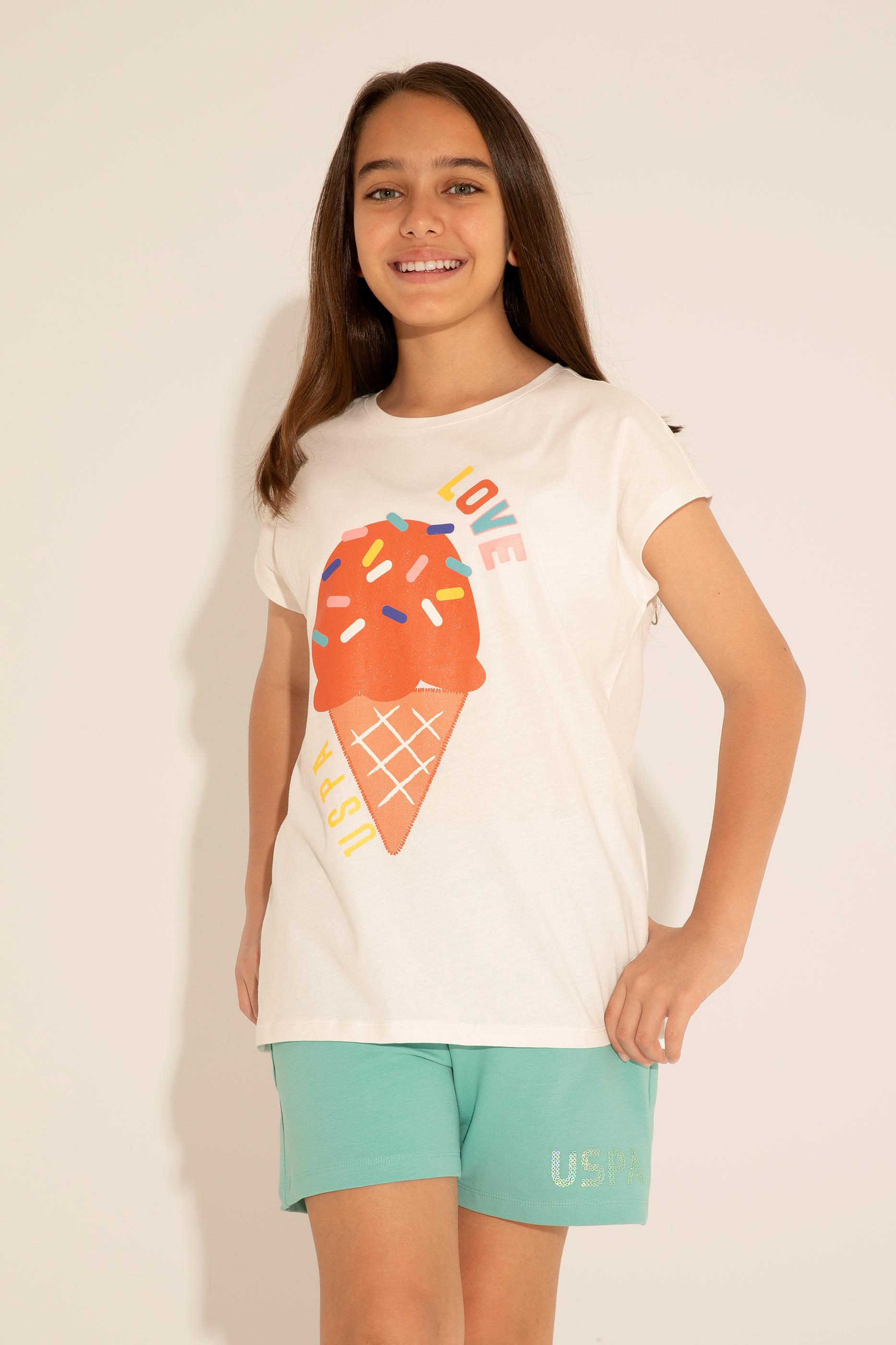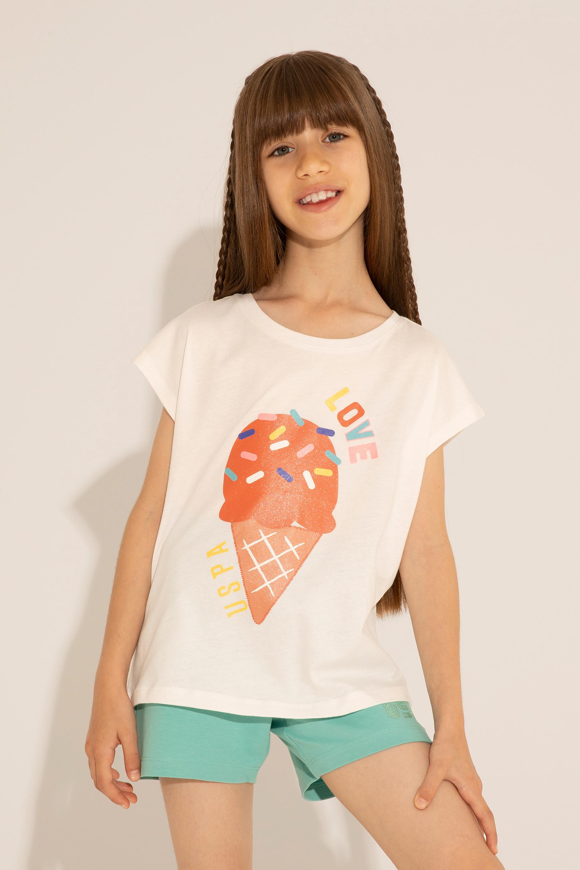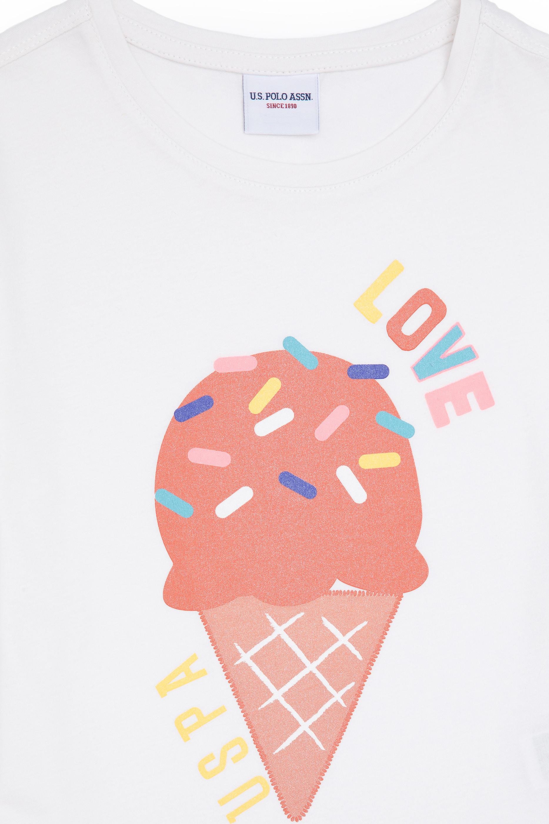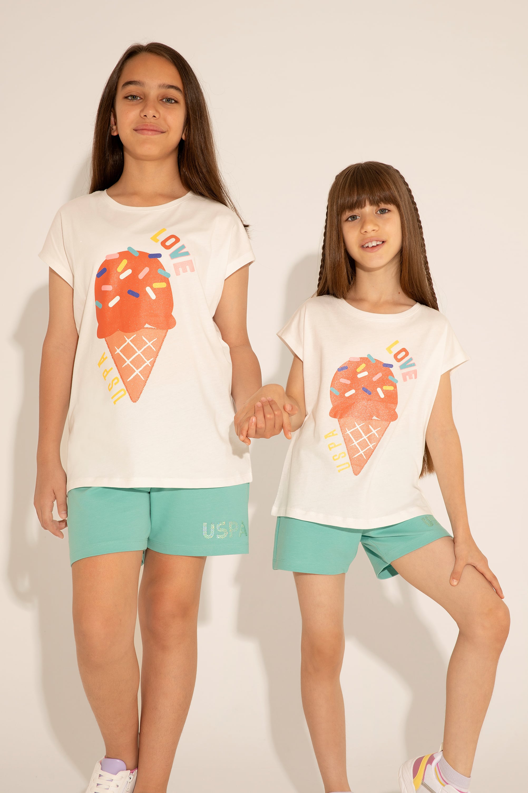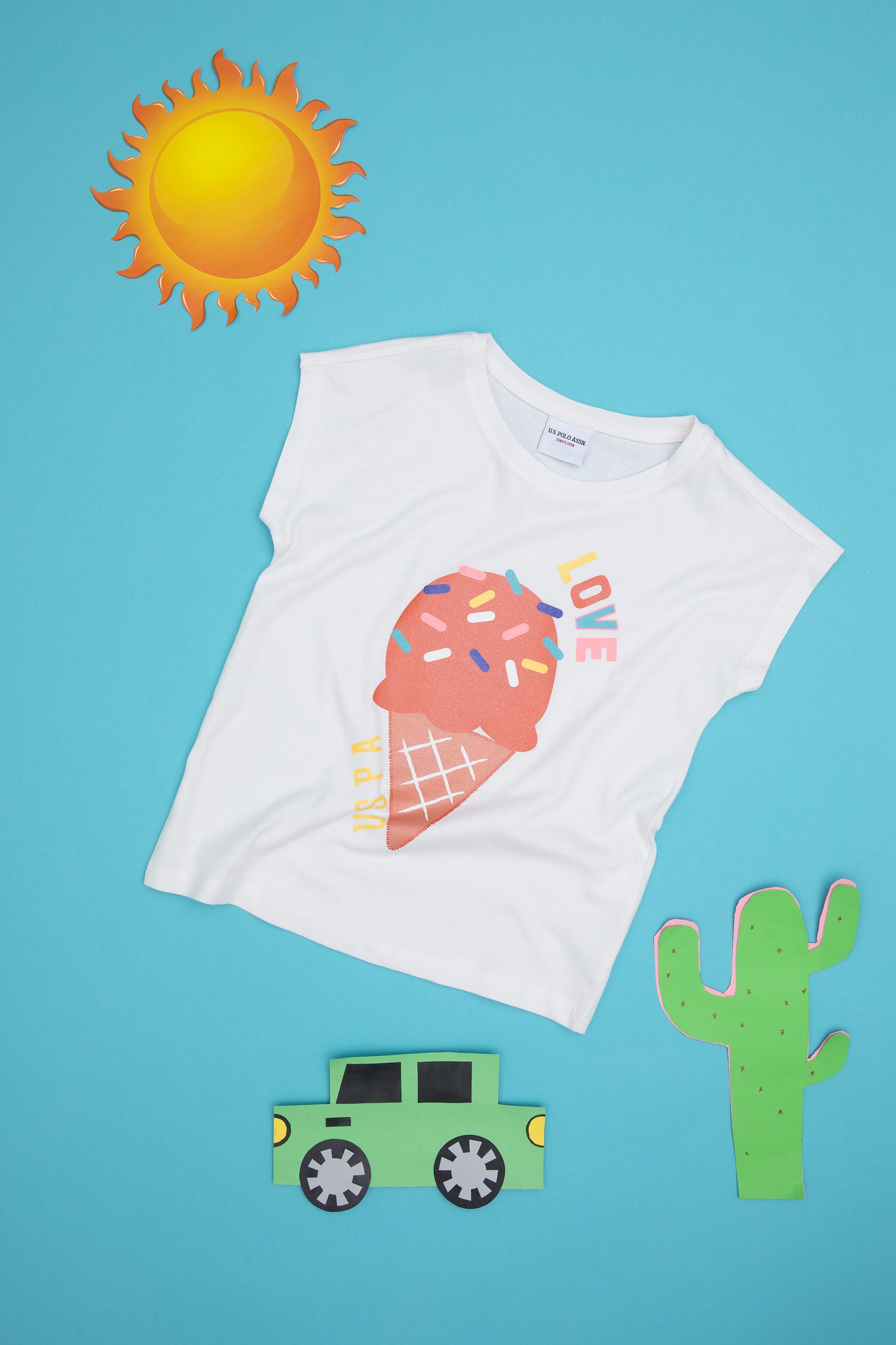 Tatlı bir yaz esintisi taşıyan kız çocuk ekru bisiklet yaka tişört, enerjik tasarımı, ilgi çekici rengi ve rahat kalıbıyla çocukların favorisi olacak. Üzerinde yer alan kaliteli renkli dondurma baskısı, tişörte eğlenceli bir hava katarken, yaz mevsiminin neşesini yansıtıyor. Yumuşak dokusu sayesinde gün boyu rahatlık sunan tişört, nefes alabilir yapısıyla sıcak günlerde serin kalmanızı sağlar.