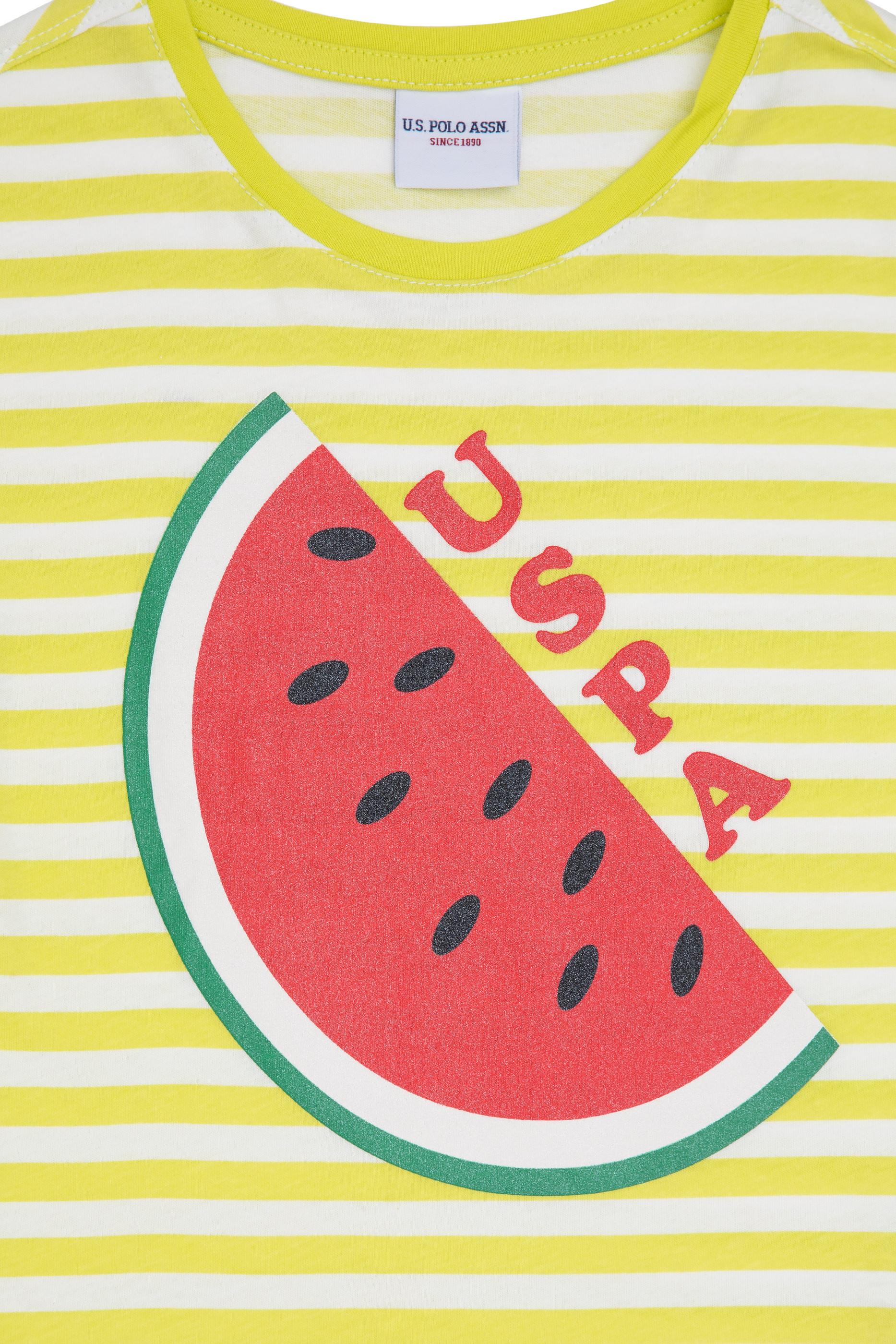 Her türlü alt giyimle kolayca kombinlenebilen tişört, özellikle şortlar ve eteklerle mükemmel bir uyum sağlamaktadır. Günlük rahatlığı ve şıklığı bir araya getiren tasarımı sayesinde, çocukların favori parçalarından biri haline gelmektedir. Renkli çizgiler ve büyük karpuz deseni, tişörte eğlenceli bir dokunuş katarak, küçük moda severlerin stilini tamamlamaktadır. Hem rahatlığı hem de eğlenceli tasarımıyla, her an çocukların yanında olan tişört, yaz mevsiminin enerjisini ve neşesini tam anlamıyla yansıtmaktadır. Canlı renkleri, konforlu yapısı ve sevimli detayları ile çocukların her gün severek giyeceği bir parça sunmaktadır.