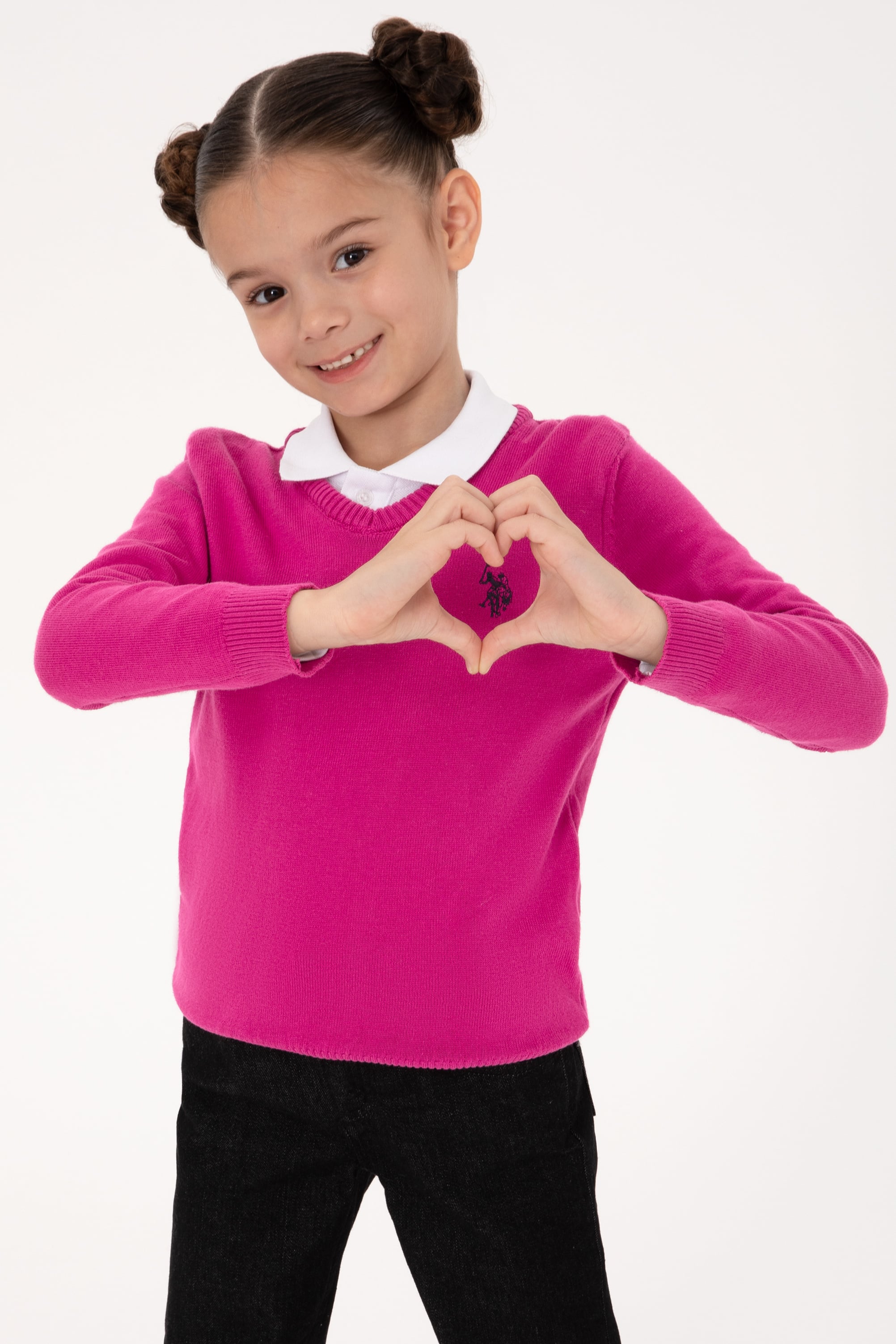 - Kız Çocuk Fuşya V Yaka Basic Kazak