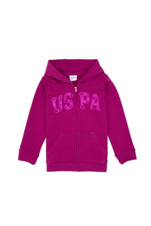 Kız Çocuk Fuşya Payet İşlemeli Kapüşonlu Basic Sweatshirt