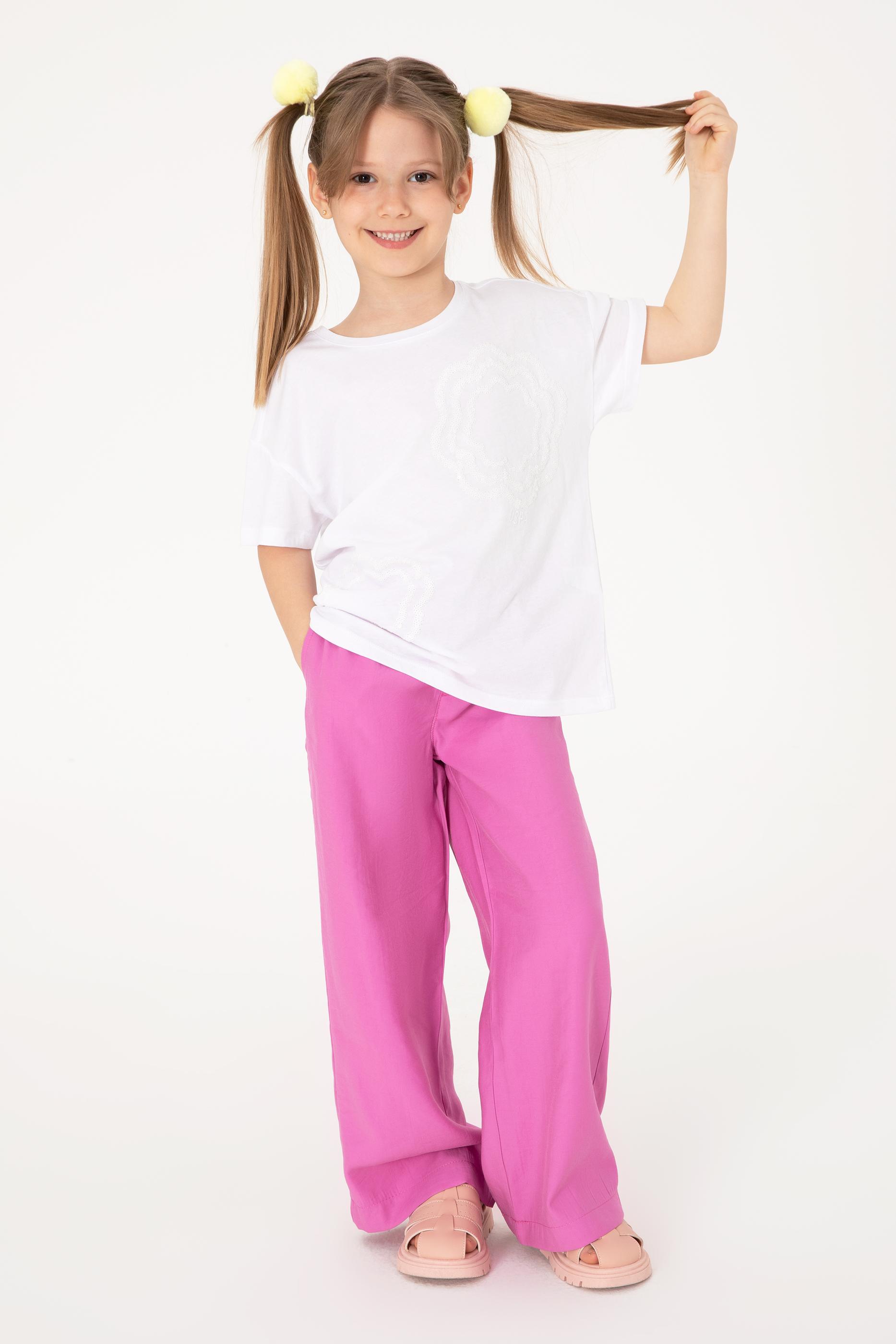 Kız Çocuk Fuşya Loose Fit Modal Karışımlı Kanvas Pantolon