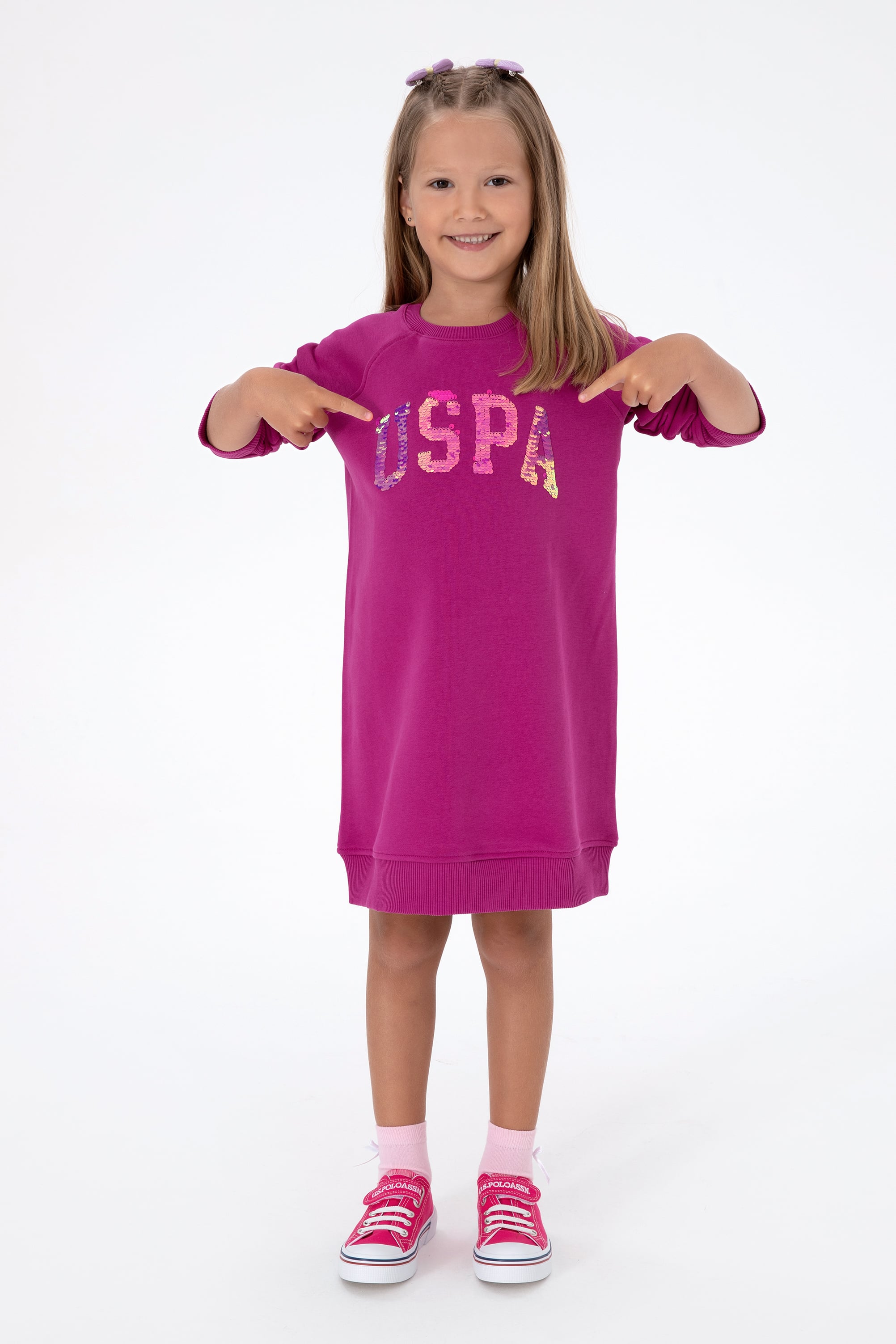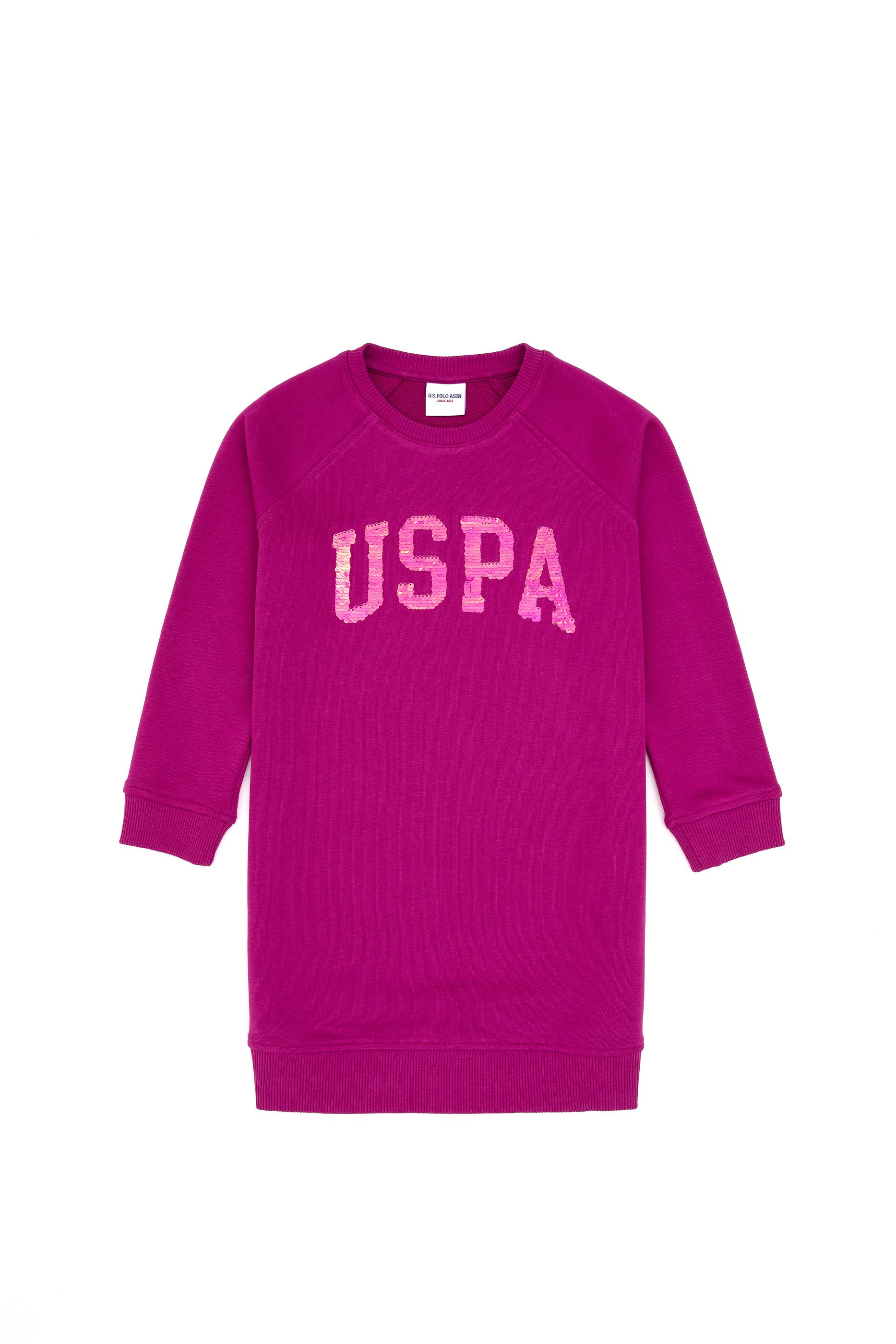 - Kız Çocuk Fuşya Payet Detaylı Bisiklet Yaka Sweat Örme Elbise