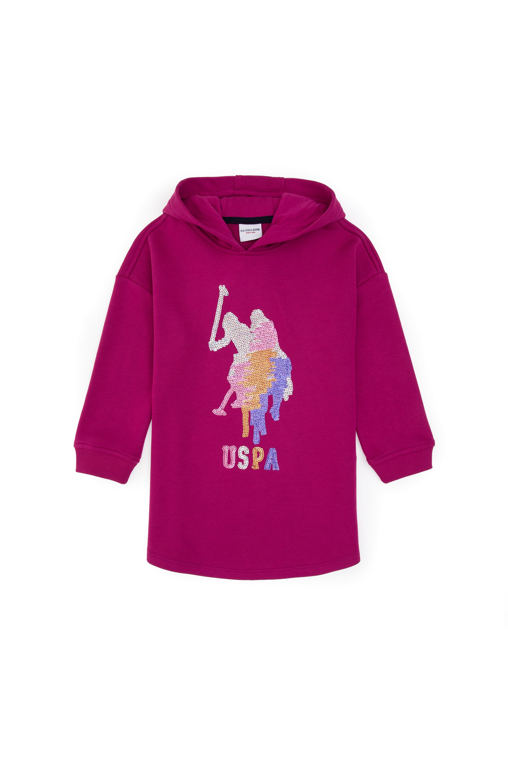 - Kız Çocuk Fuşya Kapüşonlu Örme Elbise