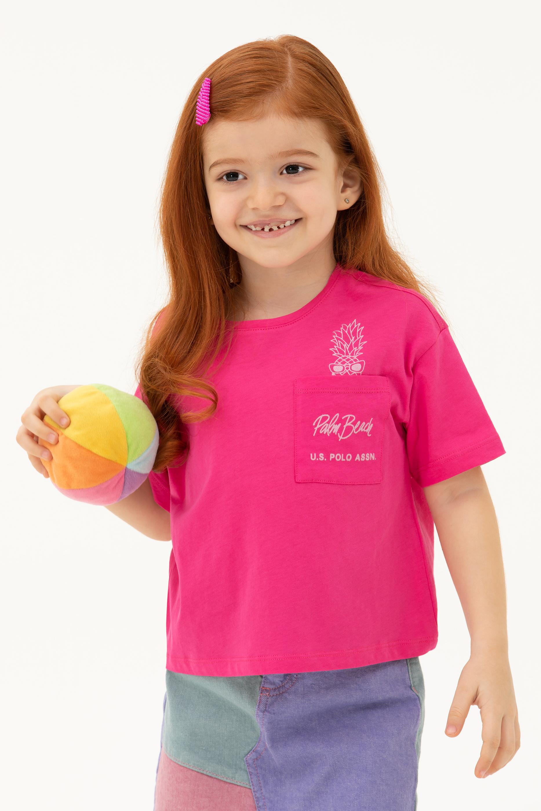 - Kız Çocuk Fuşya Bisiklet Yaka Tişört