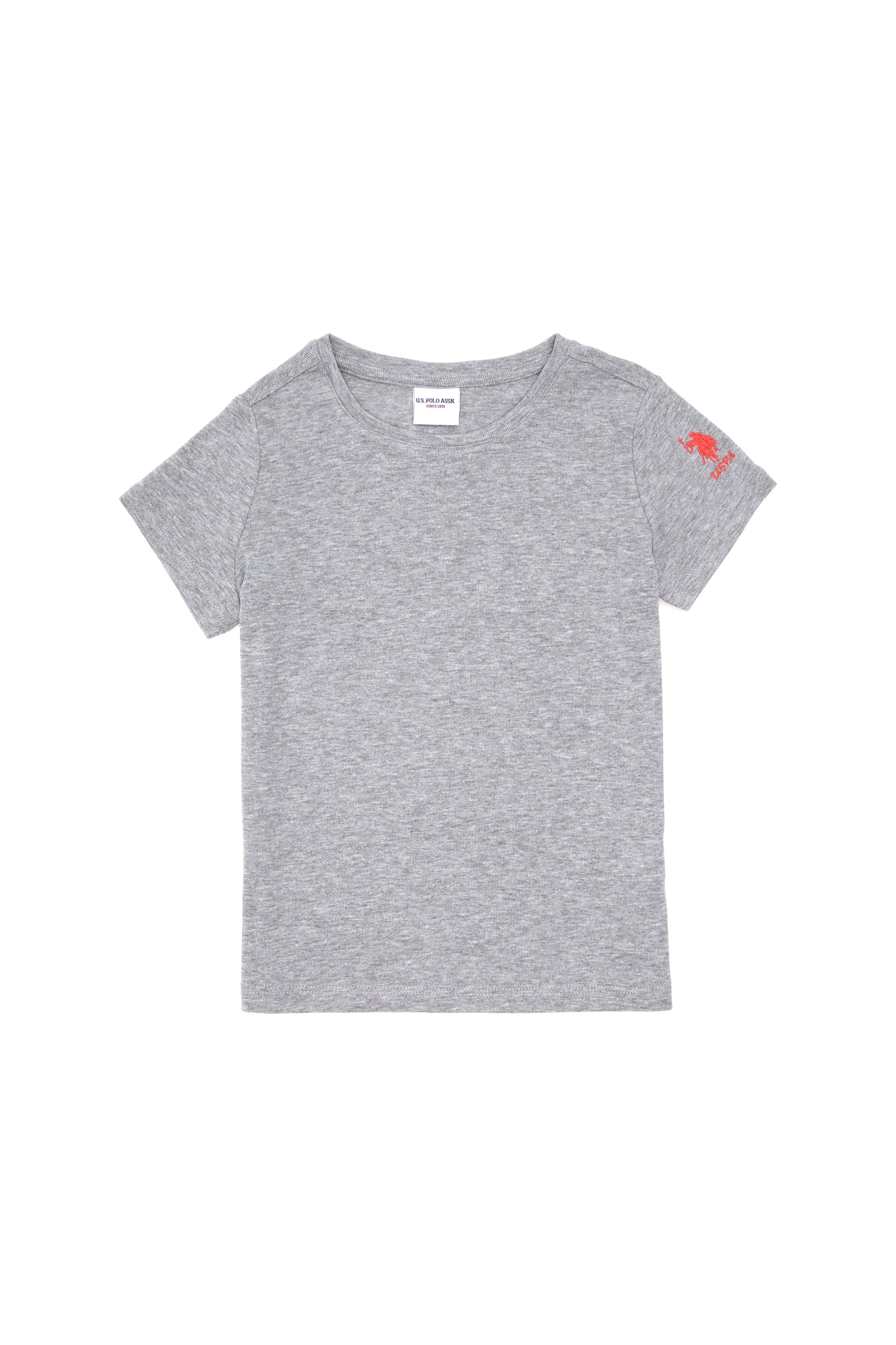 - Kız Çocuk Gri Melanj Bisiklet Yaka Basic Tişört
