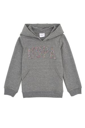 - Kız Çocuk Gri Melanj Kapüşonlu Sweatshirt