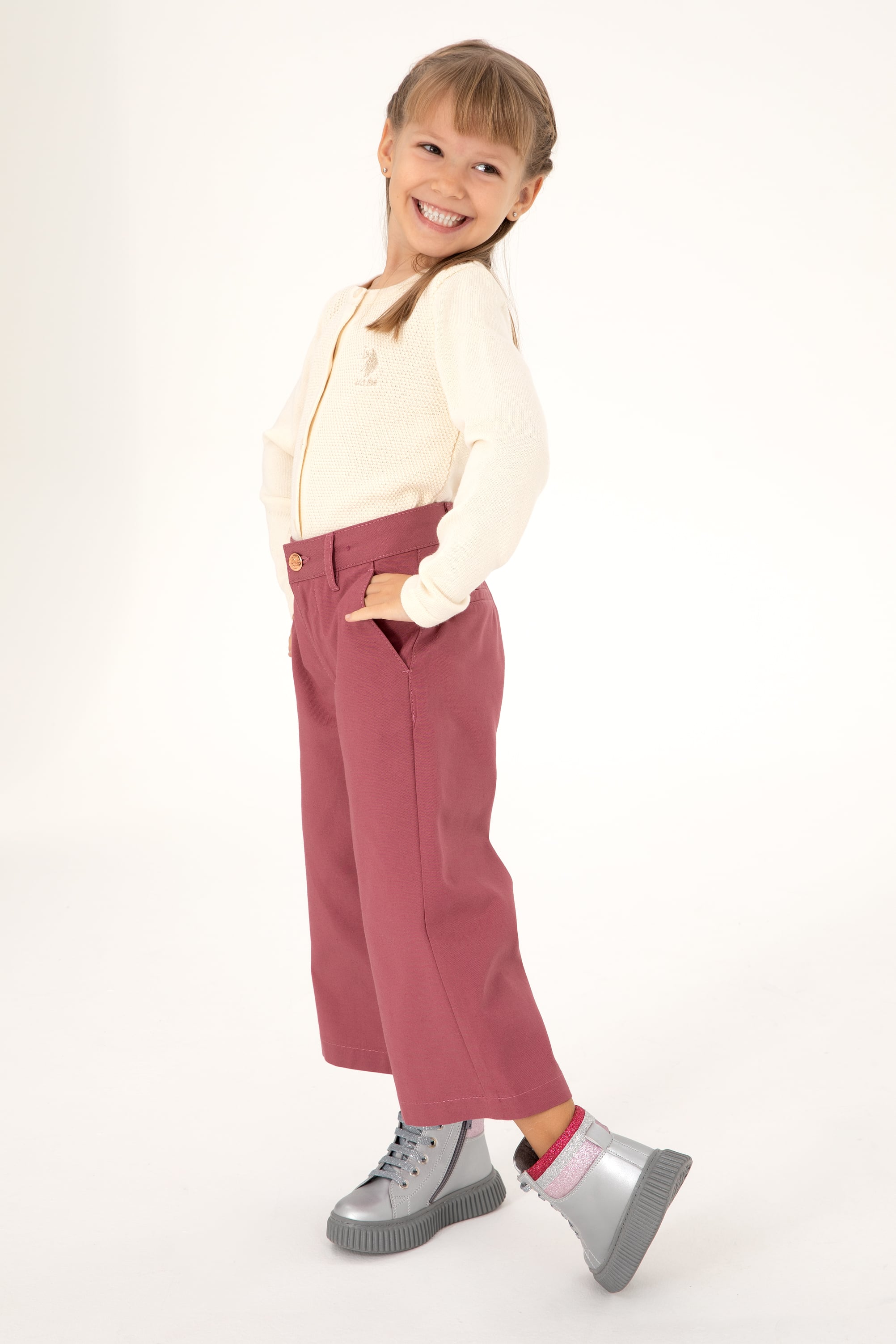 Kız Çocuk Gül Kurusu Kanvas Pantolon